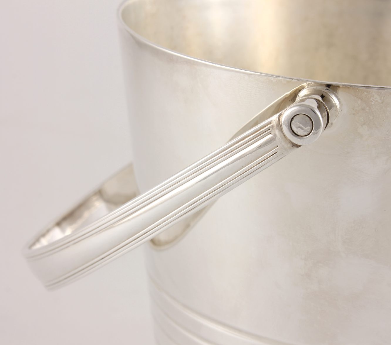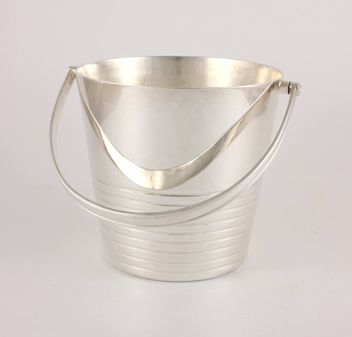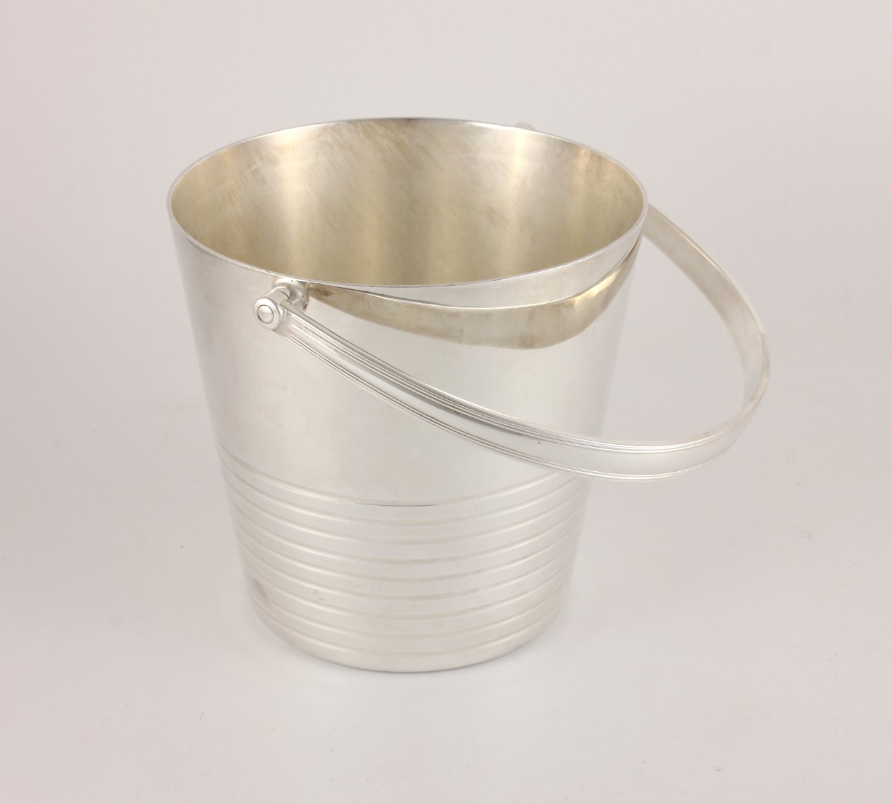 This excellent quality vintage silver plate ice bucket which is by renowned silversmith Barker Brothers is a good heavy weight with a swing handle and a ring design to the body.