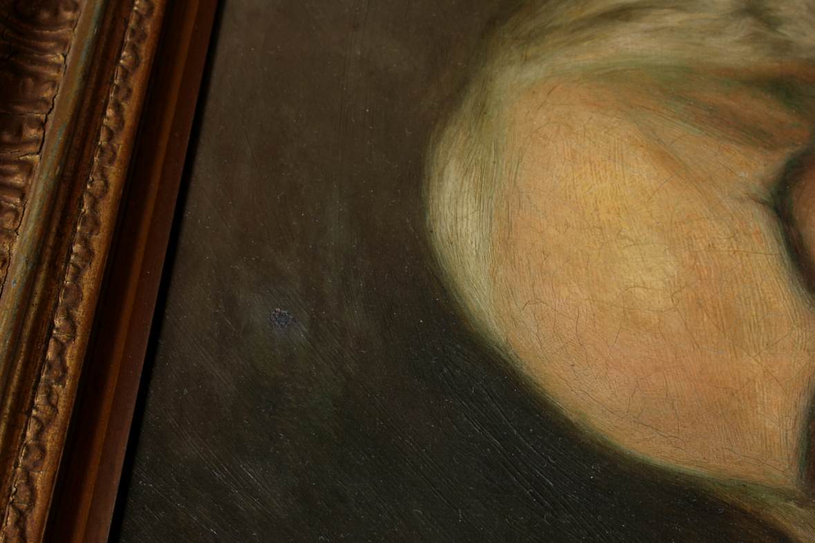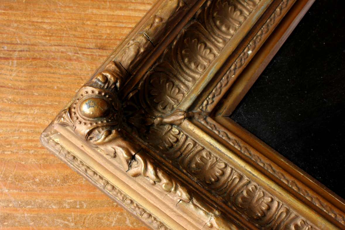 Condition: Very good antique condition with signs of use in keeping with age. Artwork has some crazing, small marks and a few touch ups. Frame has some chips, cracks, wear and marks. Please see pictures.