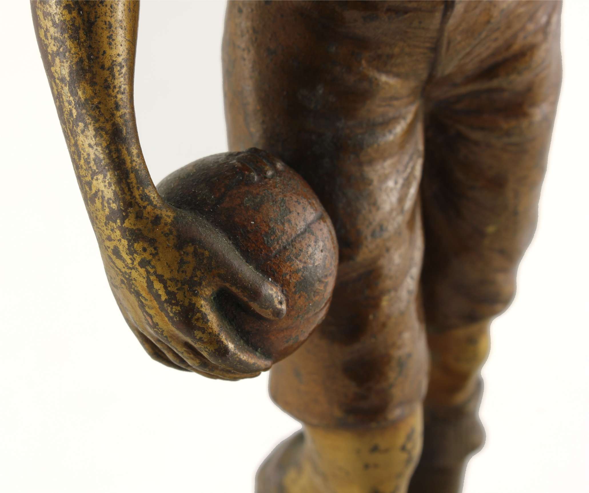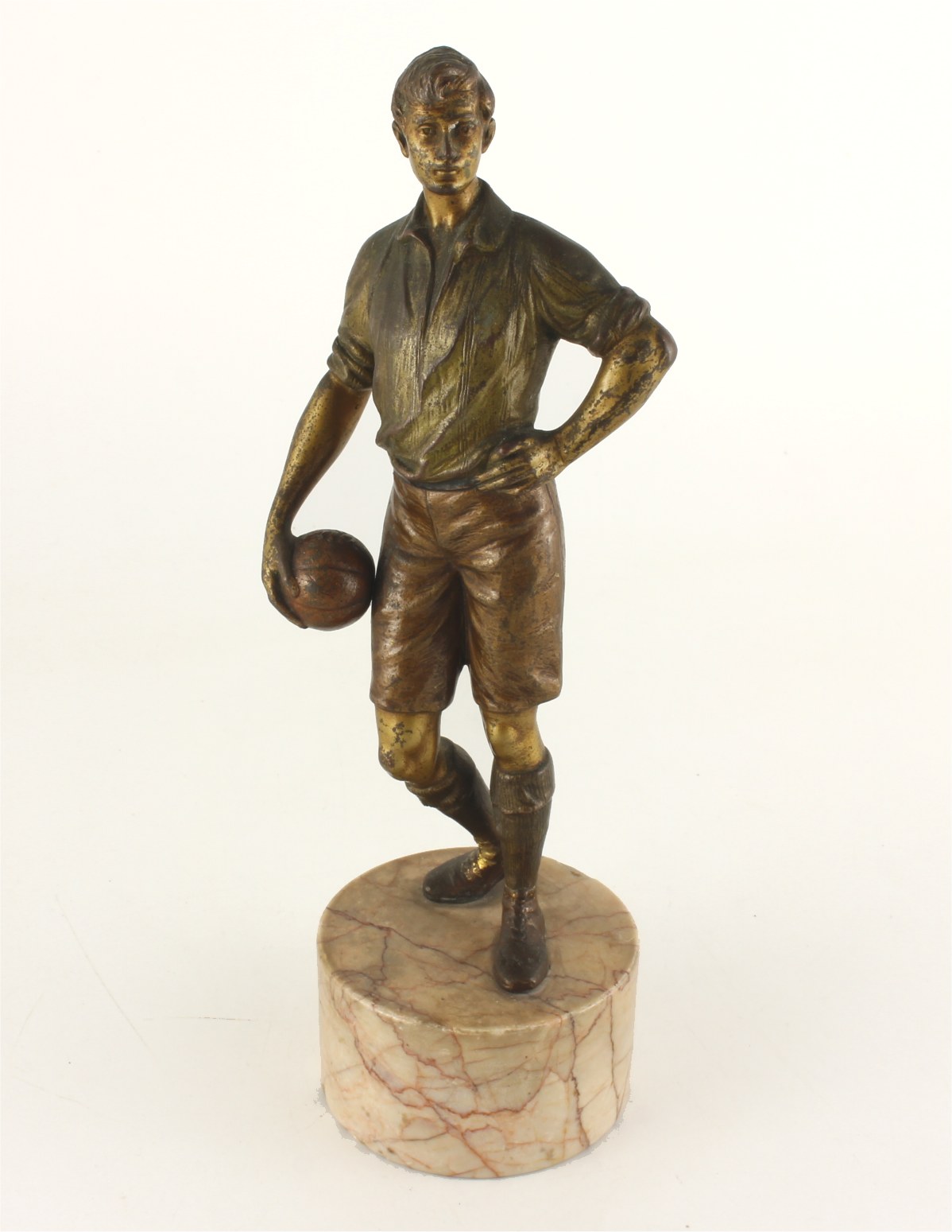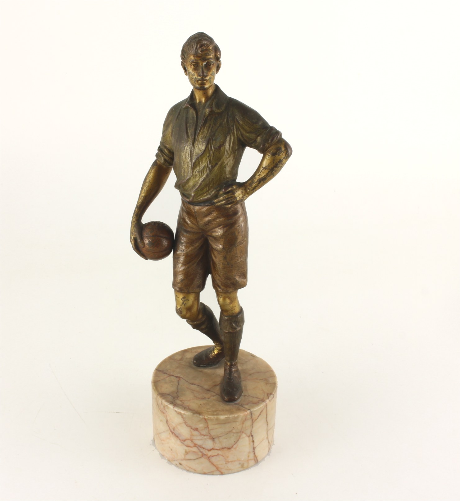 This original Austrian cold painted bronze of a footballer dates from c1890 and is of an early style football player holding a football.