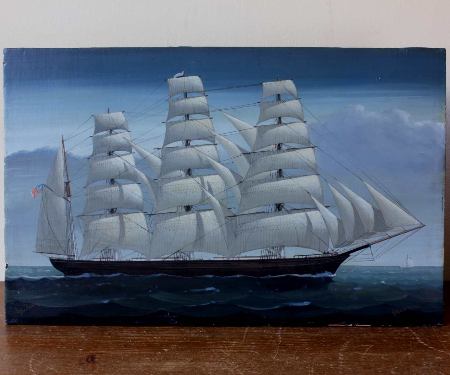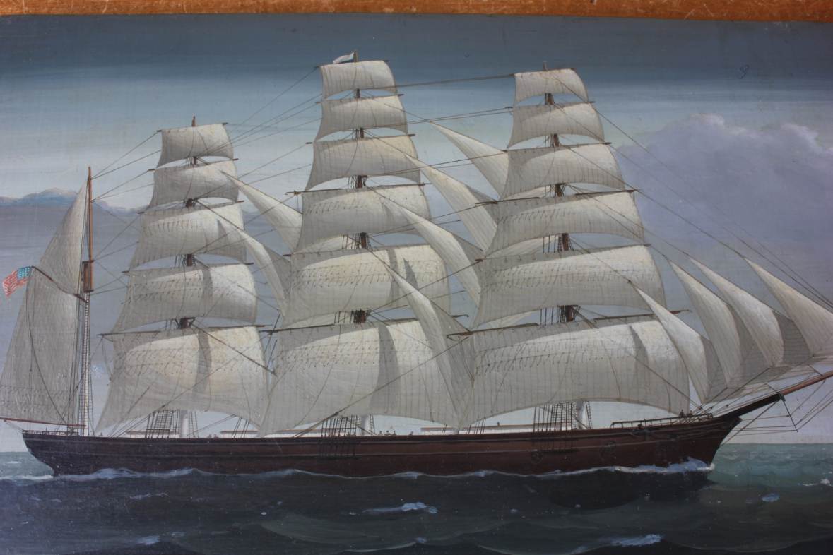This fabulous oil painting which was skilfully painted by artist John Bower during the 19th century using oils on panel is of the Great Republic Clipper ship in full sail.