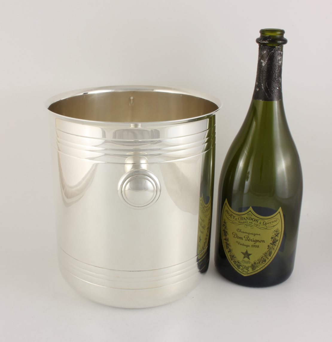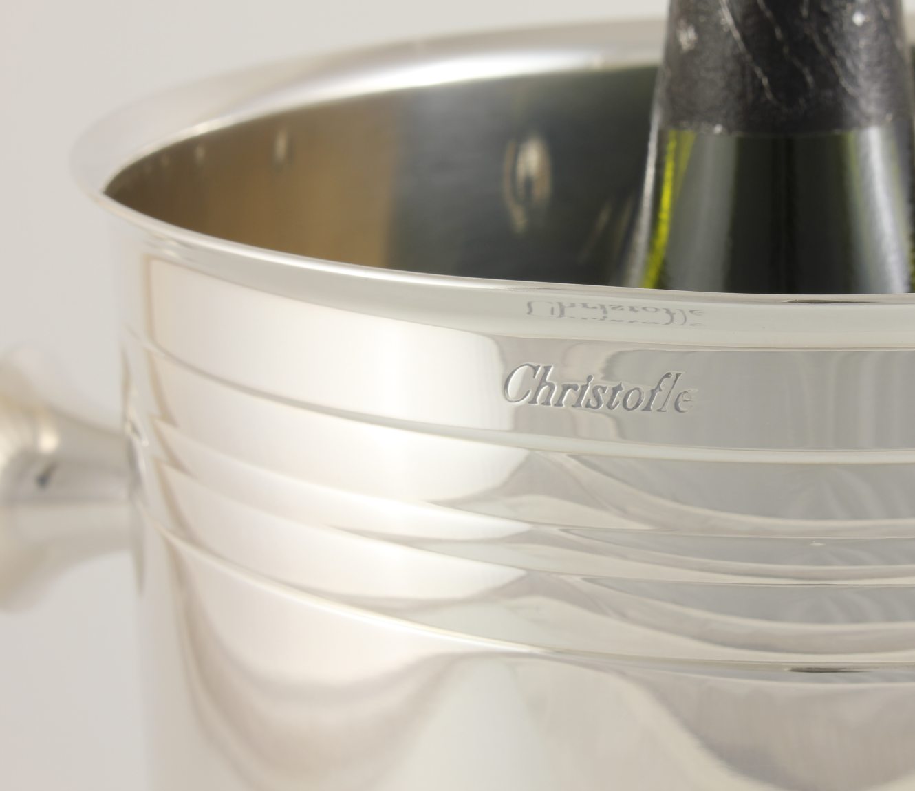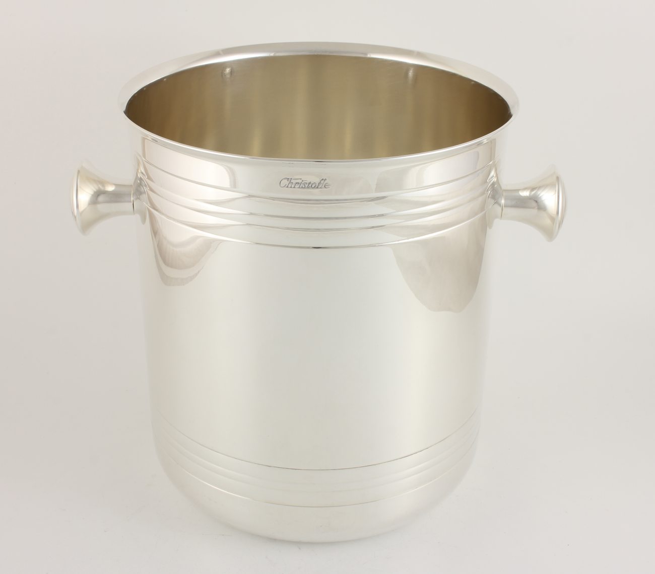 This handsome Champagne or wine cooler which is made of silver plate is by top French silversmith Christofle so is of excellent quality.