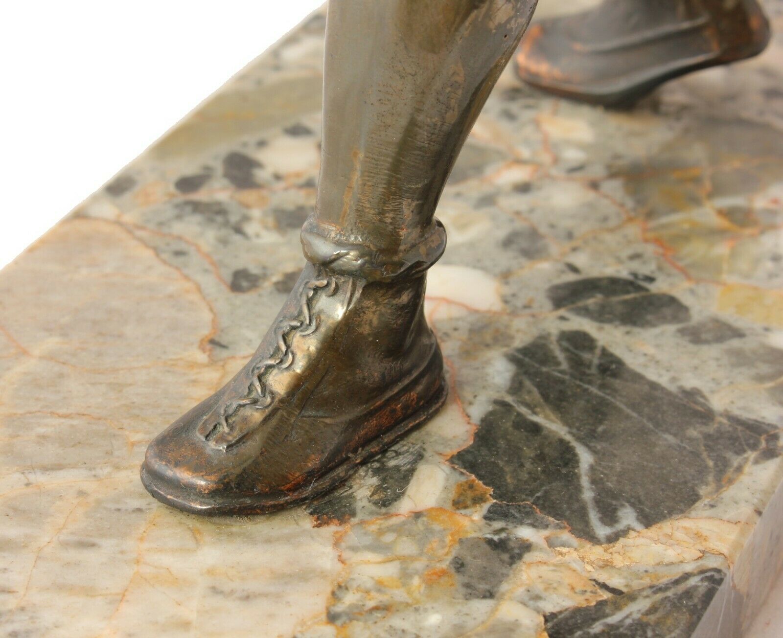 This unusual and handsome Art Deco figure is made of cast metal with a bronze effect finish and is mounted on a marble base.