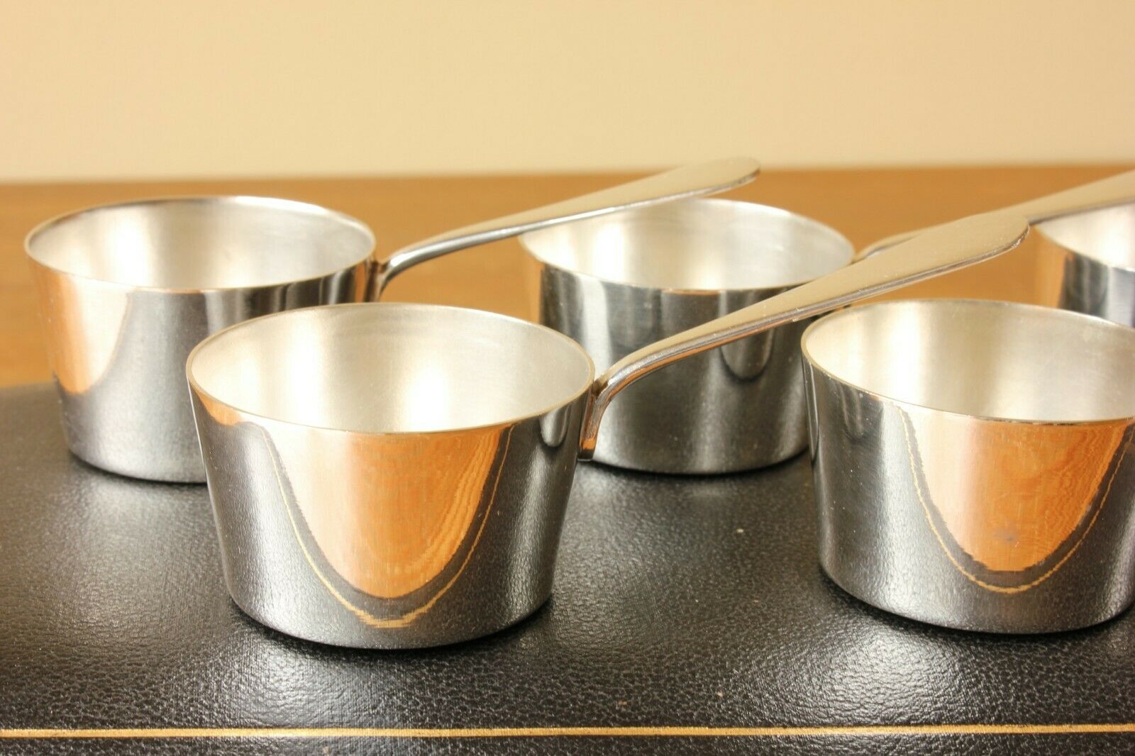 This high quality set of brandy sauce pans have a clean interior and would make a great usable item for your dinner party, get together or will look wonderful on your Christmas dinner table.