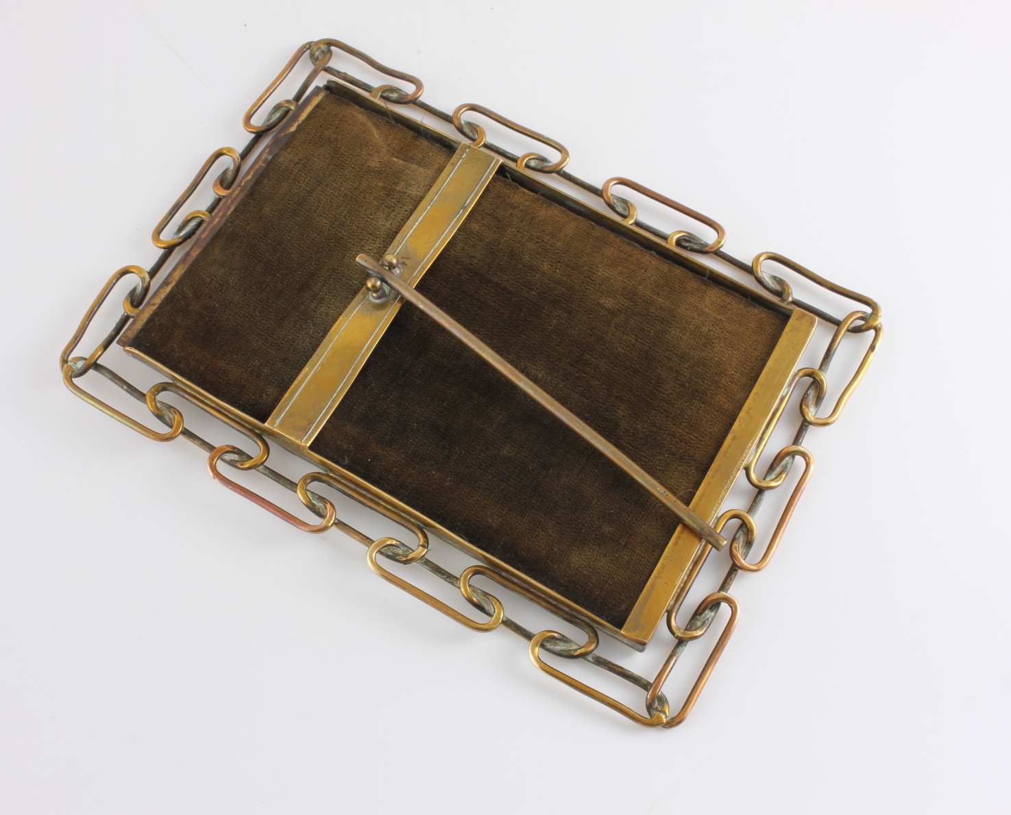 This picture frame has a beautiful brown velvet back and brass stay so will sit nicely on a shelf.