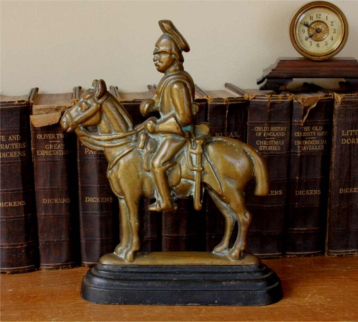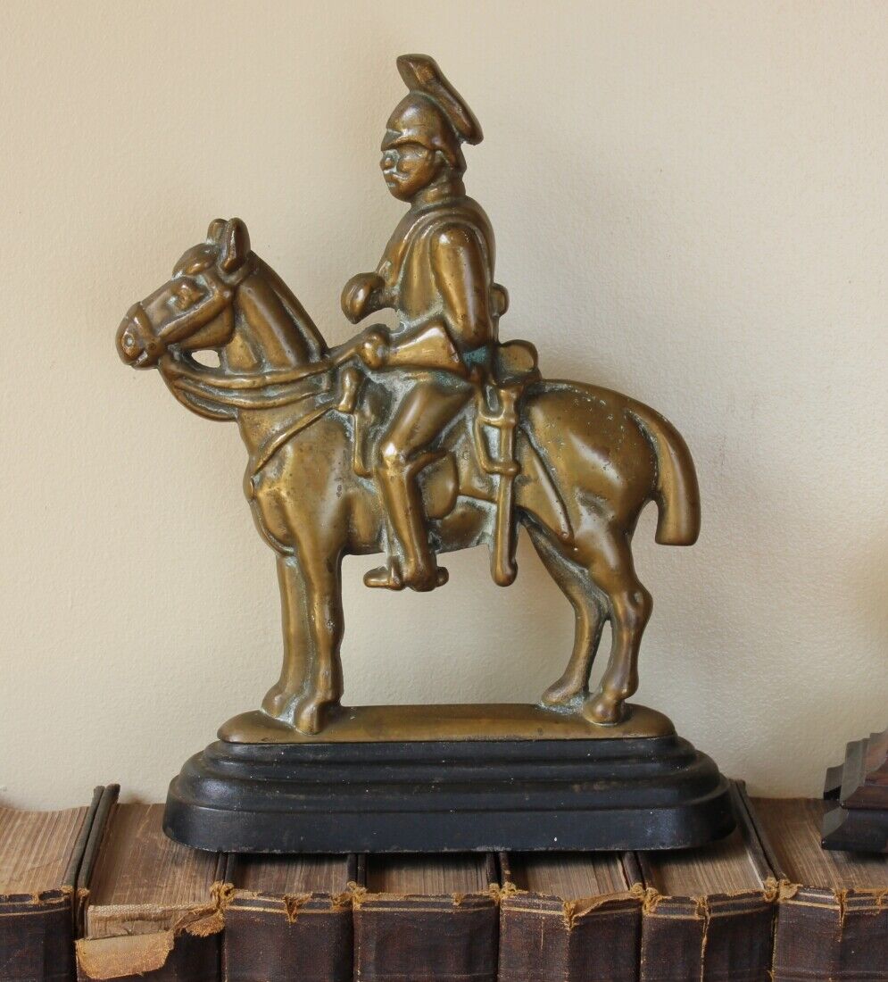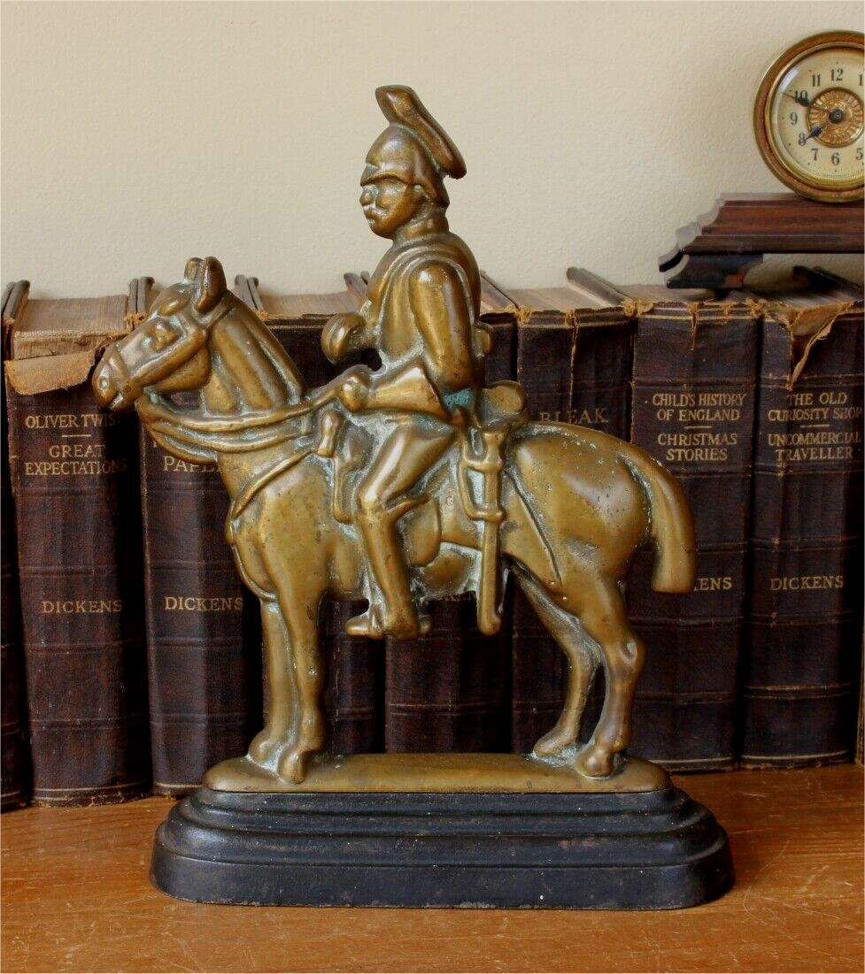 This handsome doorstop is made of brass with a cast iron base, dates from the first half of the 20th century and has lots of nice detail.