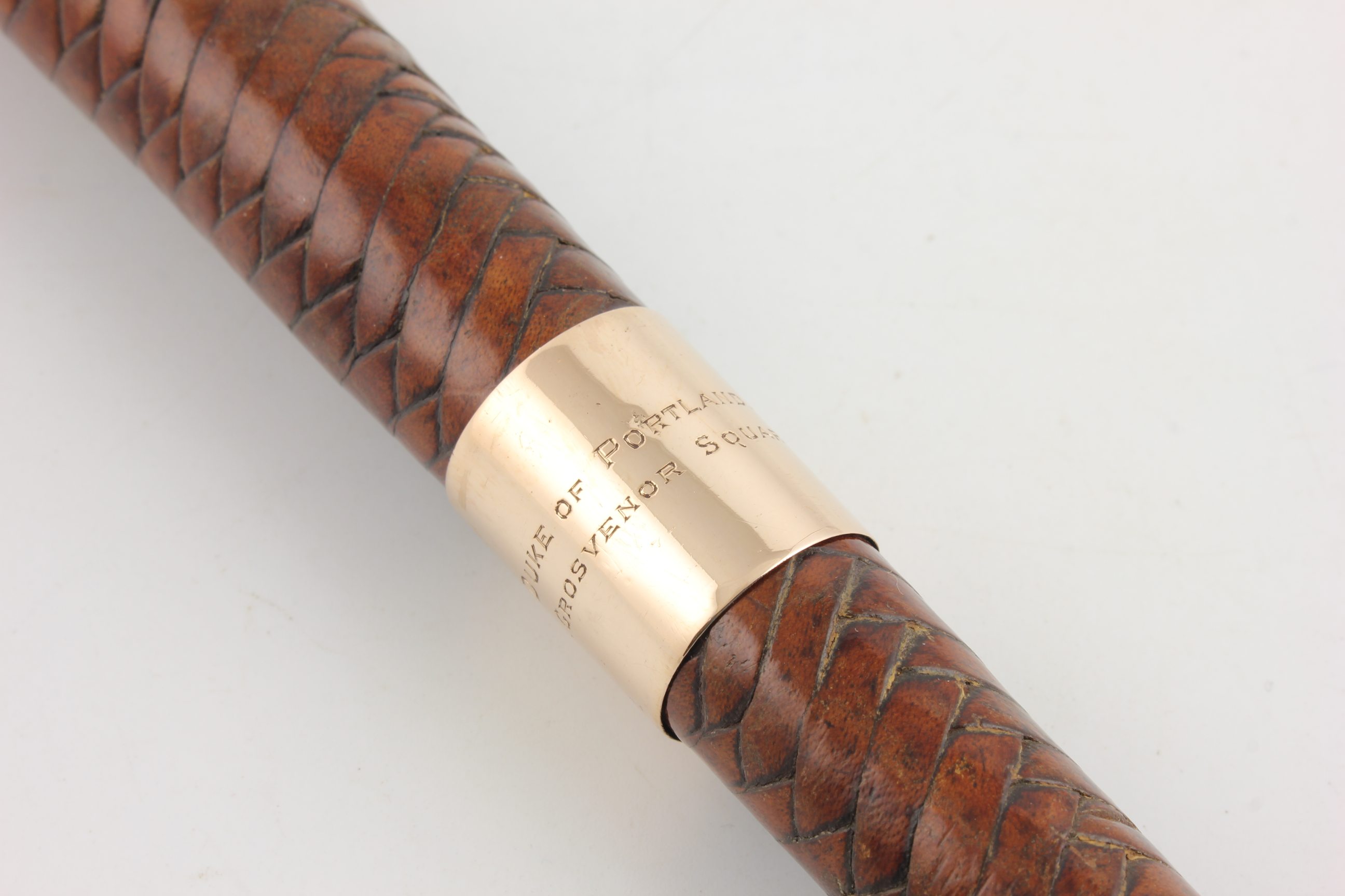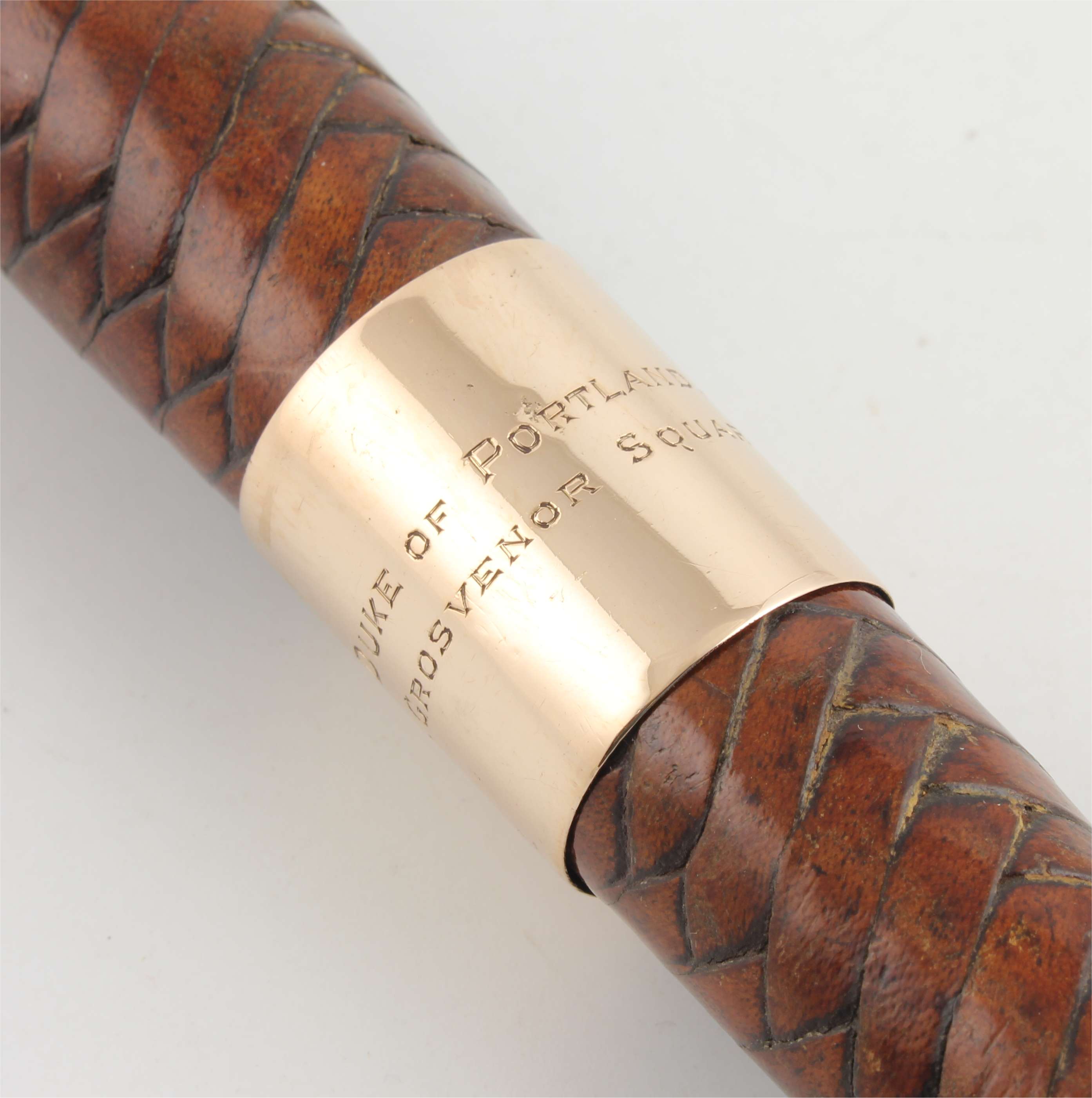 This high quality whip is engraved to the gold collar with Duke of Portland and his address of 3 Grosvenor Square.
