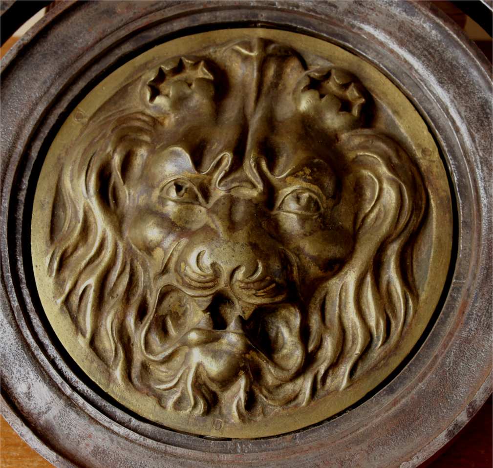 This fabulous hanging sign which originates from France dates from the 19th century, is made of heavy cast iron surround and has a central lion's head plaque which is made of gilded bronze.