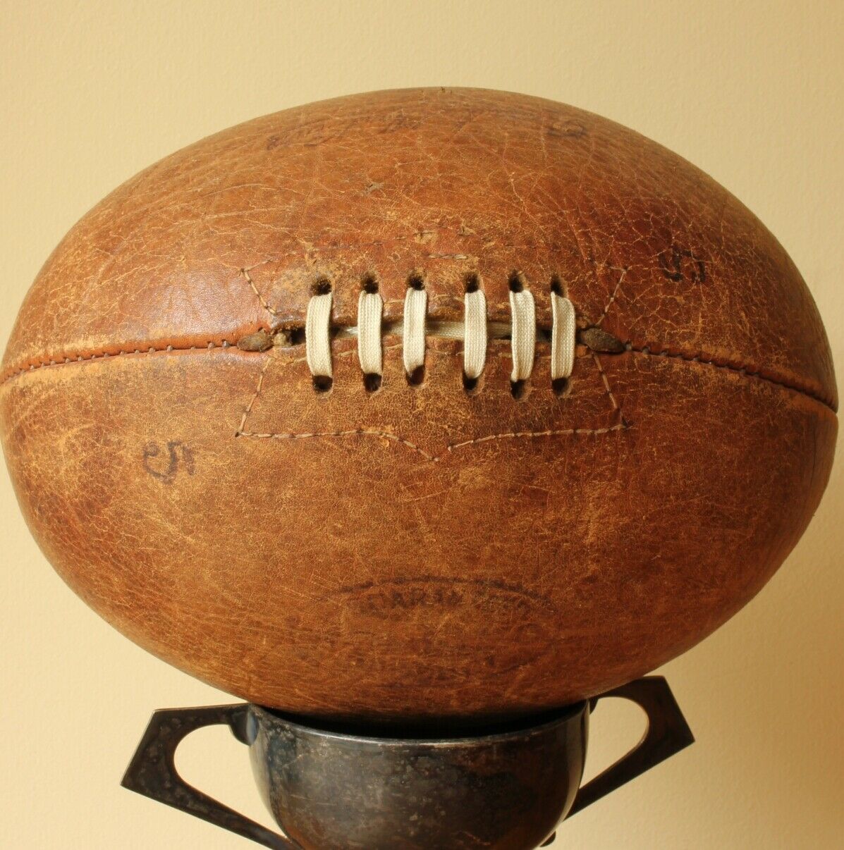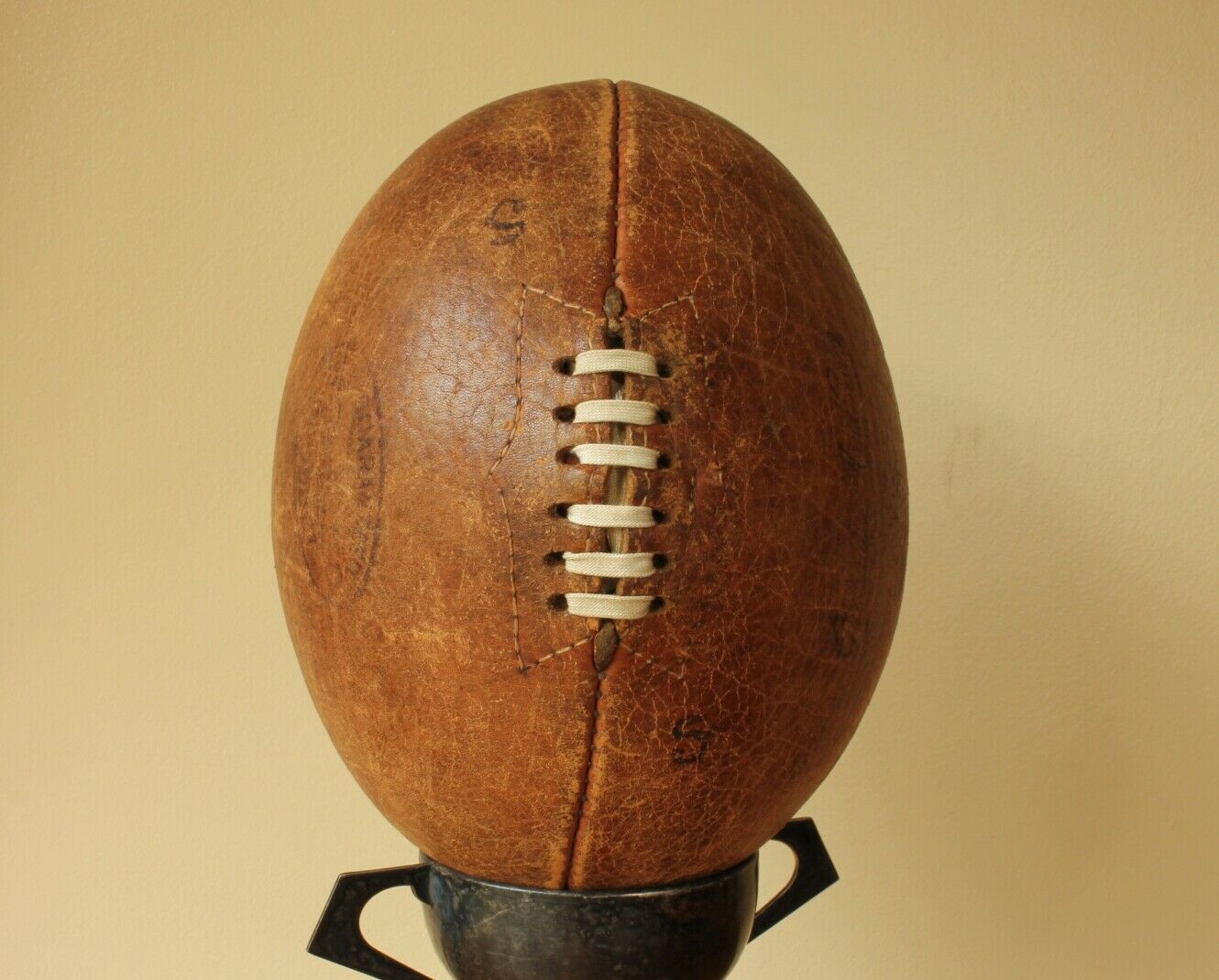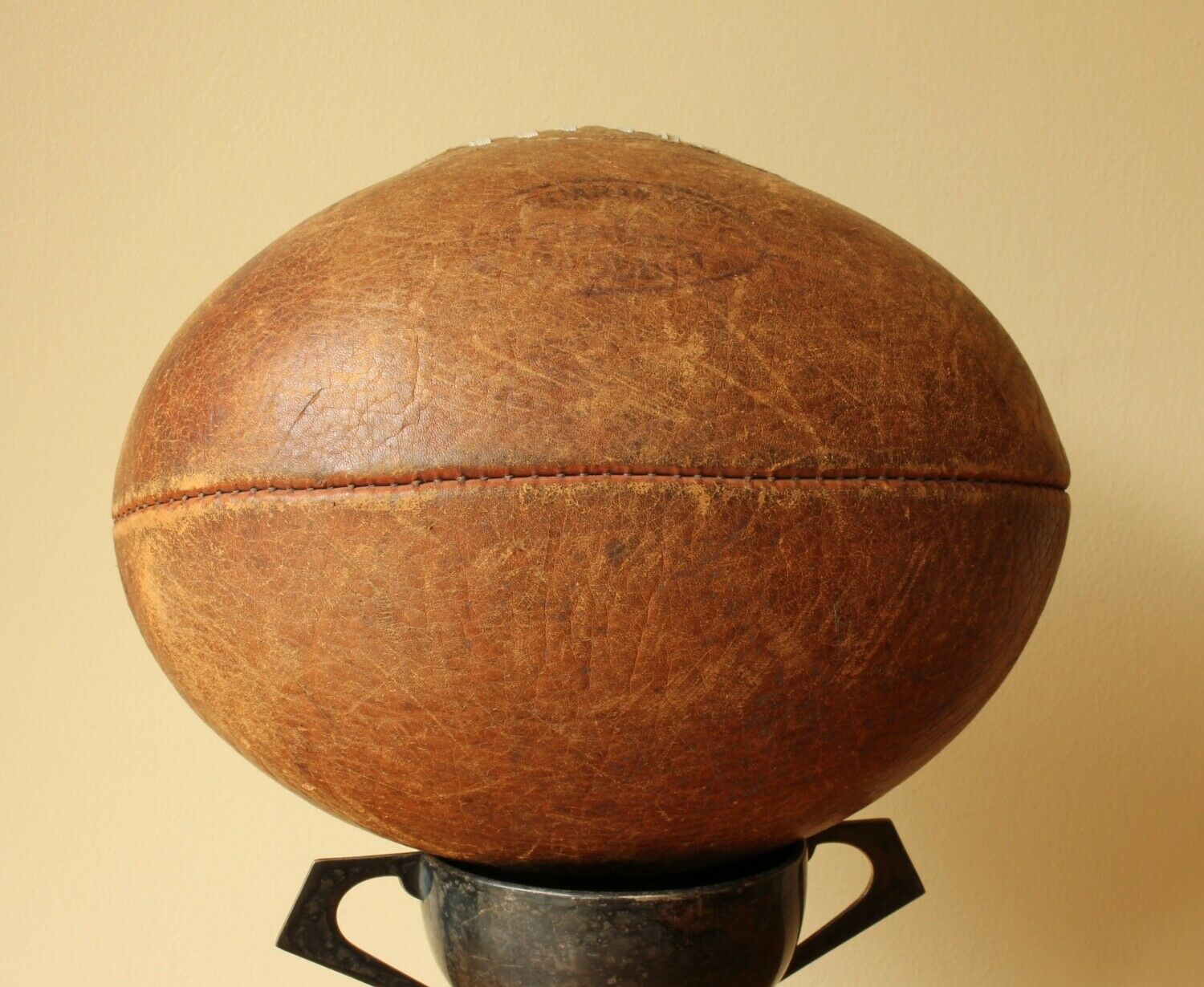 This original vintage Rugby ball is made of genuine tan brown leather, has cord laces and dates from the 1950's.