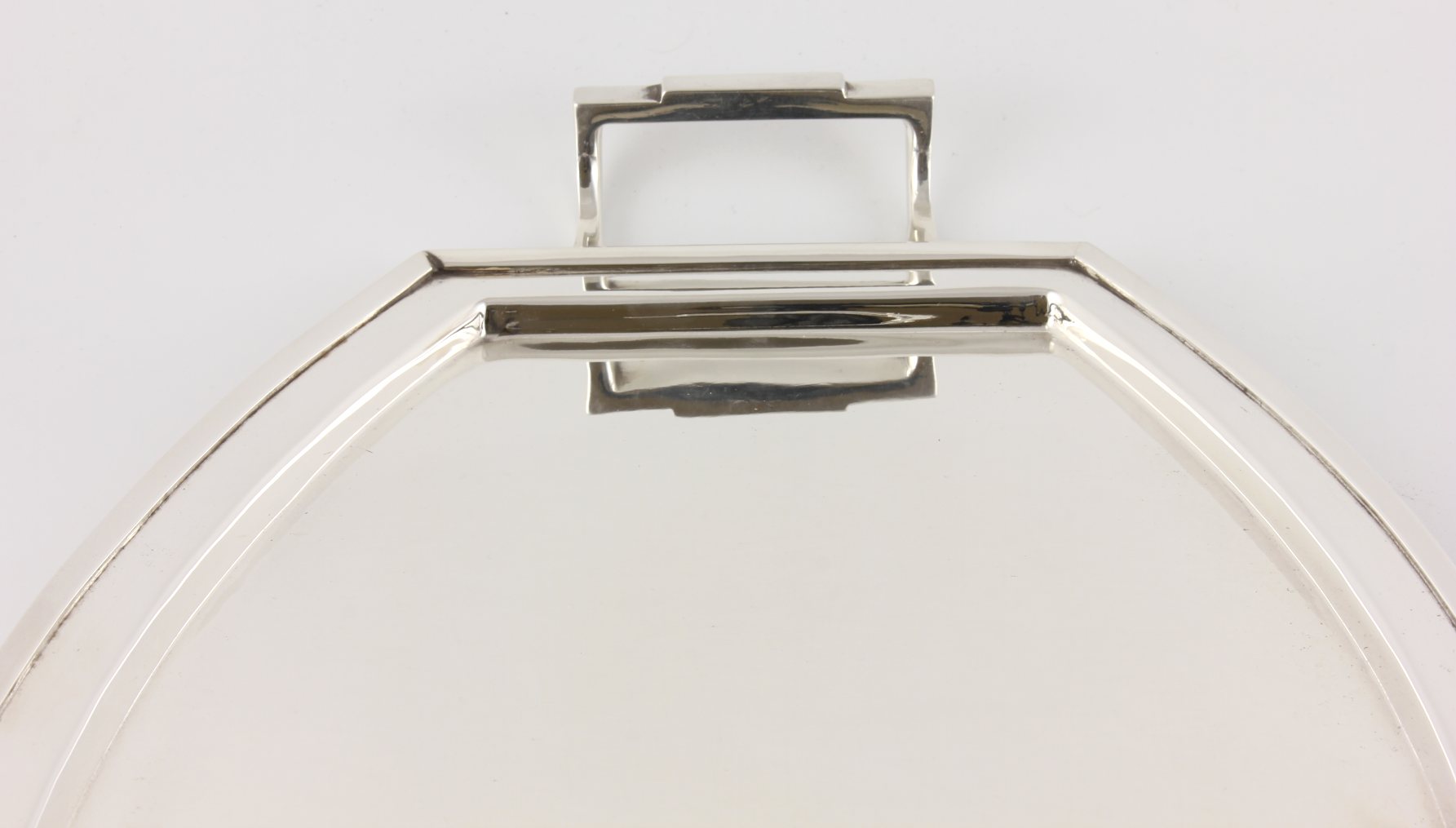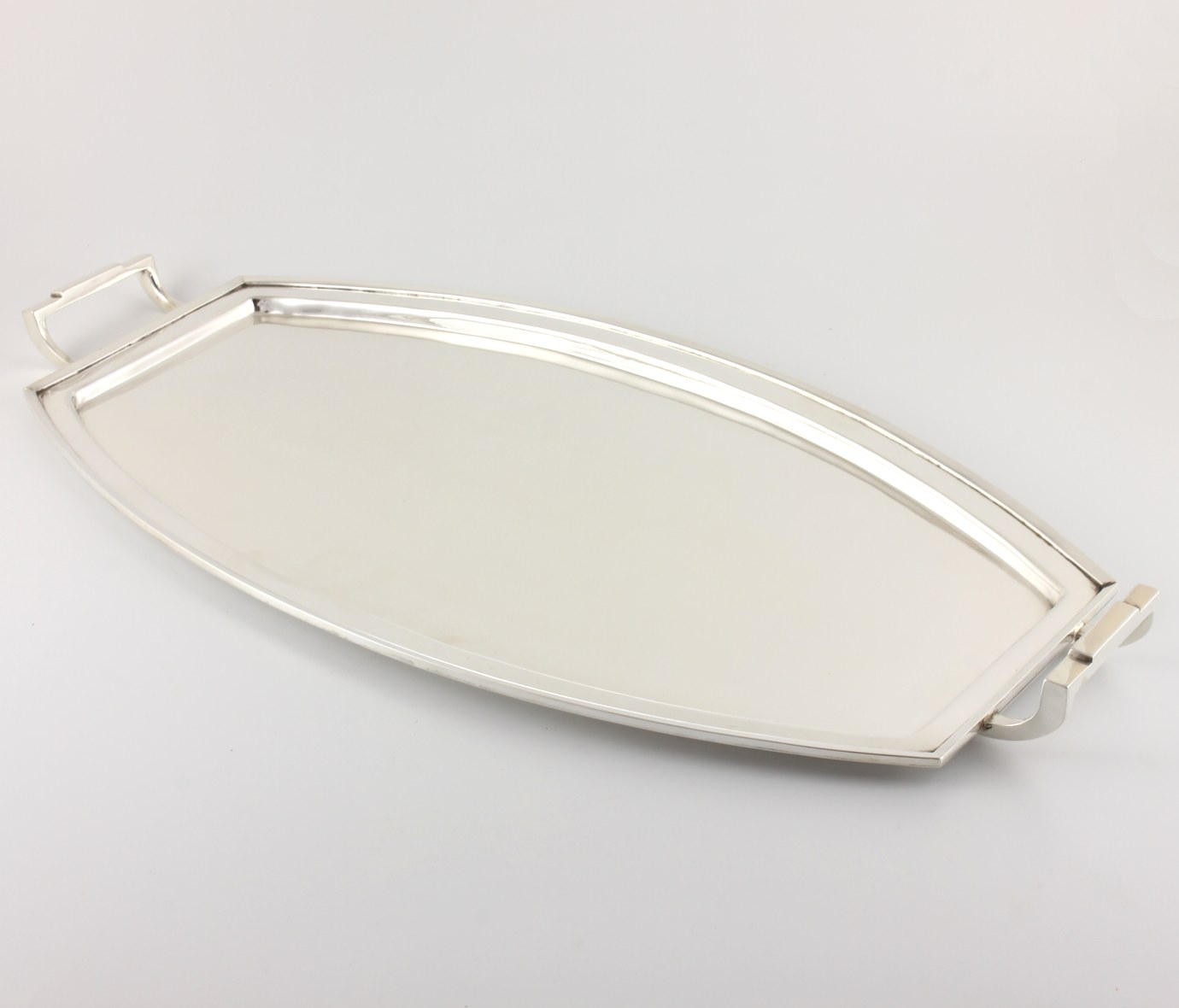This stylish silver plated cocktail tray which is made by CW Fletcher & Sons of Sheffield has a wonderful Art Deco design, incorporates two stepped handles to the ends and is a very nice size to go with a cocktail set.