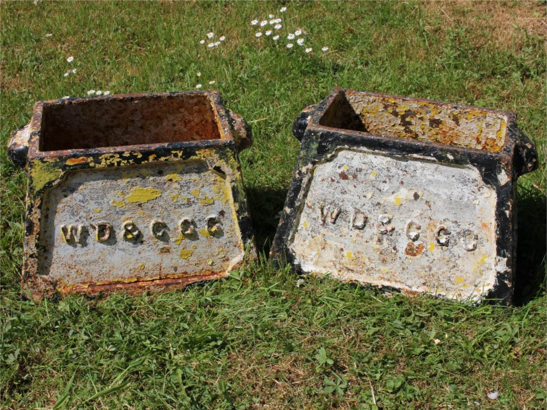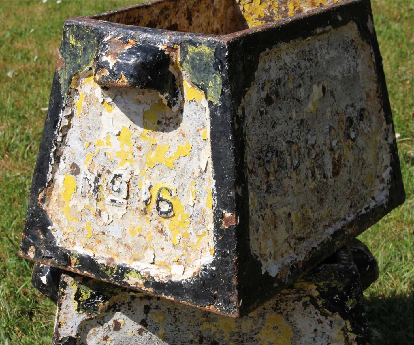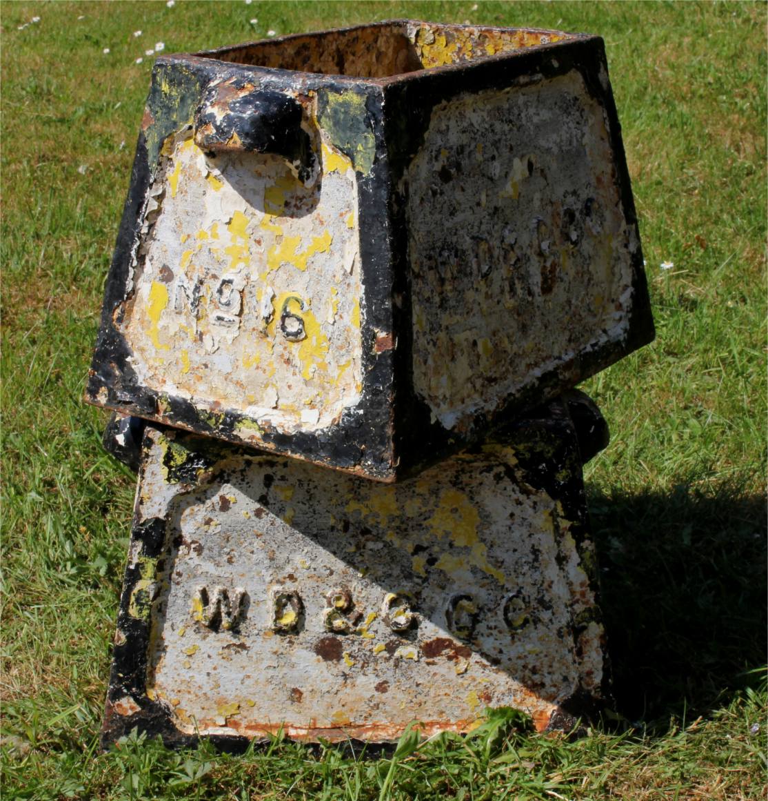 This pair of rustic pots are marked to the outer with W D & C G C (Weymouth, Dorchester & County Golf Club) and arrows. They have handles on either side and are also both marked with the hole number where they were situated on the course. No 6 and No 16.