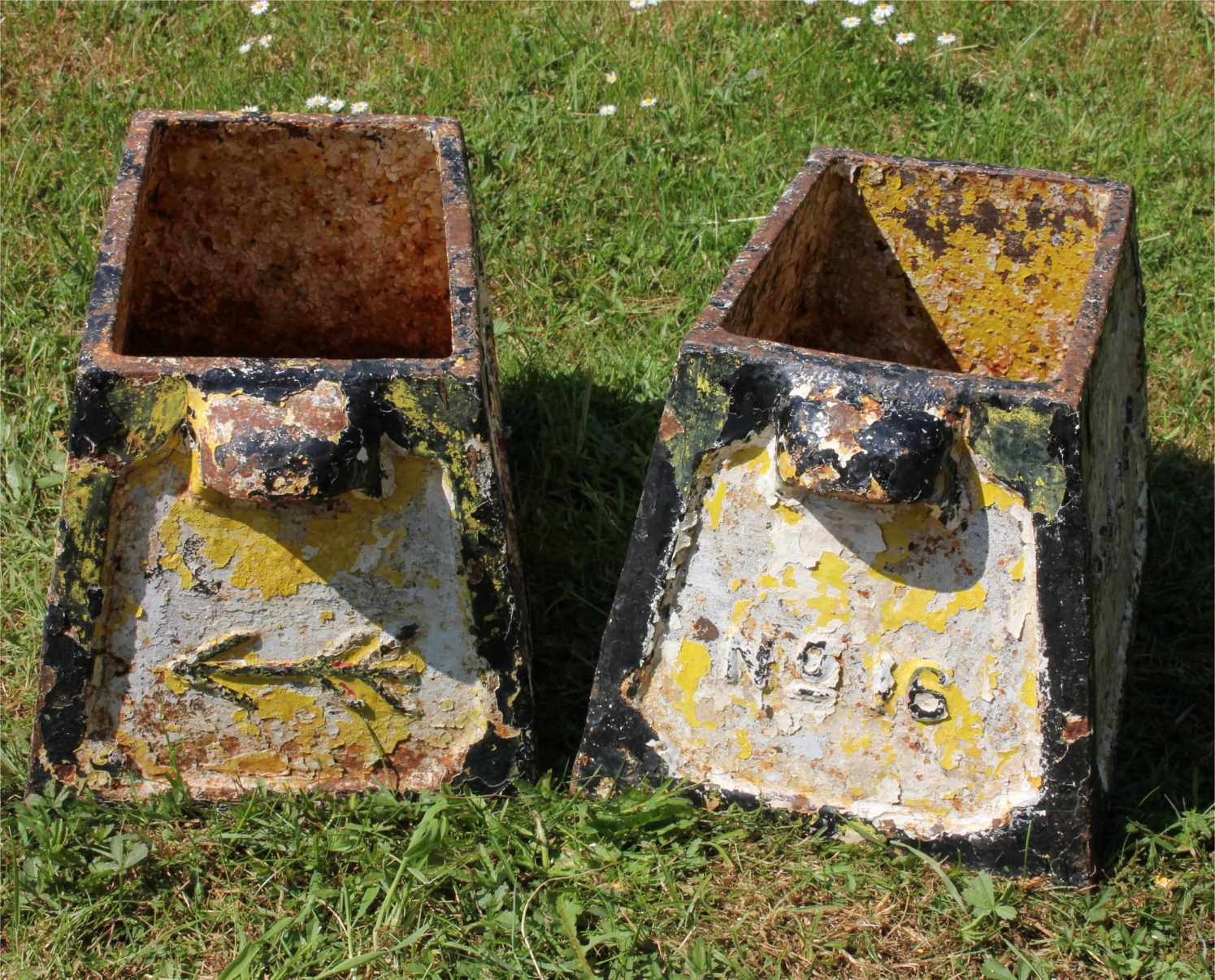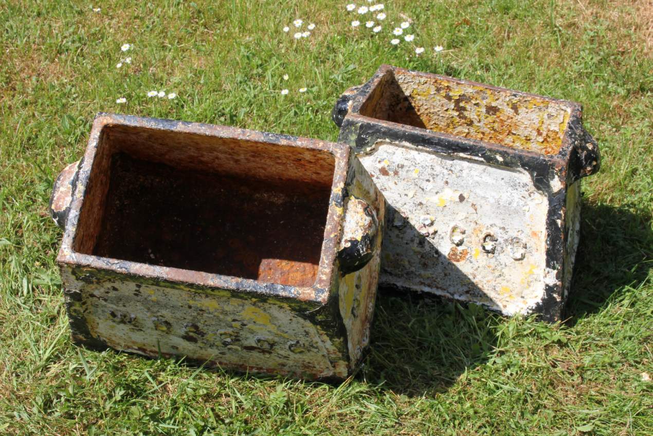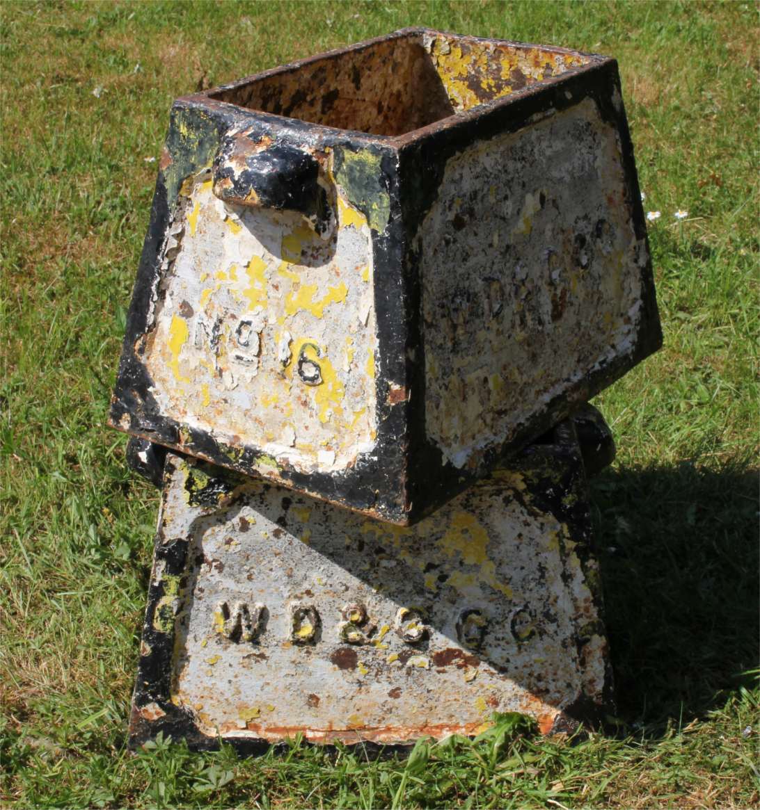 This pair of antique hole marker planters which were originally situated and used on Weymouth, Dorchester & County Golf Club are made of heavy cast iron and date from the late 19th century.