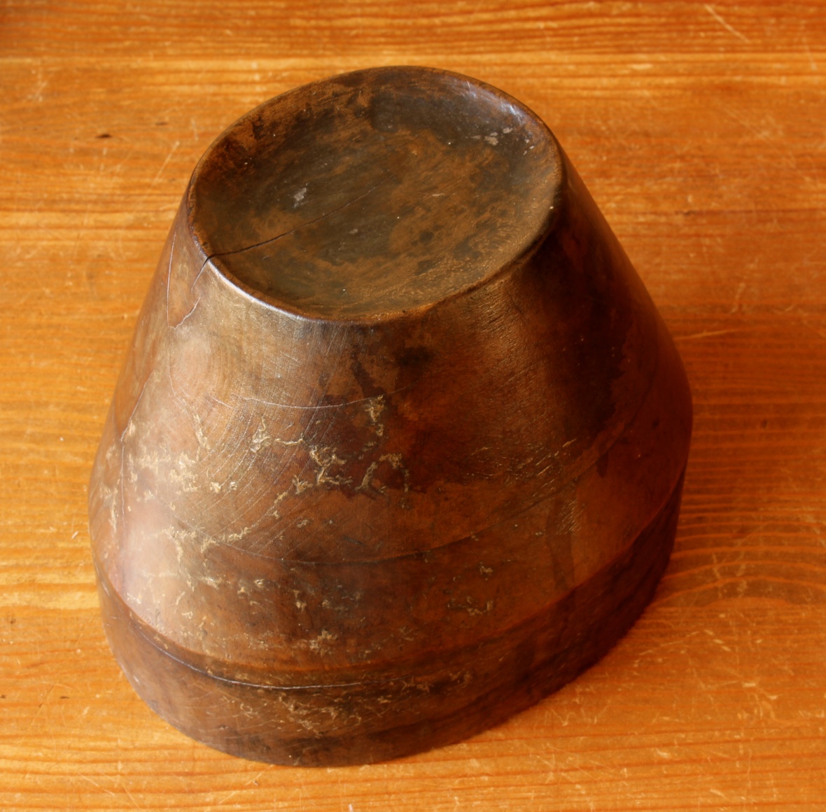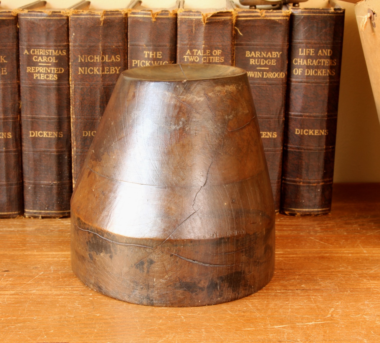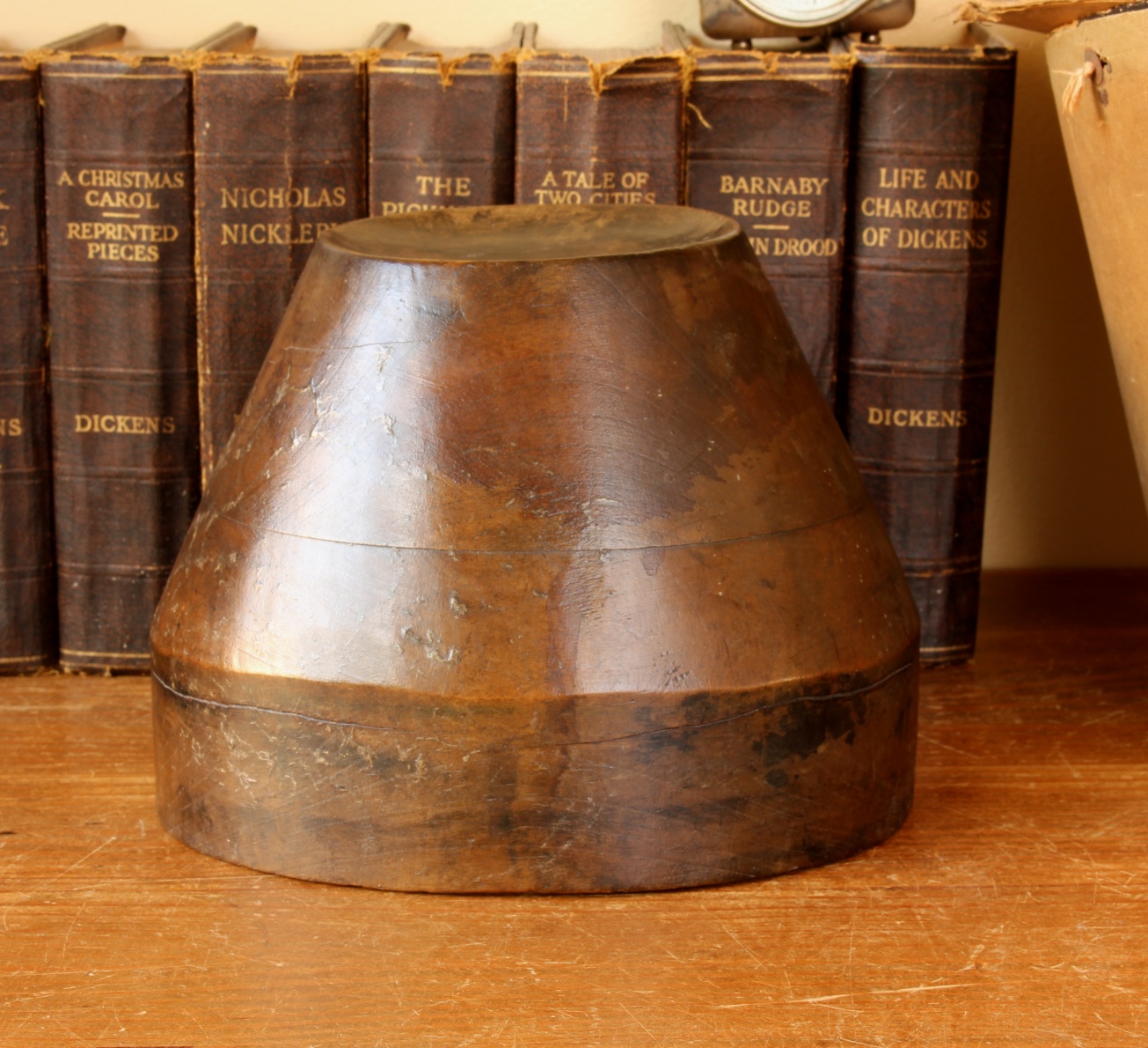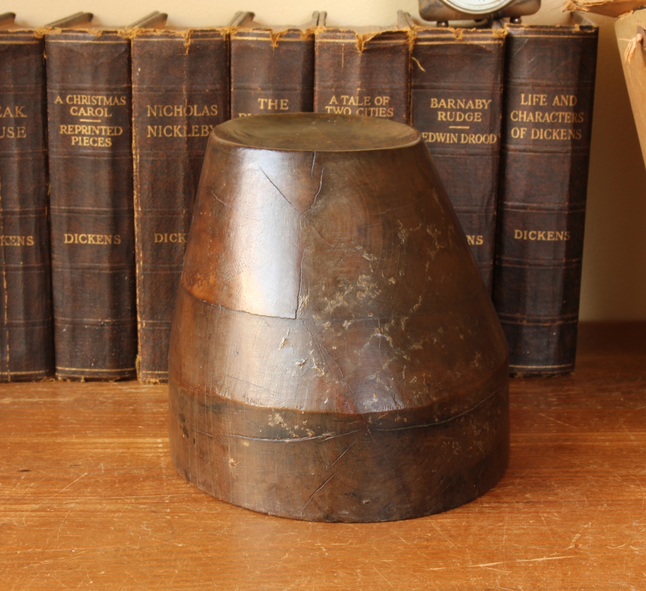 This wonderful antique wooden hat block which is an usual shape was originally used to make and shape hats and has a rich dark brown patina that looks fantastic on display.