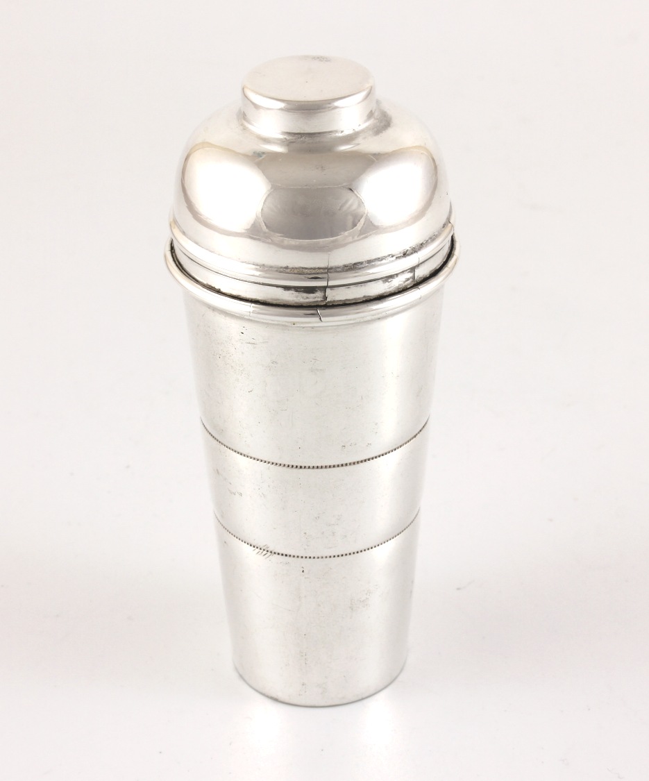 Dimensions of Silver Plated Miniature Cocktail Shaker: 12 cm (5") High. 5 cm (2") Wide.