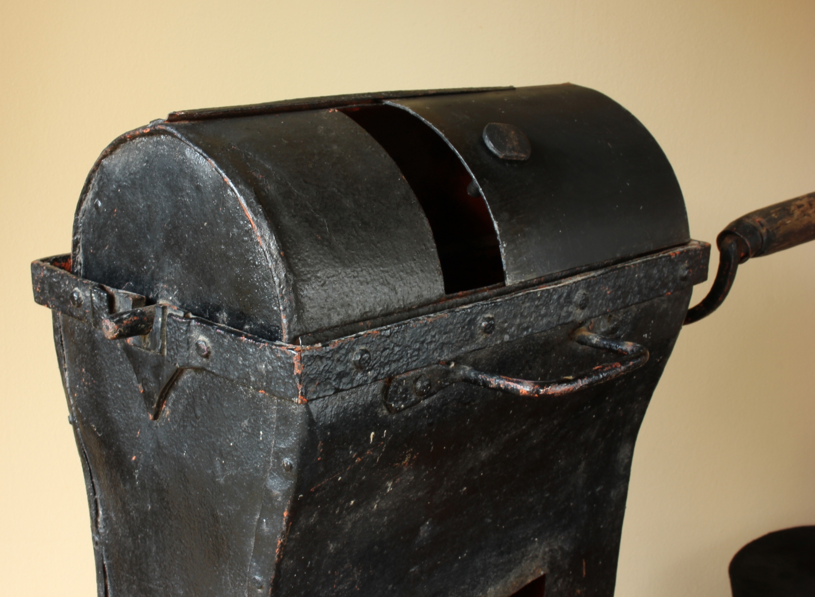 This fabulous Victorian street vendor's chestnut roaster which dates from the 19th century is made of wrought iron, stands on iron legs and has a turning barrel in which the chestnuts are cooked and kept hot over hot charcoal.