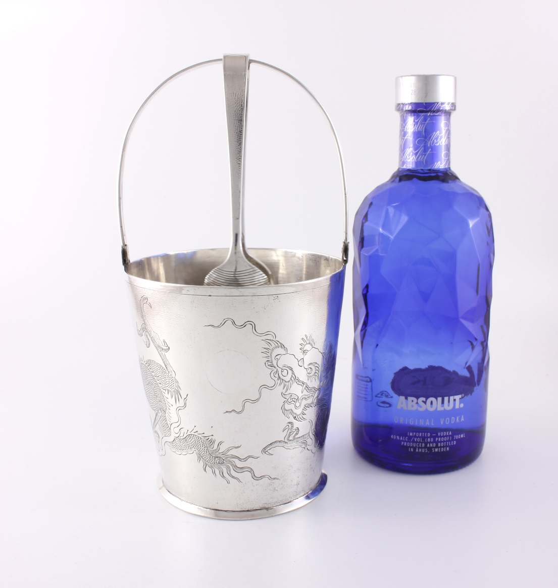 This handsome ice bucket and tongs not only looks great on display but would make a wonderful gift for a Chinese silver collector and is also a nice usable bar accessory.