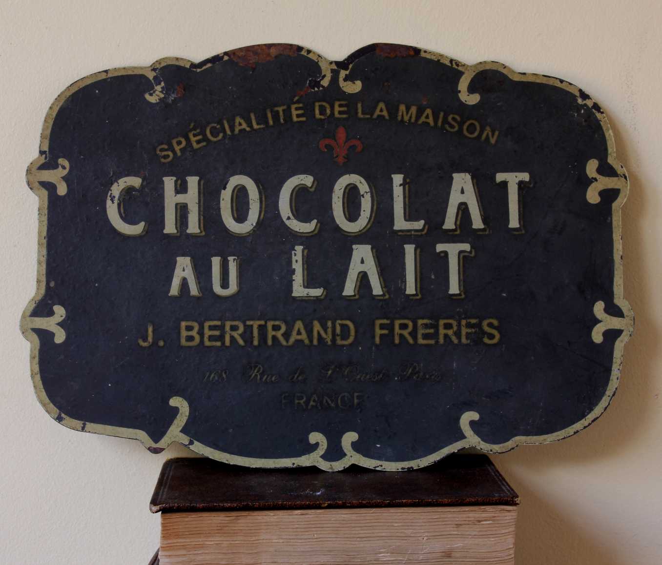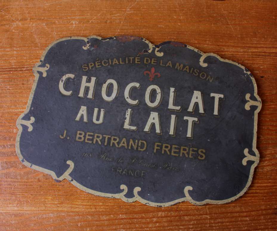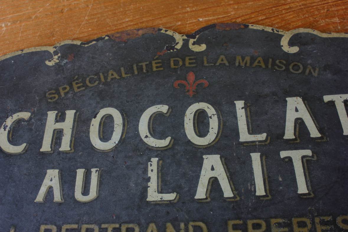 This French vintage advertising sign which is made of metal would have originally been hung in a French Cafe to advertise Chocolat Au Lait by Bertrand Freres of Paris in the mid 20th century.