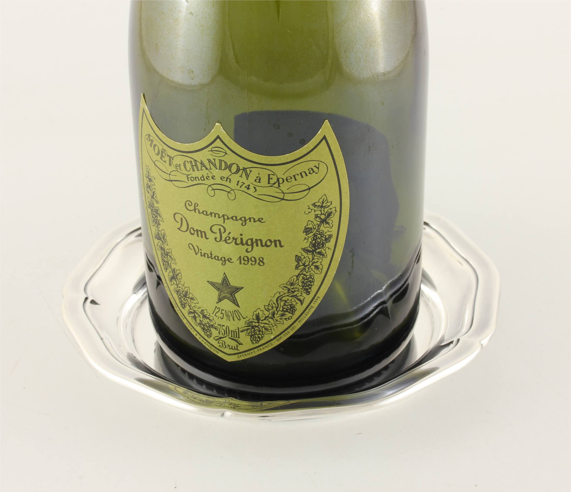 This fabulous antique Champagne / wine bottle coaster which is by top French silversmith Christofle is made of silver plate and is of very good quality.