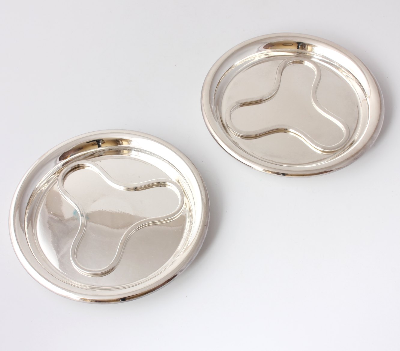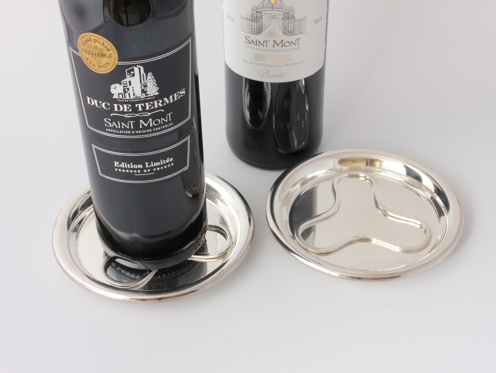 The coasters come complete with their removable silver plate trivets on which your bottles of wine would sit.