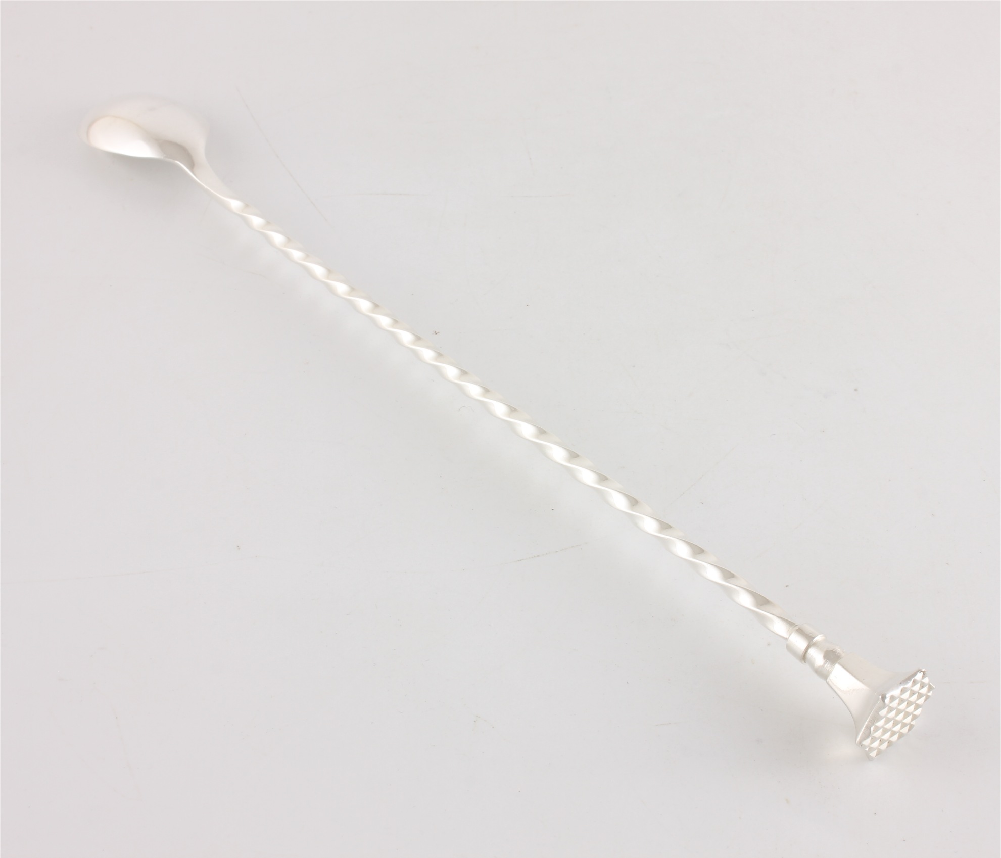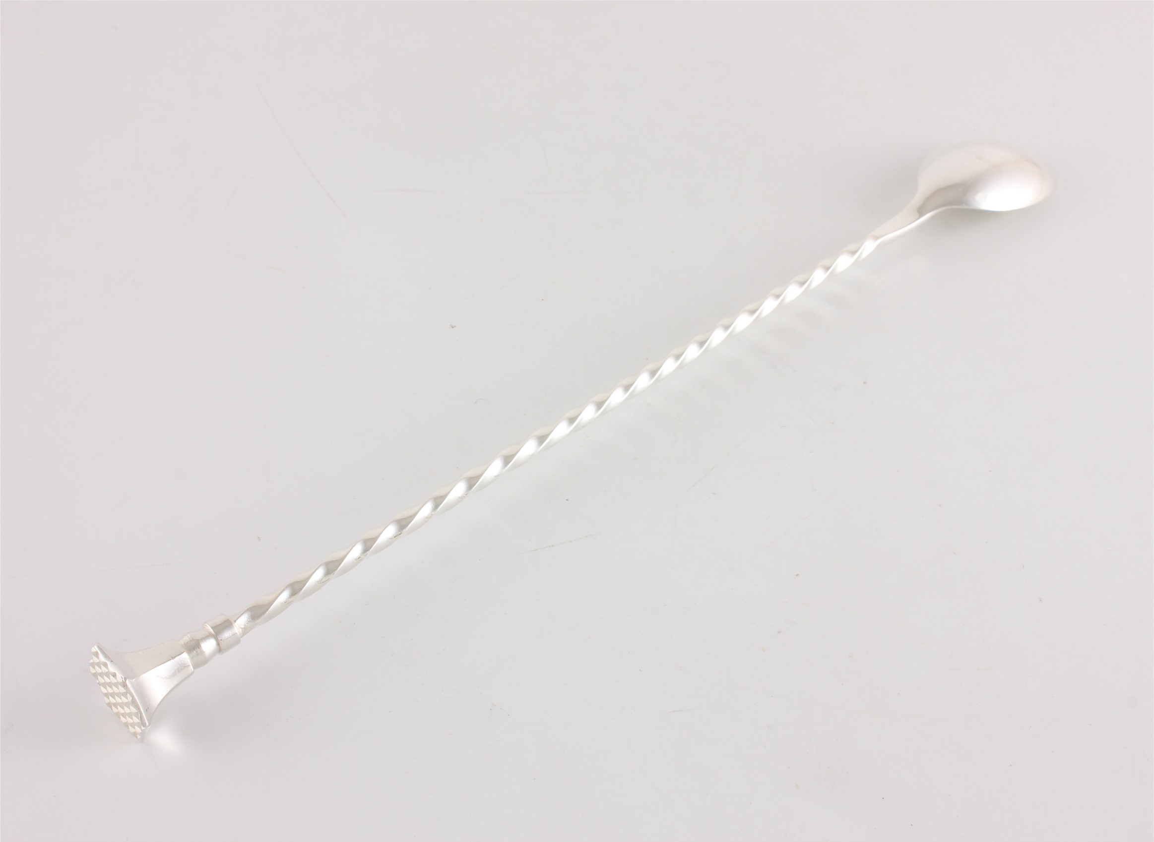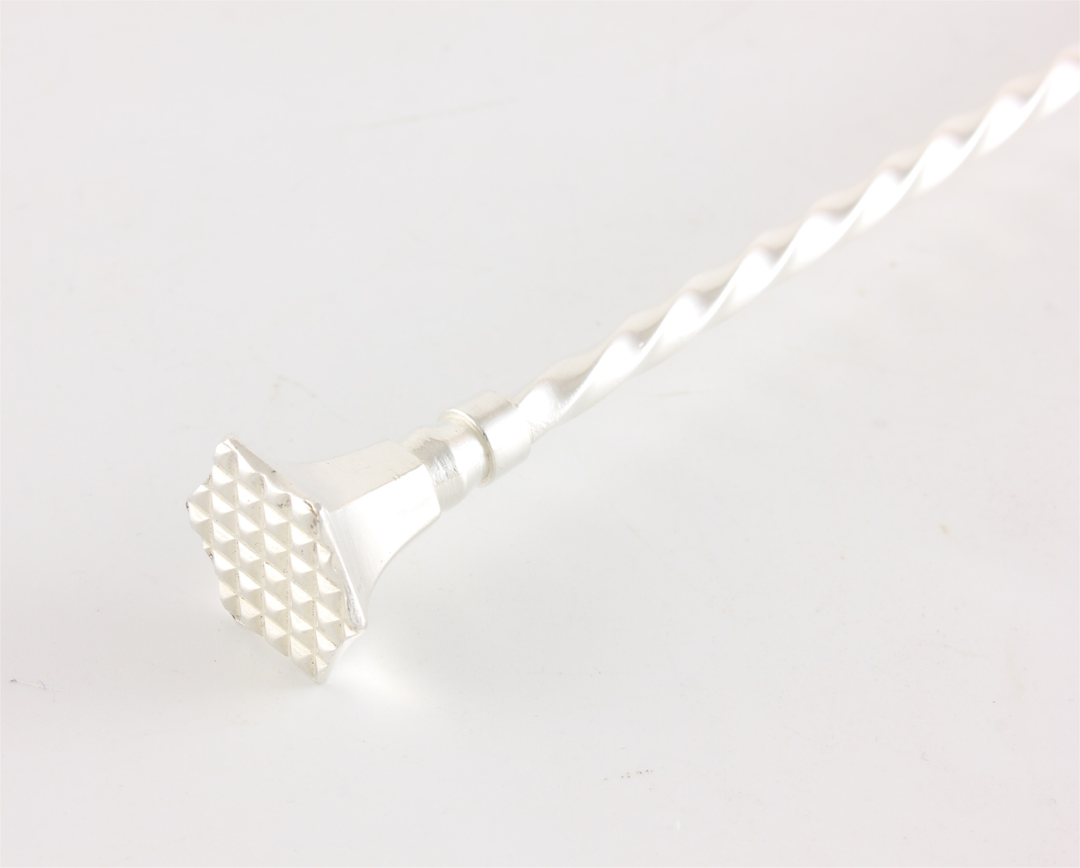 This long stirrer has a twisted design with a large spoon to one end and a hexagonal muddler at the other end for crushing your cocktail ingredients.