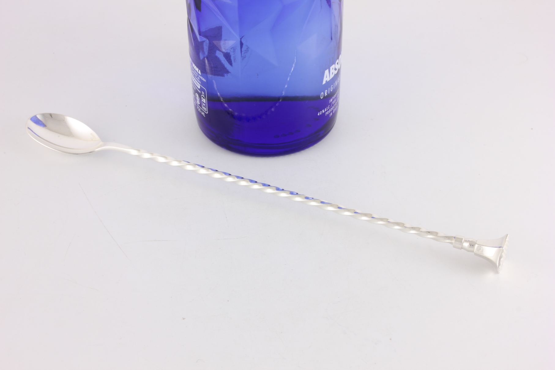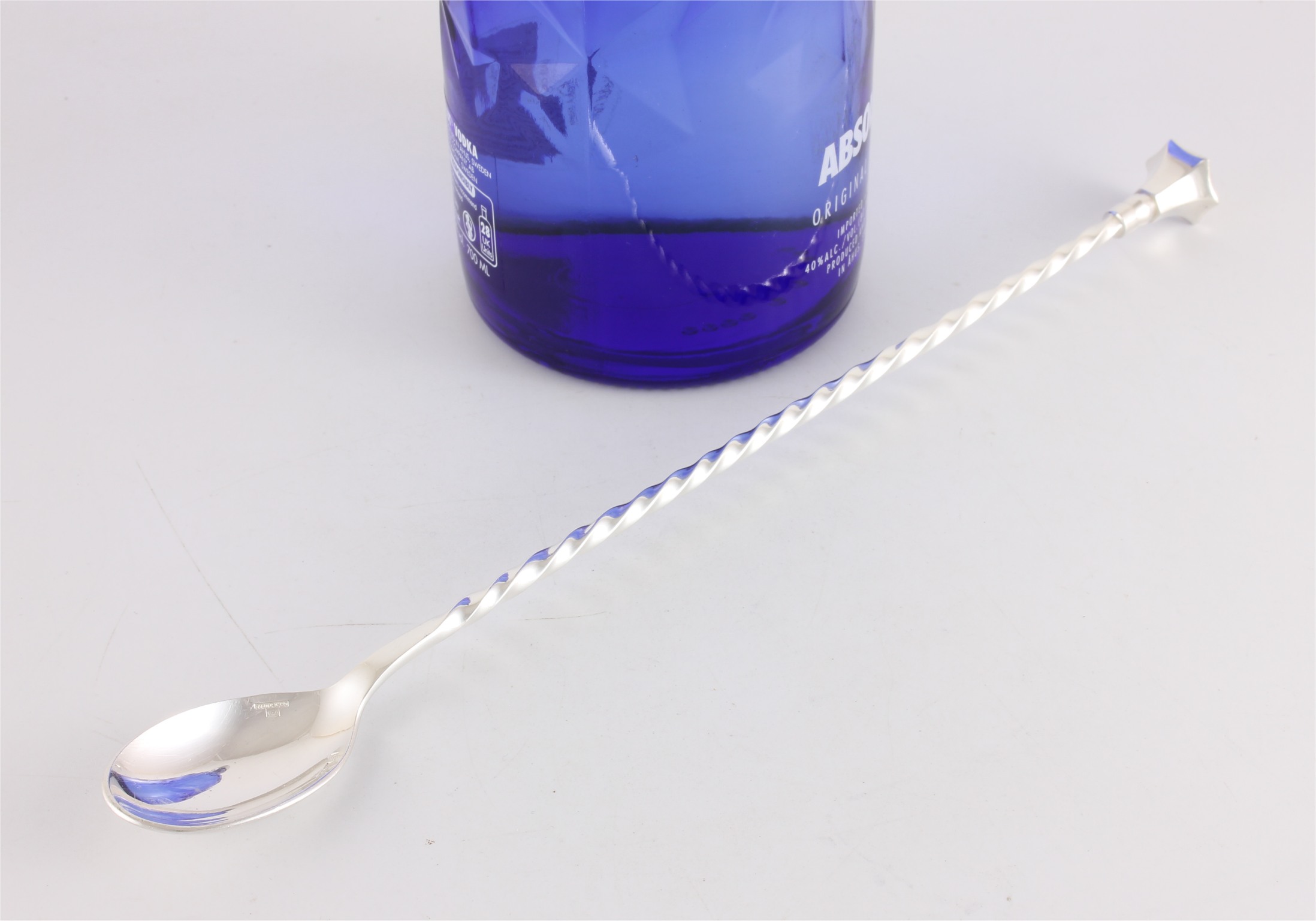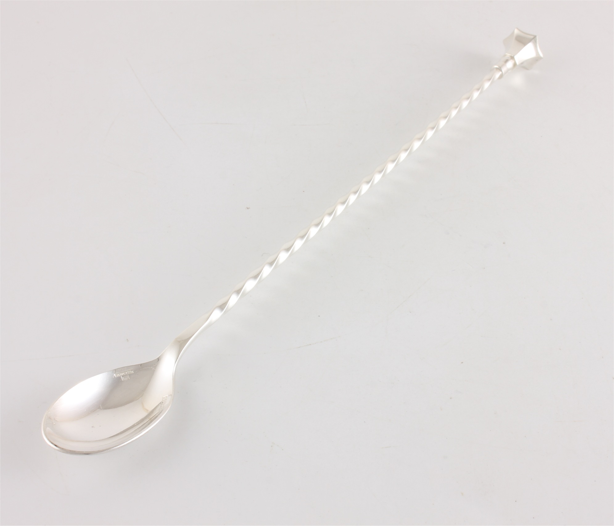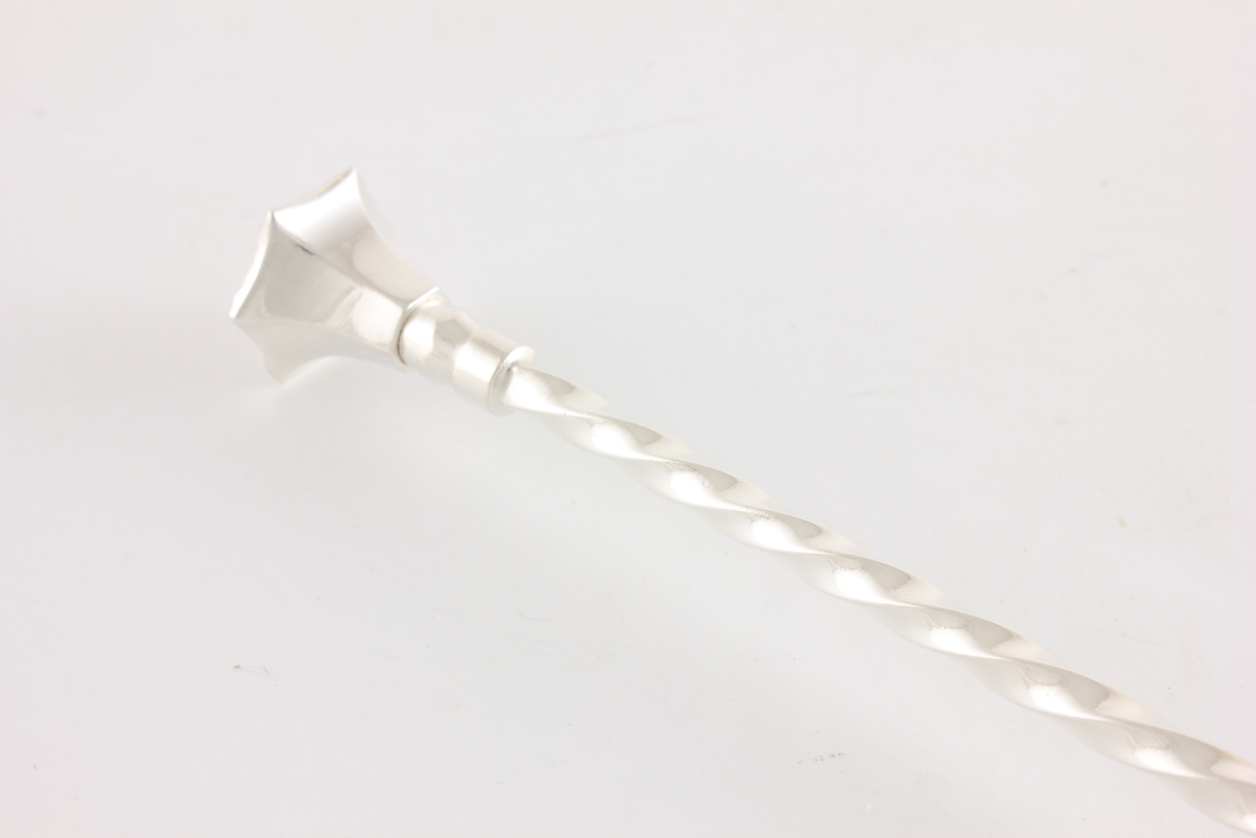 This long stirrer has a twisted design with a large spoon to one end and a hexagonal muddler at the other end for crushing your cocktail ingredients.
