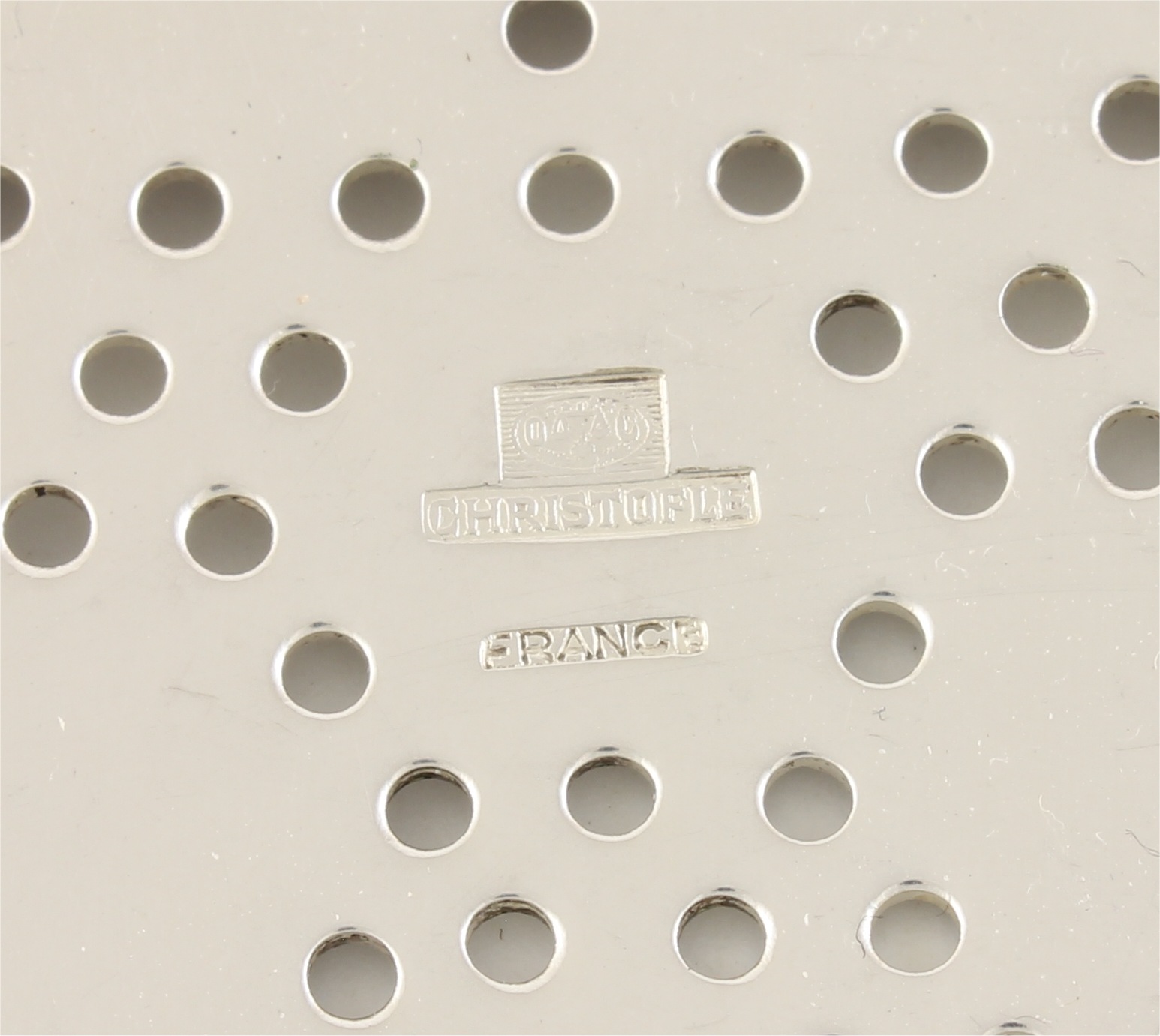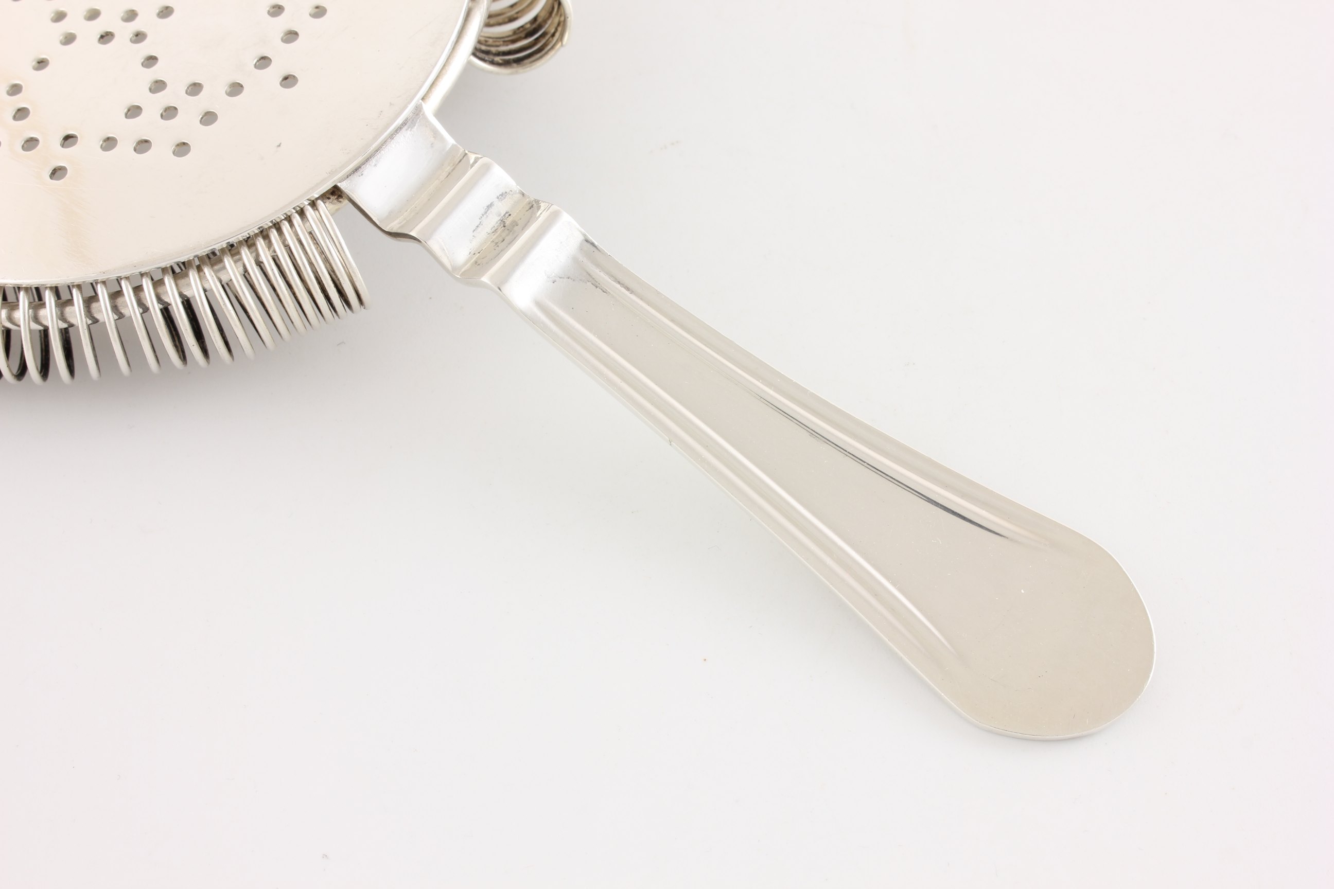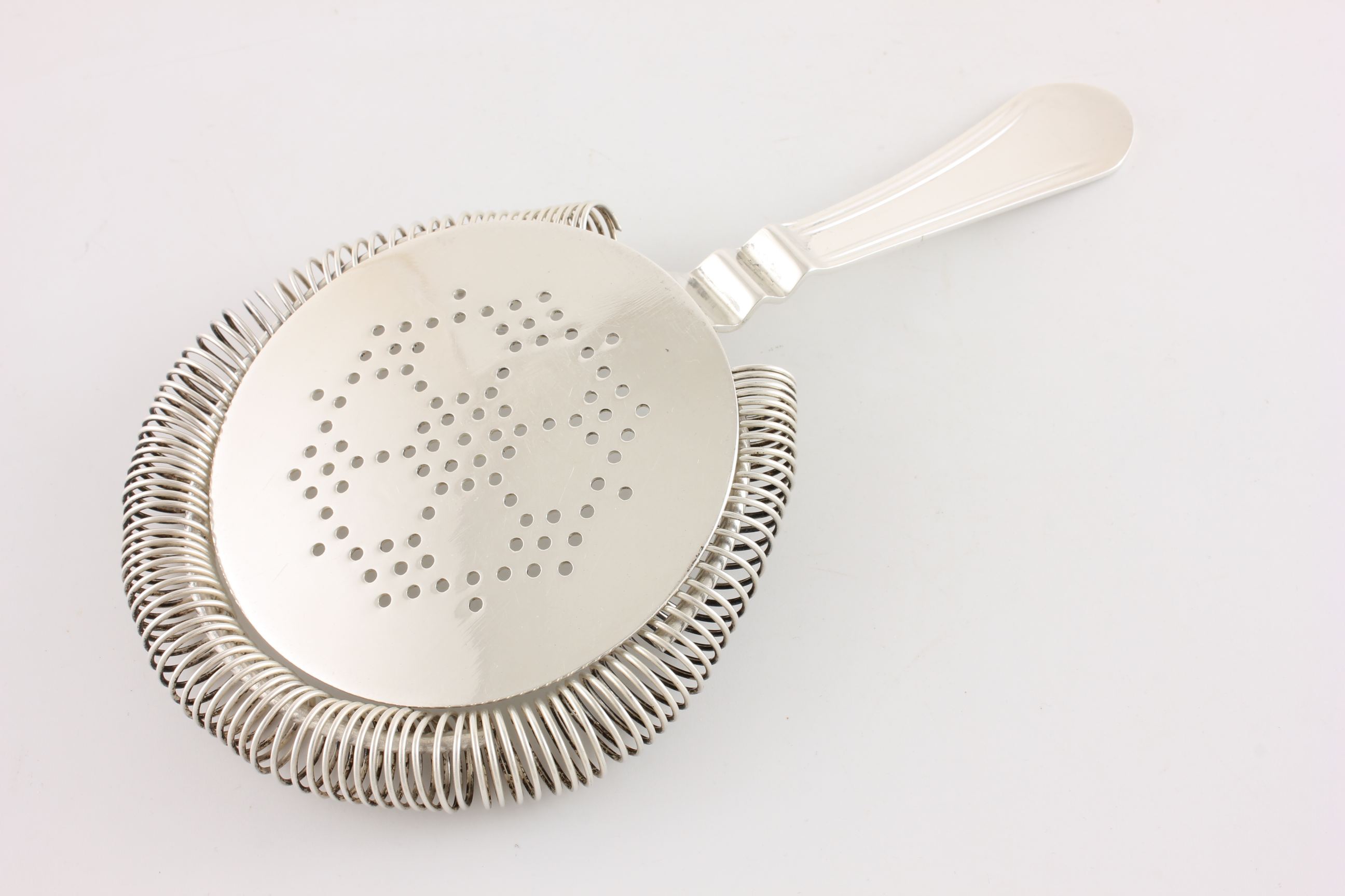 This fine vintage silver plated cocktail strainer which is by top French maker Christofle dates from c1930 and is signed with it's Christofle maker's marks.
