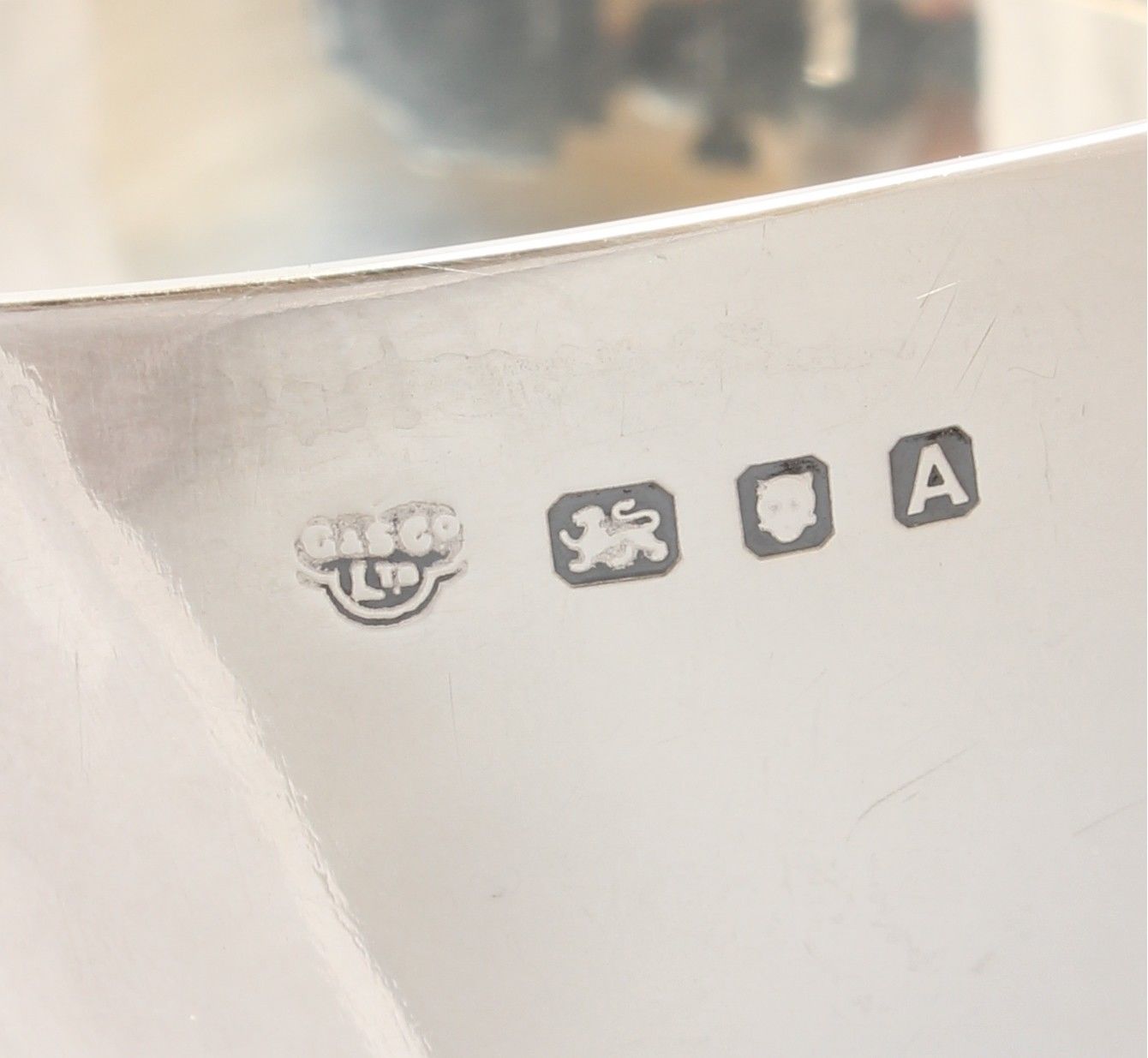 Hallmarked: Fully hallmarked with Lion for sterling silver. Leopards head for London, date letter A for 1936 and with the maker's mark G&S Co Ltd for Goldsmiths & Silversmiths Company Ltd. Also has Goldsmiths & Silversmiths Company Ltd. 112 Regent Street W inscribed to the bottom.