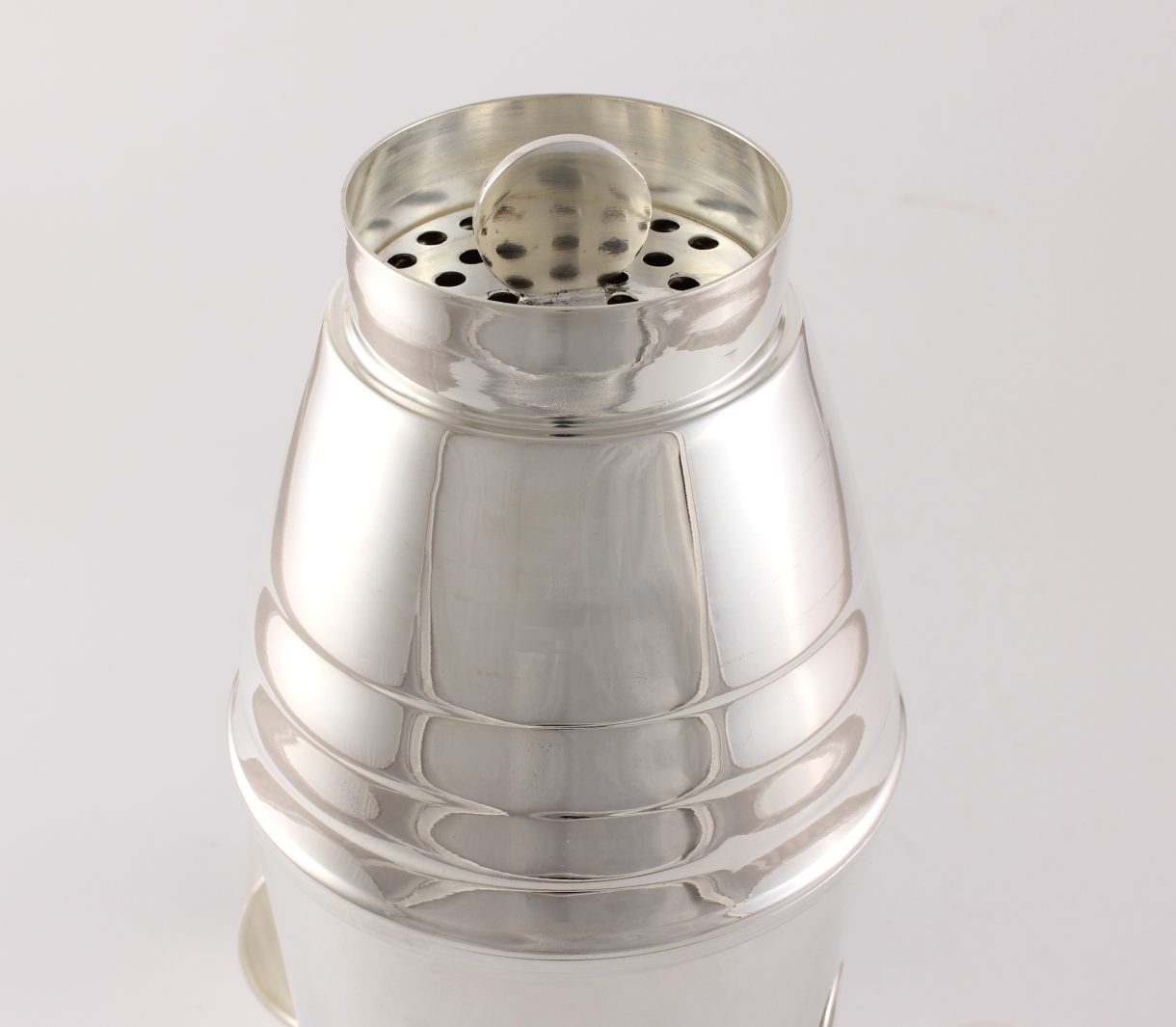 This handsome shaker which is made of high quality silver plate and is made by a top silversmith Adie Brothers not only looks great with it's wonderful Art Deco design but is also in beautiful condition so is a nice usable bar accessory.