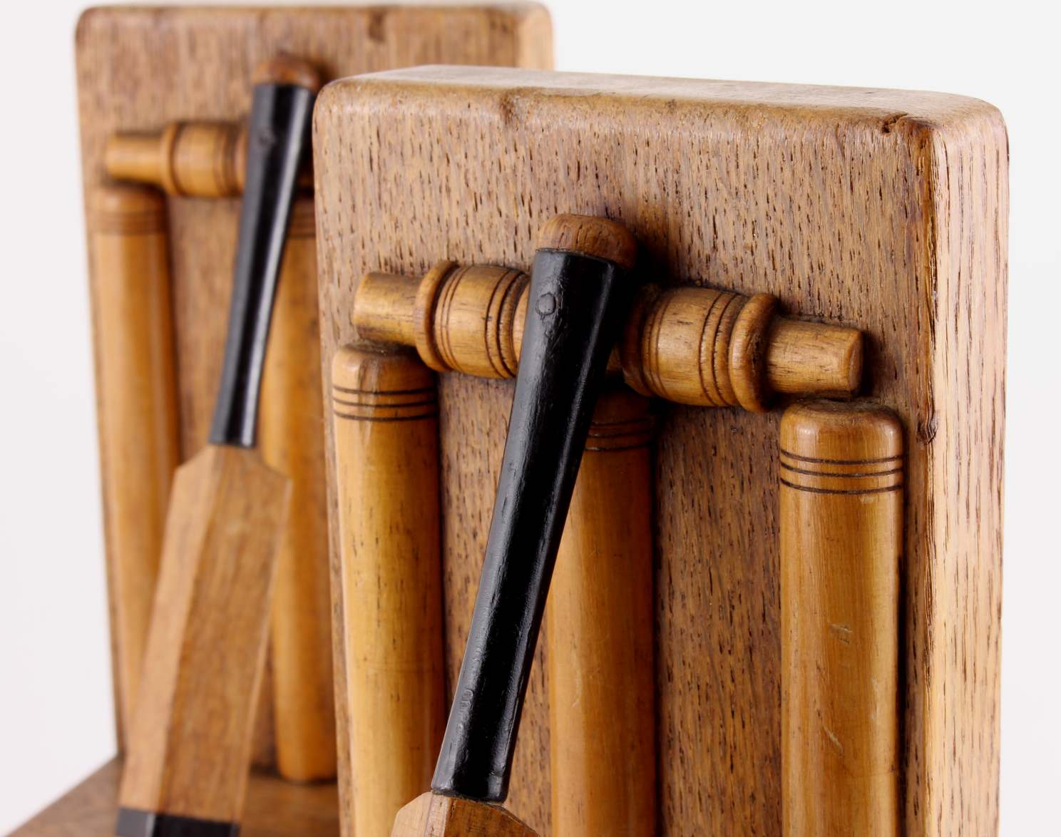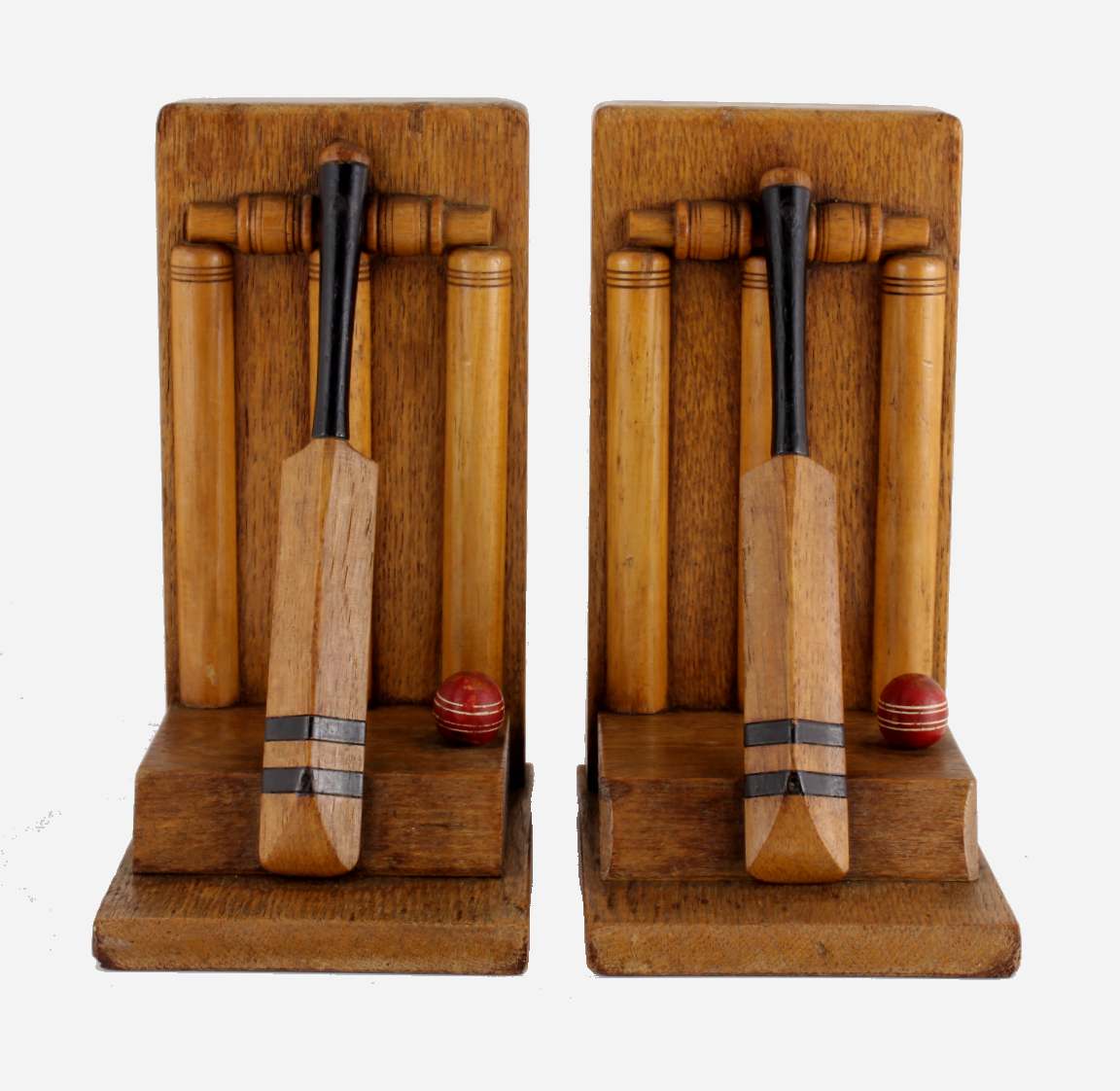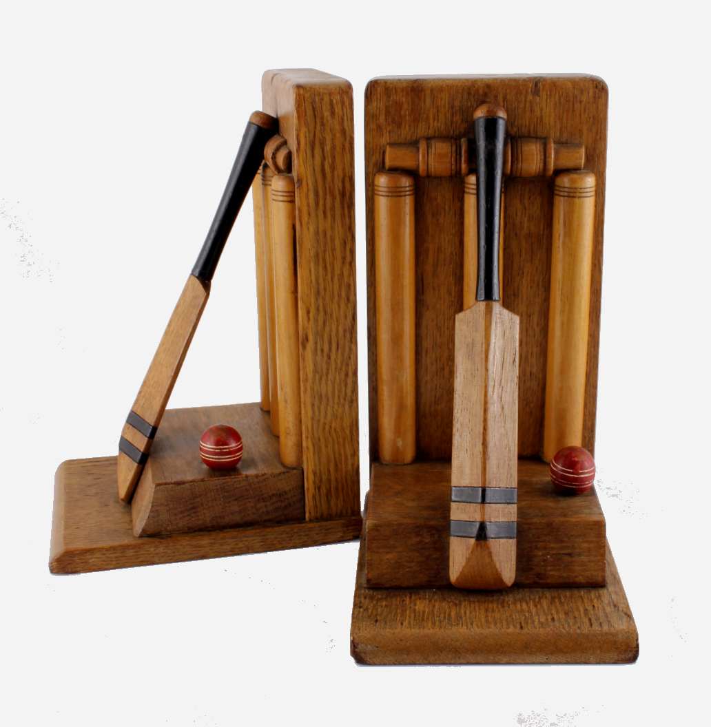 This handsome Art Deco set of oak bookends date from the 1930's and are in the form of cricket stumps with each one having a mini bat and ball. These were handmade by the Thornton-Smith Company in the 1930's and have excellent detail.