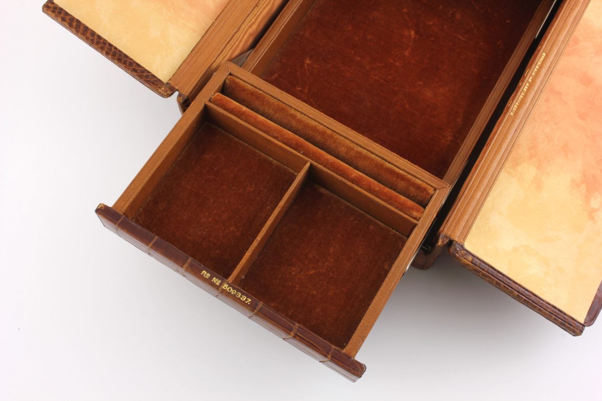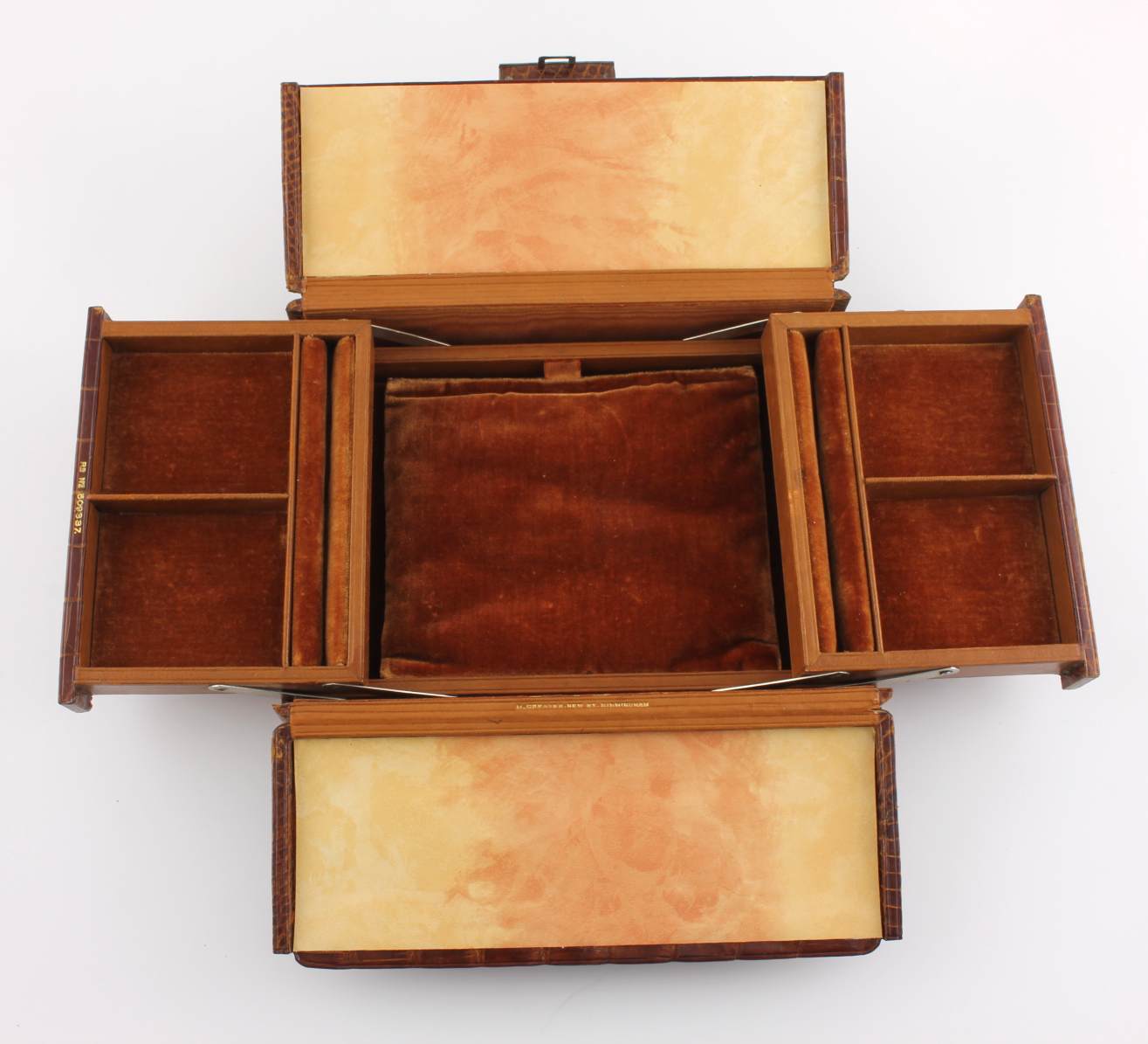 This handsome Edwardian tan croc leather jewellery box which is by H. Greaves of Birmingham dates from the beginning of the 20th century.