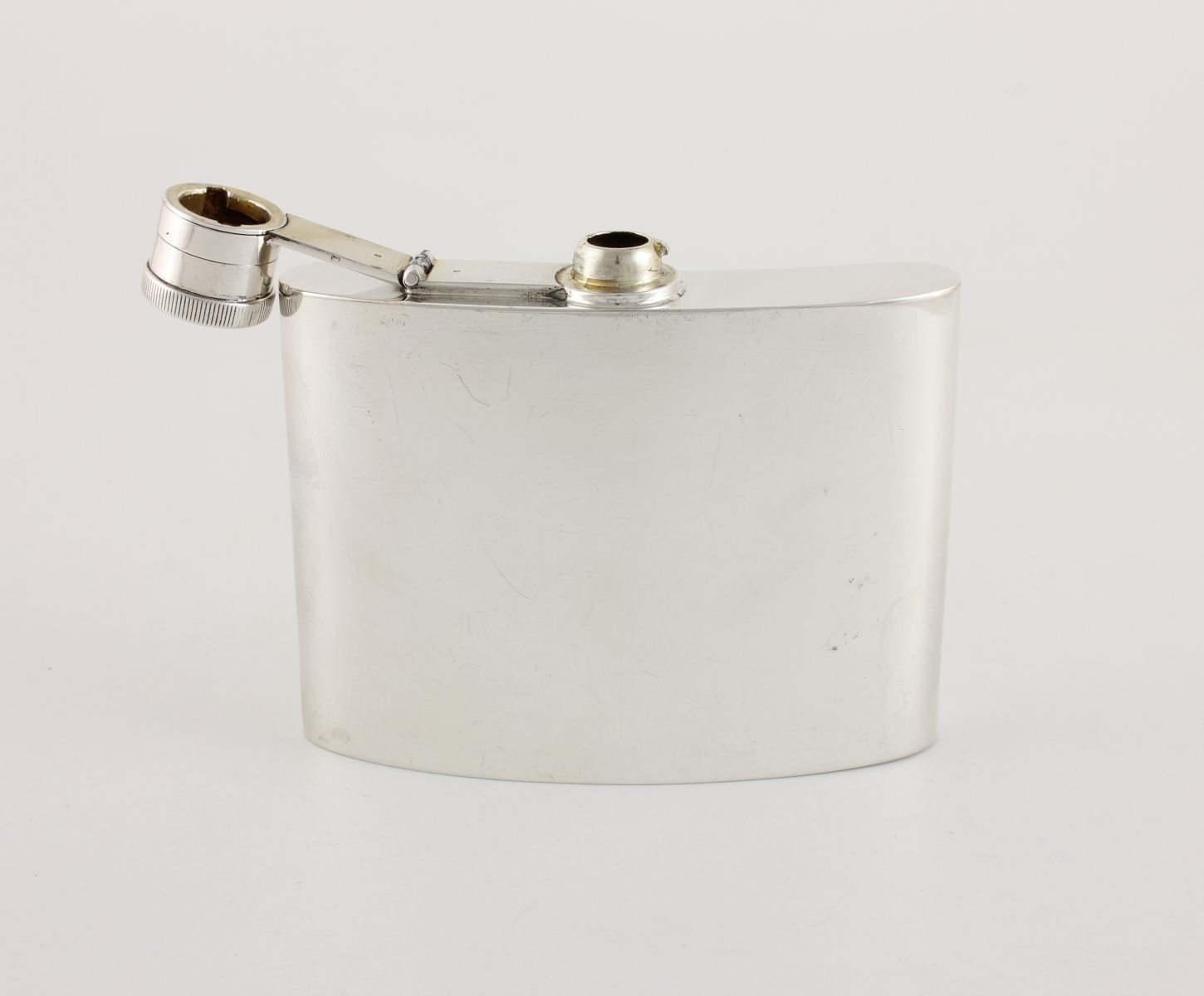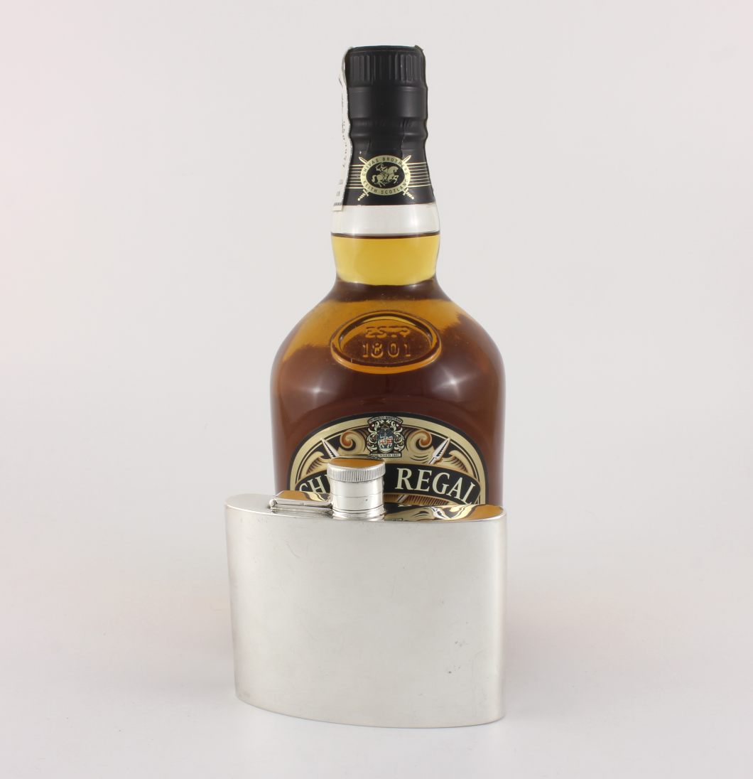 This handsome hip flask which is fully hallmarked for 1939 is made of solid silver by JB Chatterley & Sons Ltd and has a hinged flip / bayonet top which is tight and seals well so does not leak.