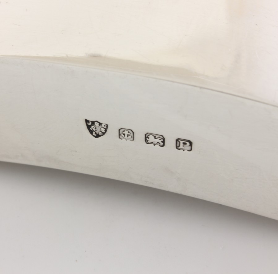 Hallmarks: Fully hallmarked for silver, Anchor for Birmingham, makers mark JBC&S Ld for JB Chatterley & Sons Ltd. Date letter P for 1939.