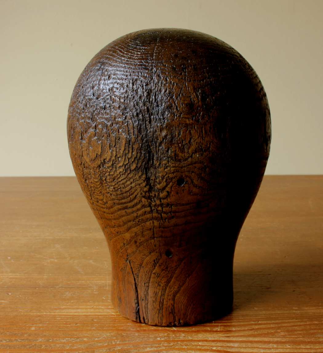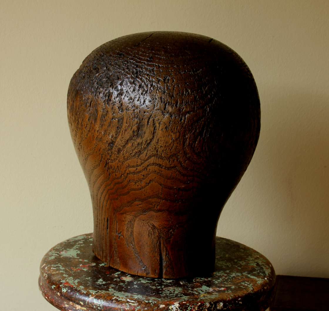 This head shaped hat block has great colour and this unusual piece would make a very nice decorative shop display. A scarce piece that would have originally been used to make and shape hats or wigs.