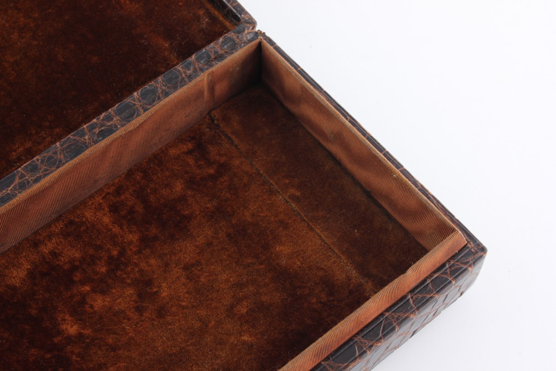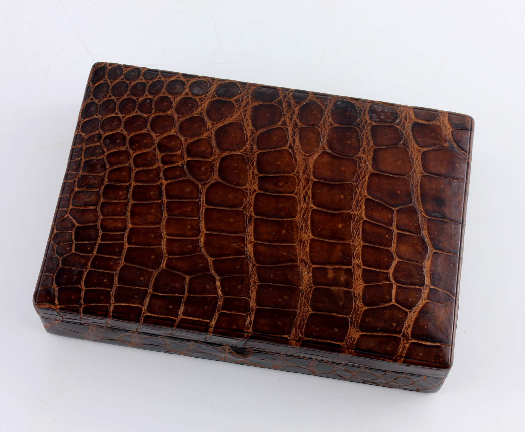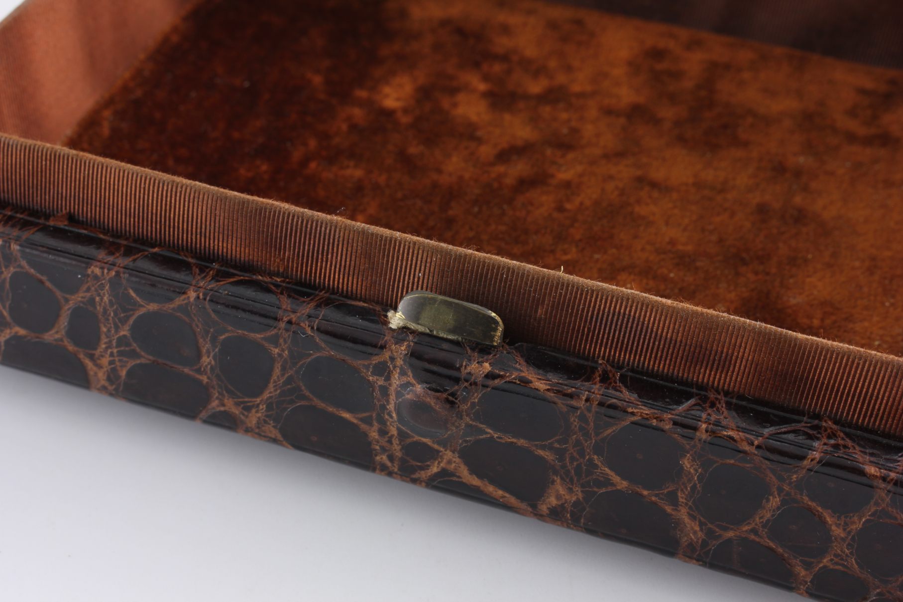 This handsome antique croc leather jewellery case which is by top leather goods maker Drew & Sons of Piccadilly Circus London, dates from c1900 and has a rich brown colour and patina.