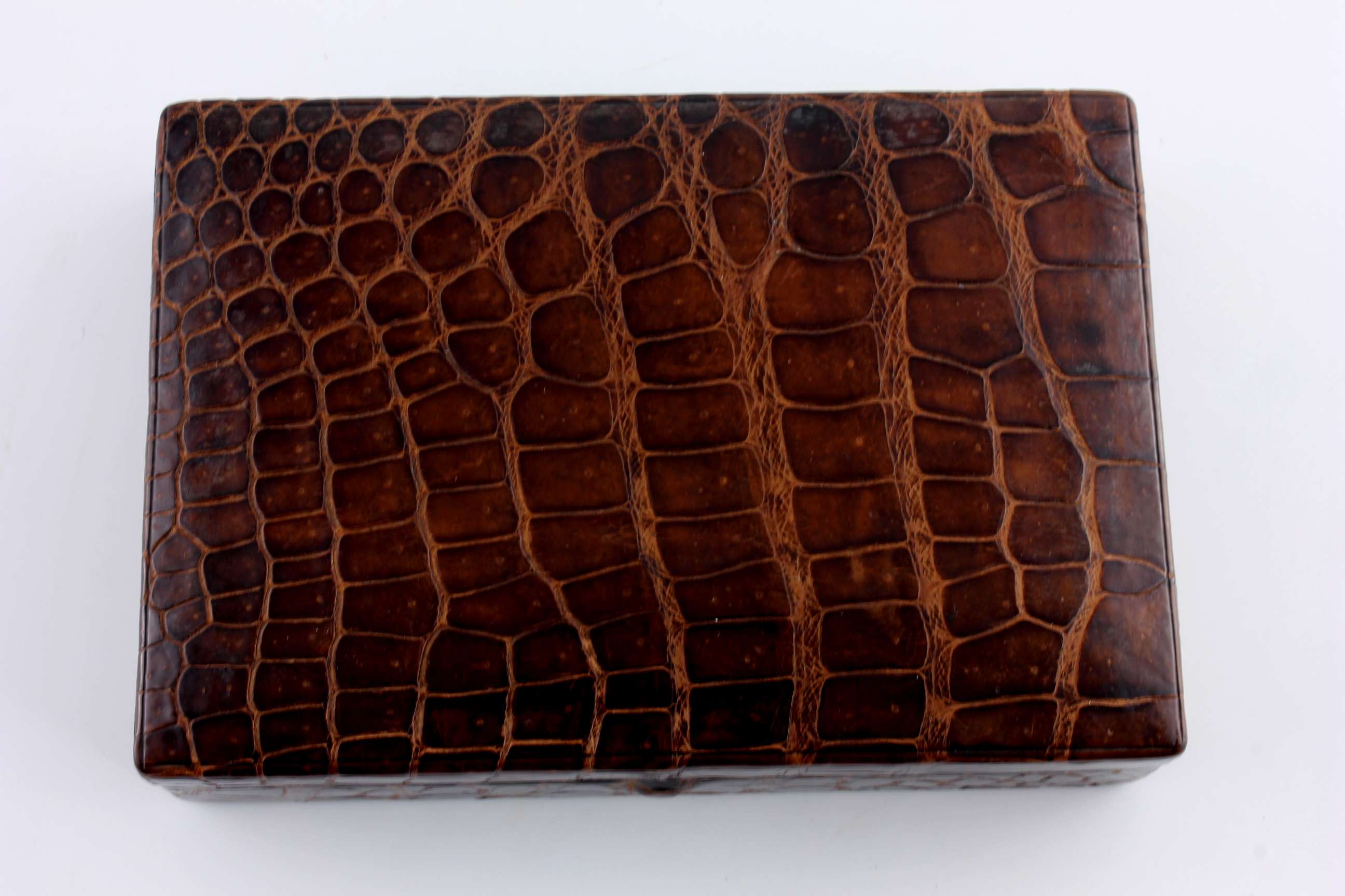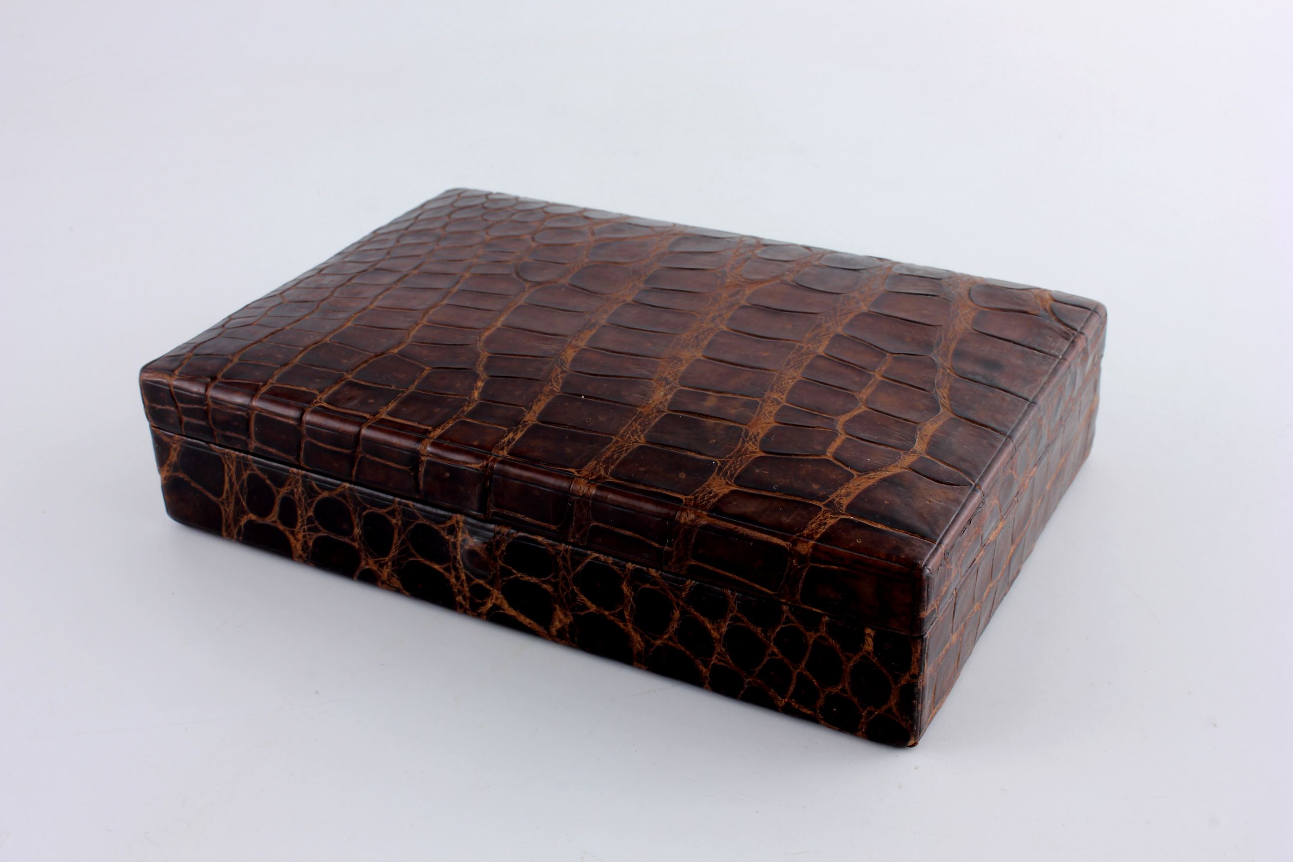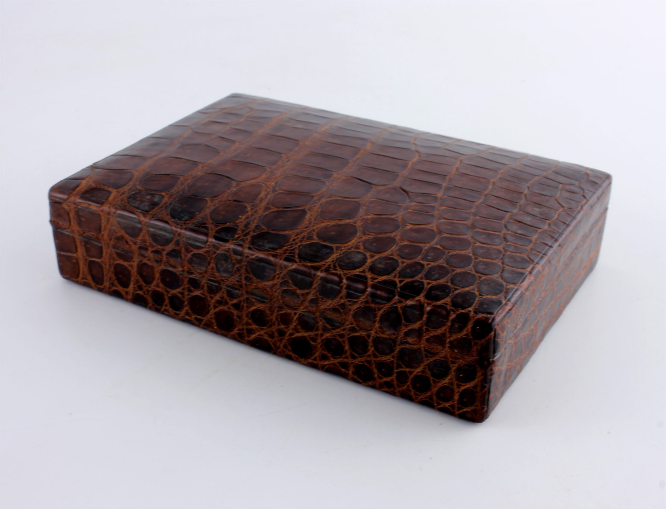 This handsome antique croc leather jewellery case which is by top leather goods maker Drew & Sons of Piccadilly Circus London, dates from c1900 and has a rich brown colour and patina.