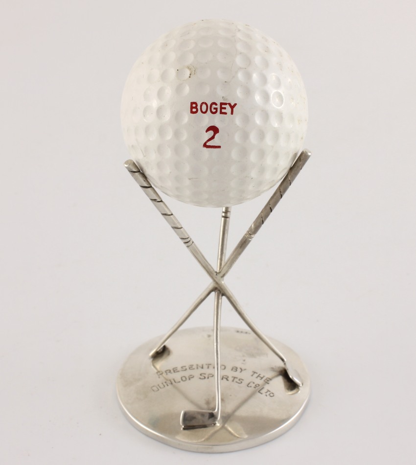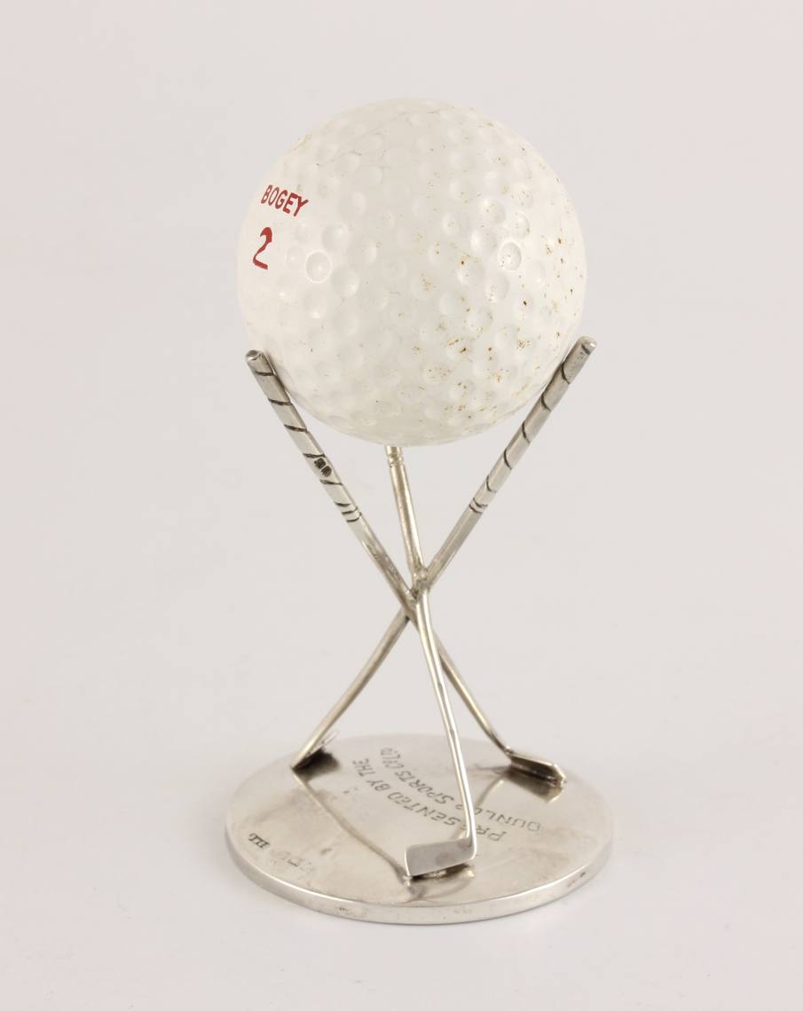This Dunlop Hole In One silver trophy comes with the Dunlop Bogey 2 golf ball, looks very nice on display and would make a great collector's piece.