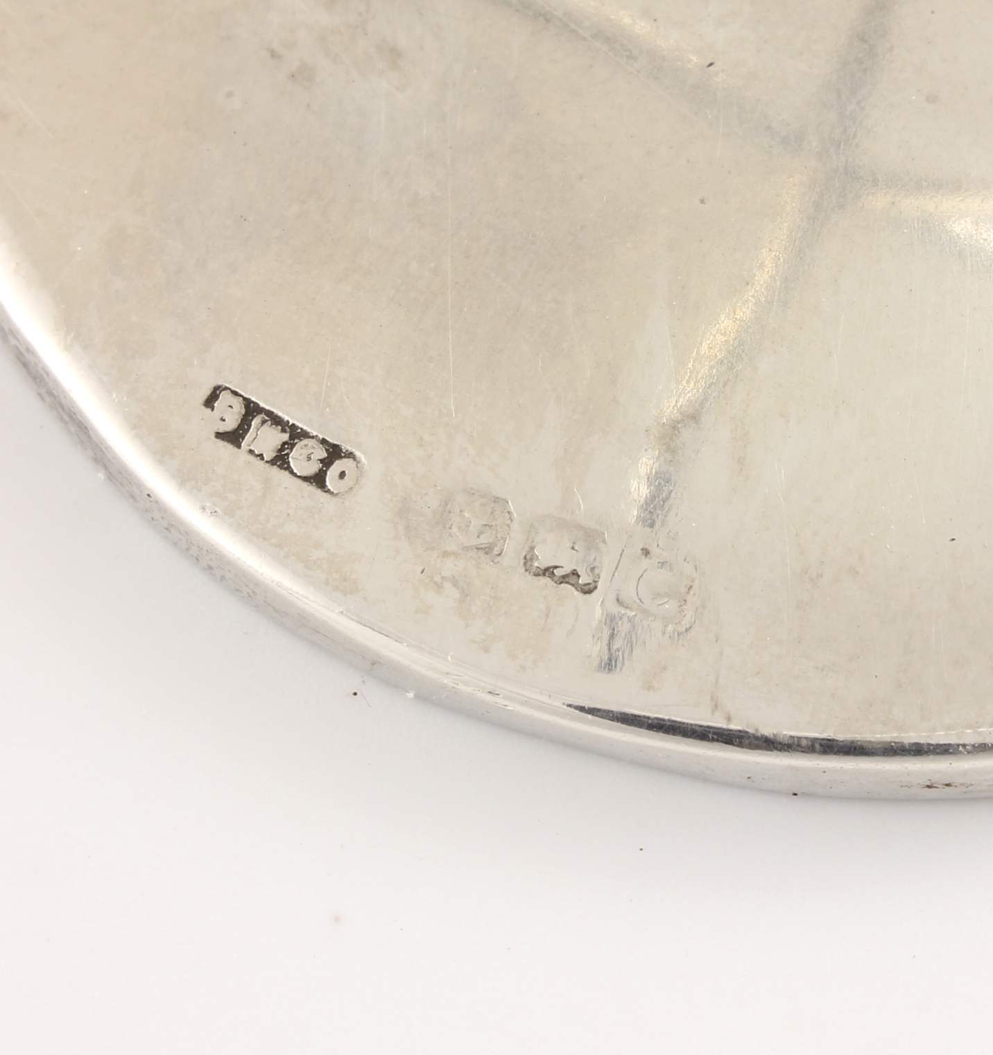 Hallmark: Lion for sterling silver. Anchor for Birmingham. Date letter C for 1927 and maker's mark BM Co for Birmingham Medal Co.