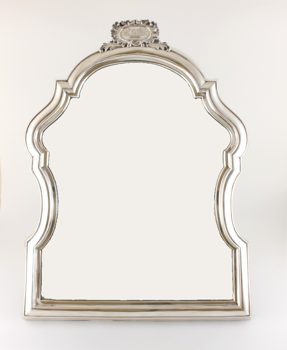 This fabulous antique silver easel back table mirror which is made of 900 grade German silver is by top German silversmith Elimeyer of Dresden.
