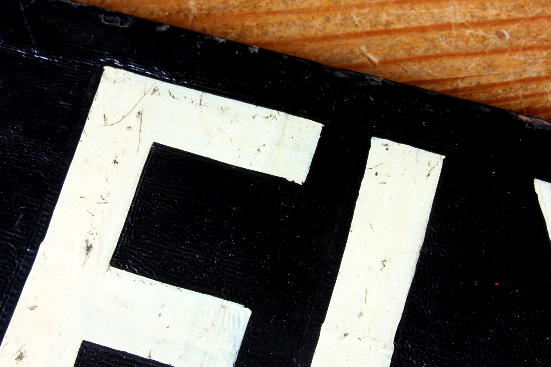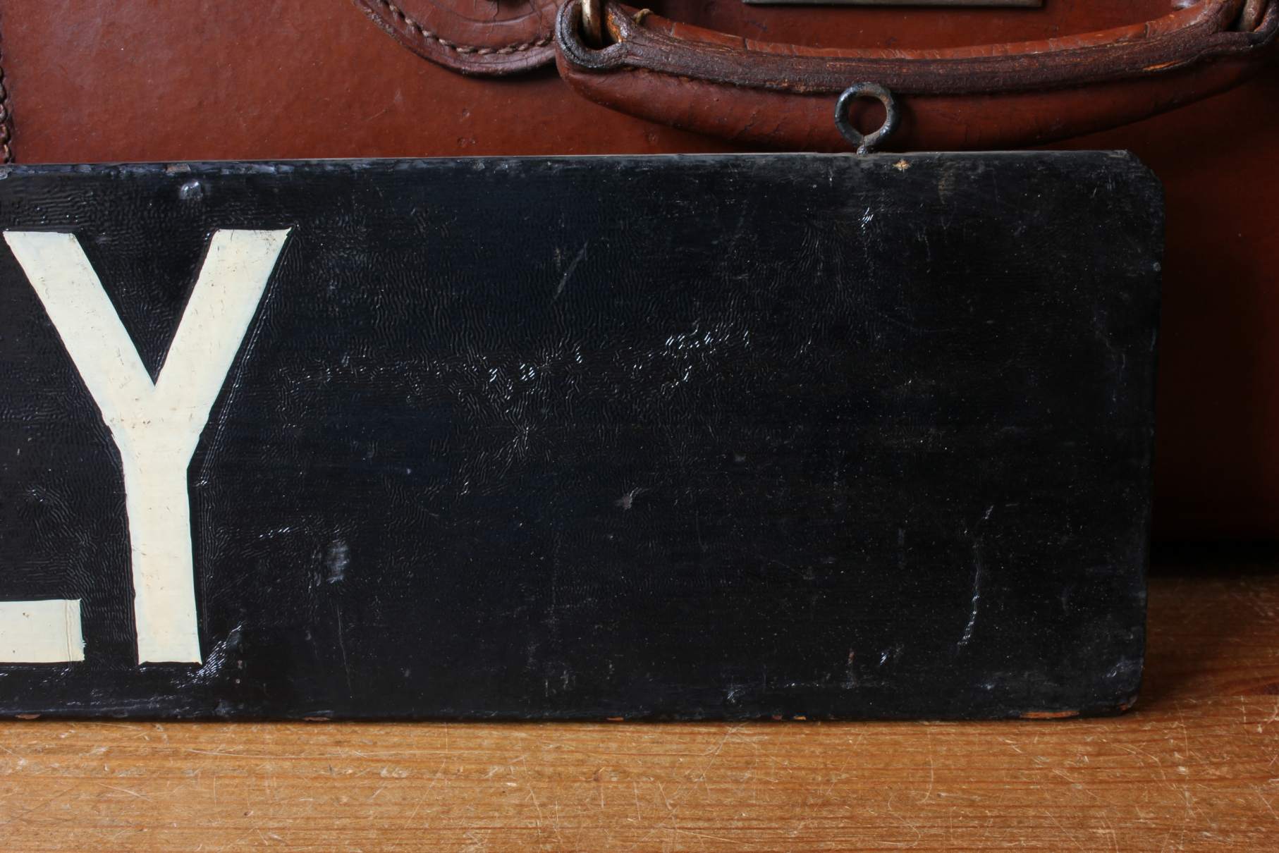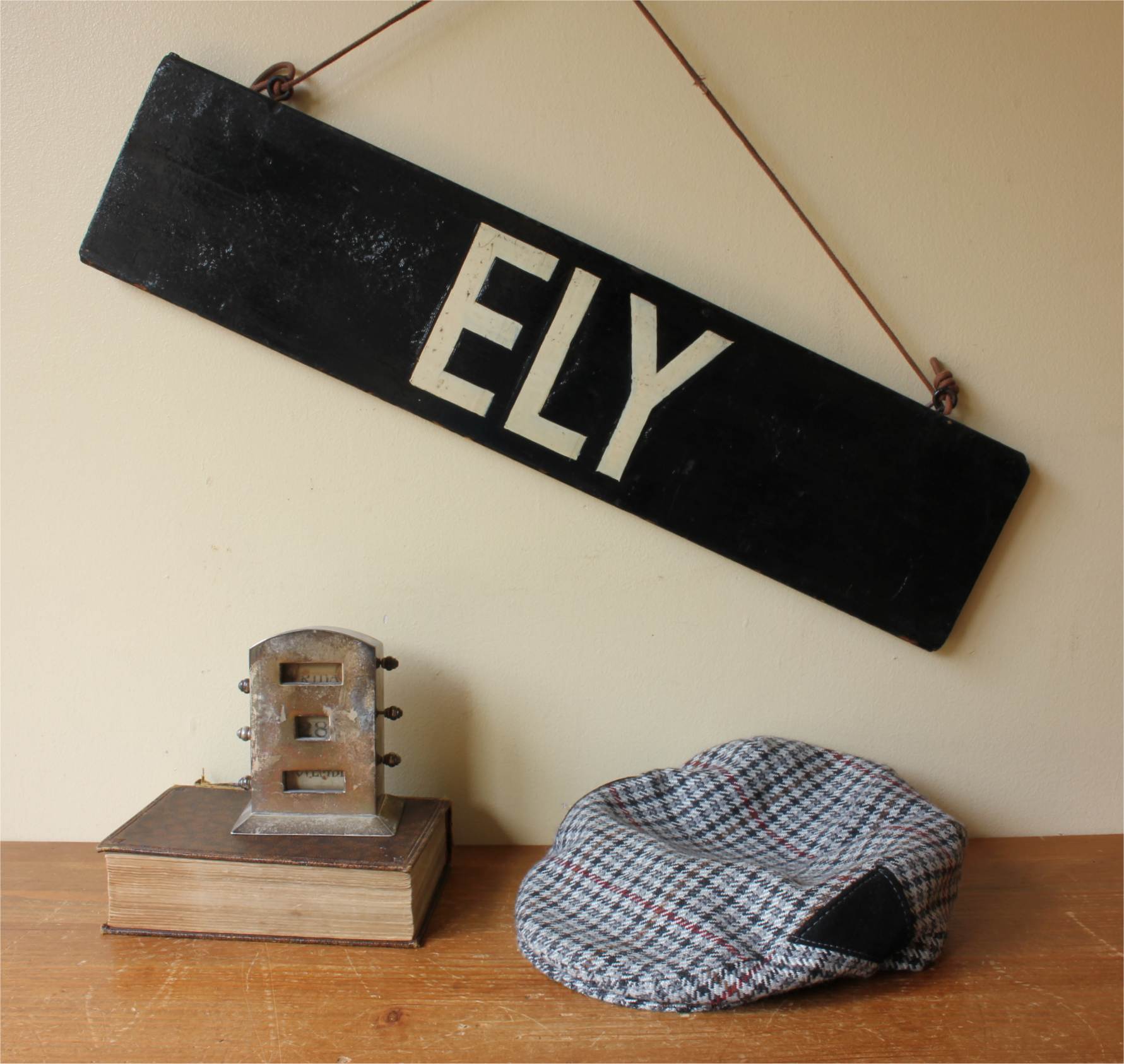 This original train station sign which dates from around the 1930's came from Liverpool Street Station, is made of wood and has a black background with the name of the destination station Ely in hand painted lettering to one side.