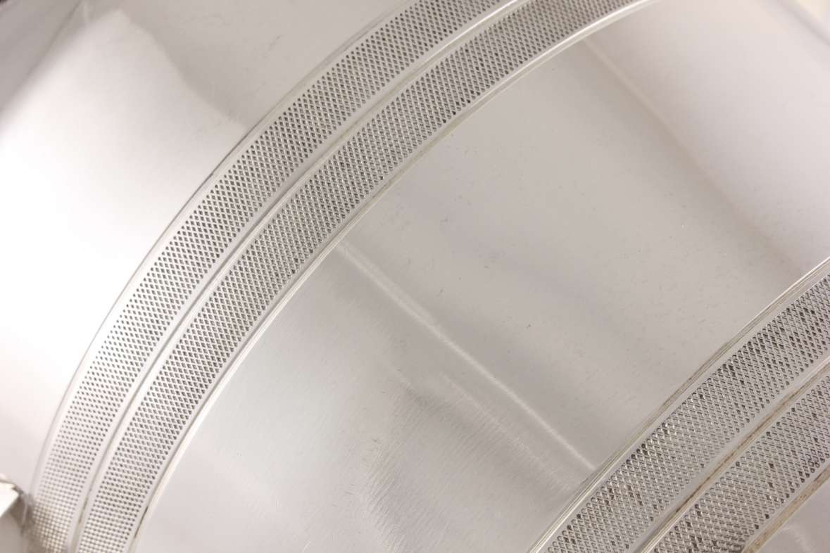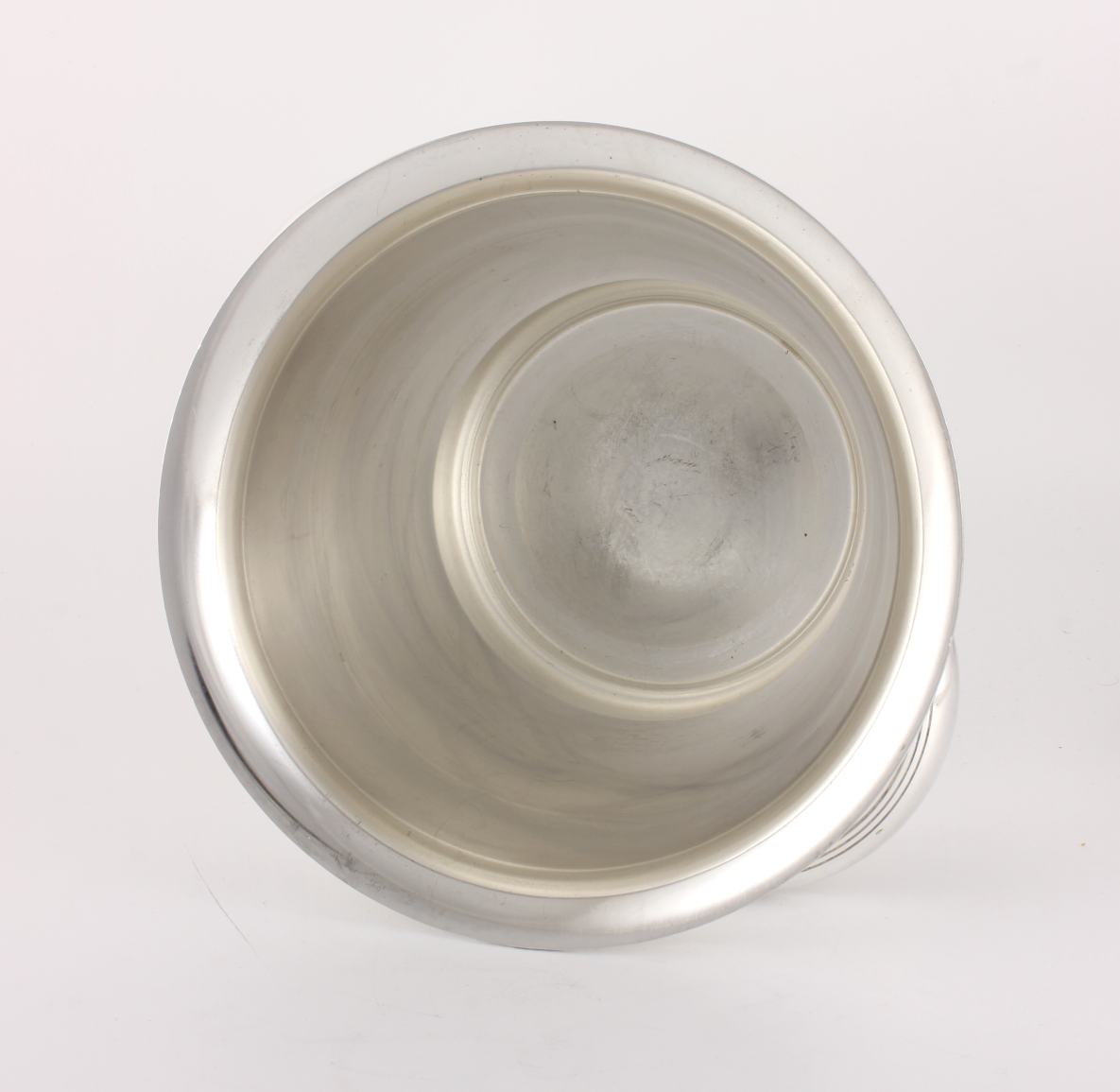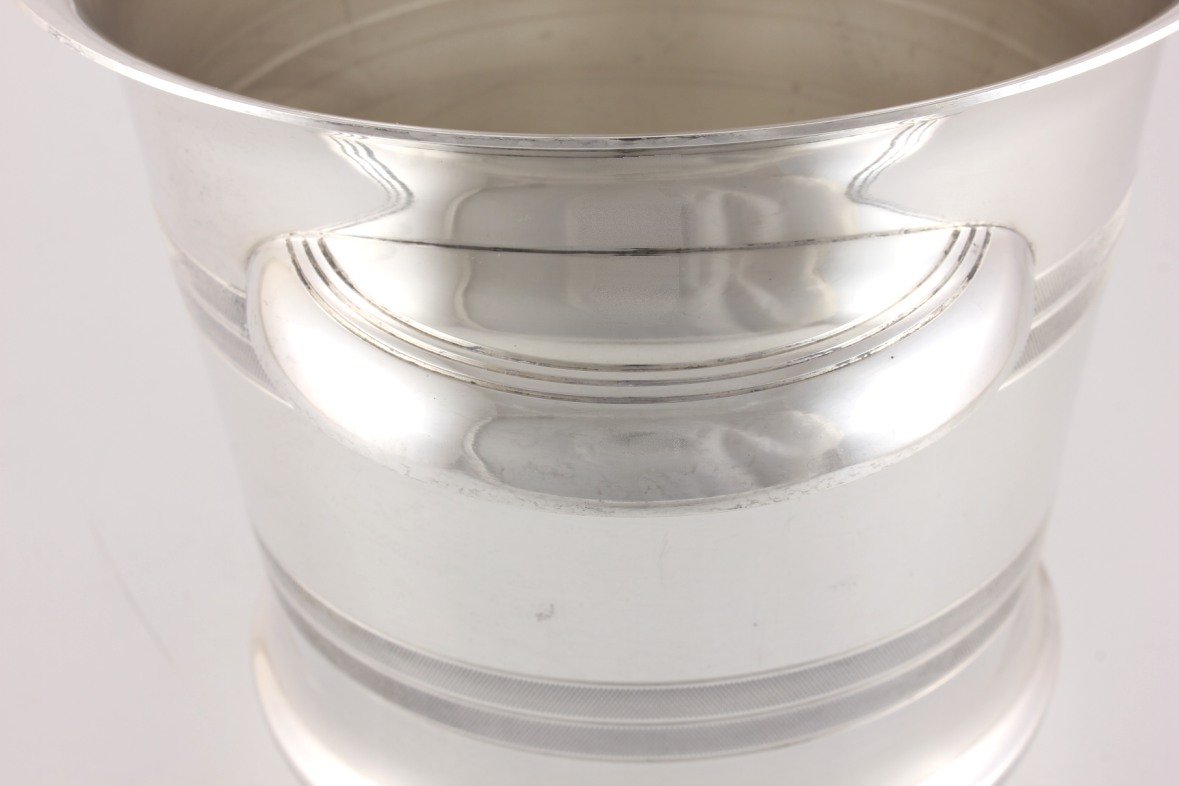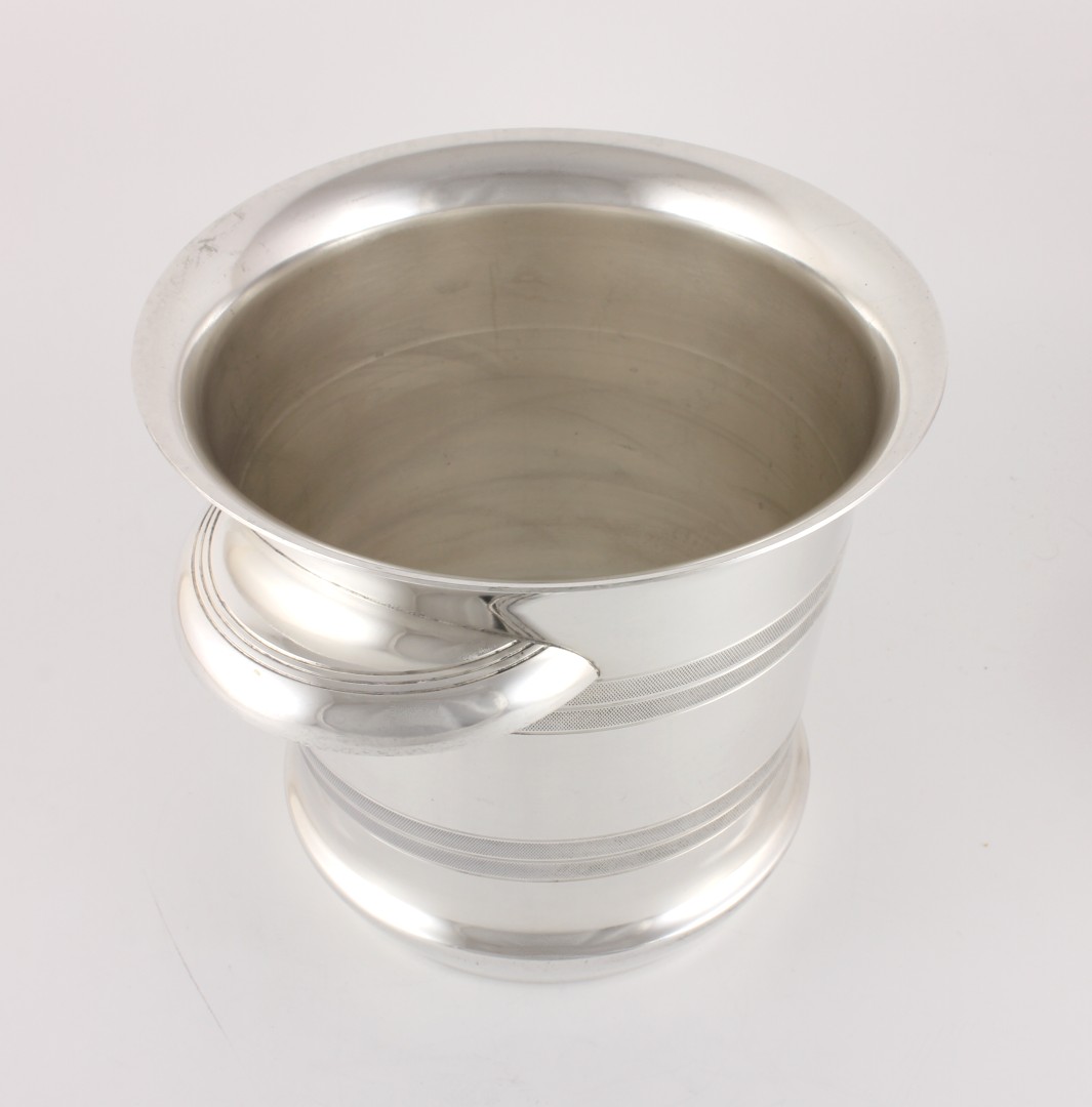 This handsome Art Deco silver plated French wine or Champagne cooler which dates from the first half of the 20th century features banded engine turning to the body and is marked to the base with the Maker's mark.