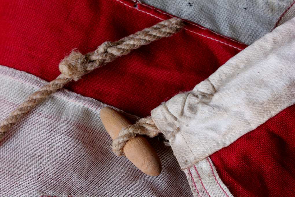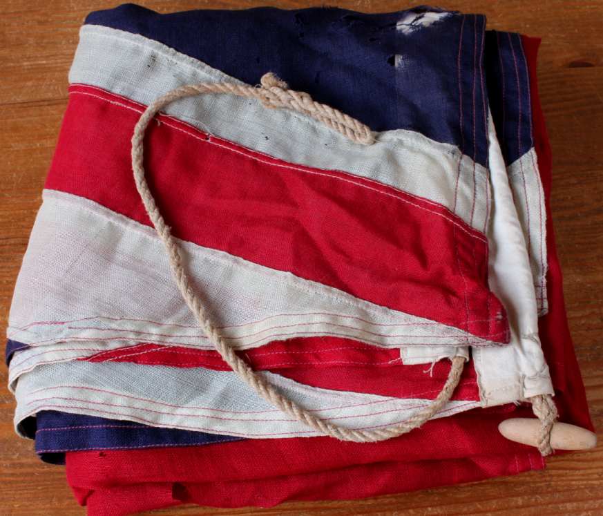 The flag which dates from the mid 20th century has each segment individually sewn and is a good large size at 7 ft 7 inches in length and approx 3 ft 7 inches wide.