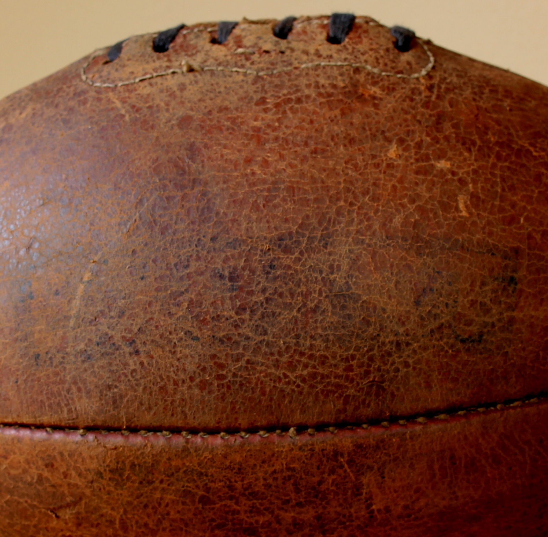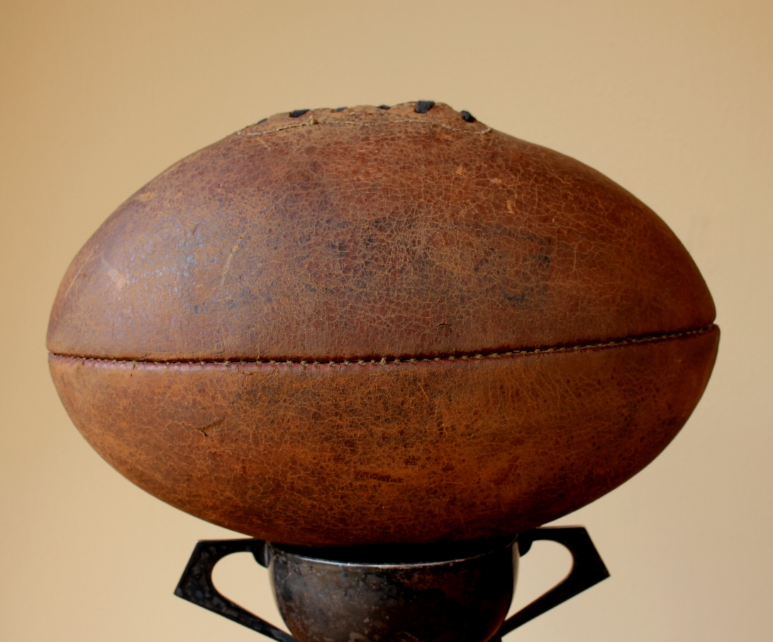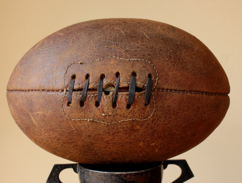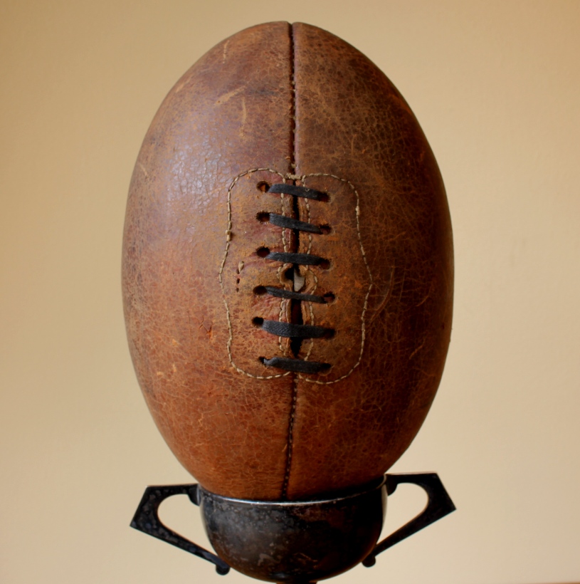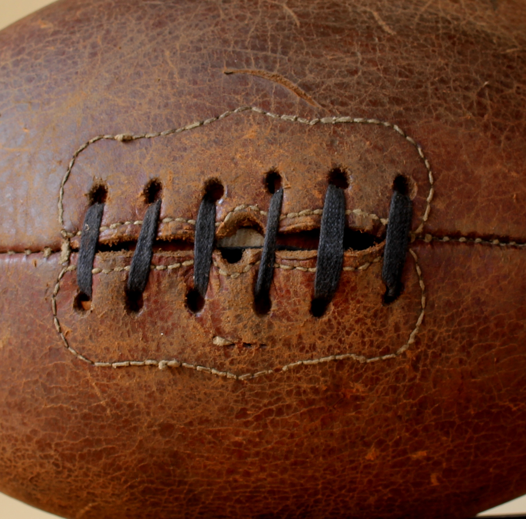This original vintage Rugby ball is handmade of brown leather, has cord laces and dates from c1950.