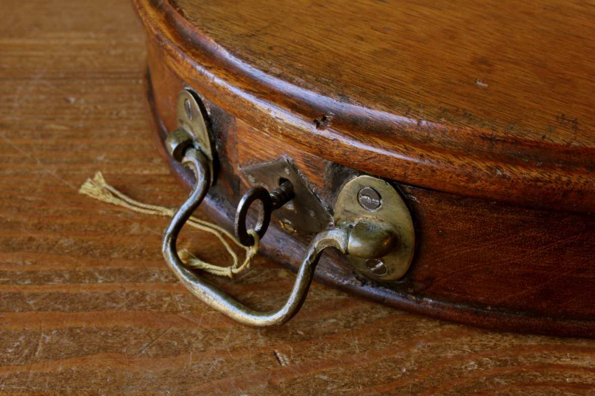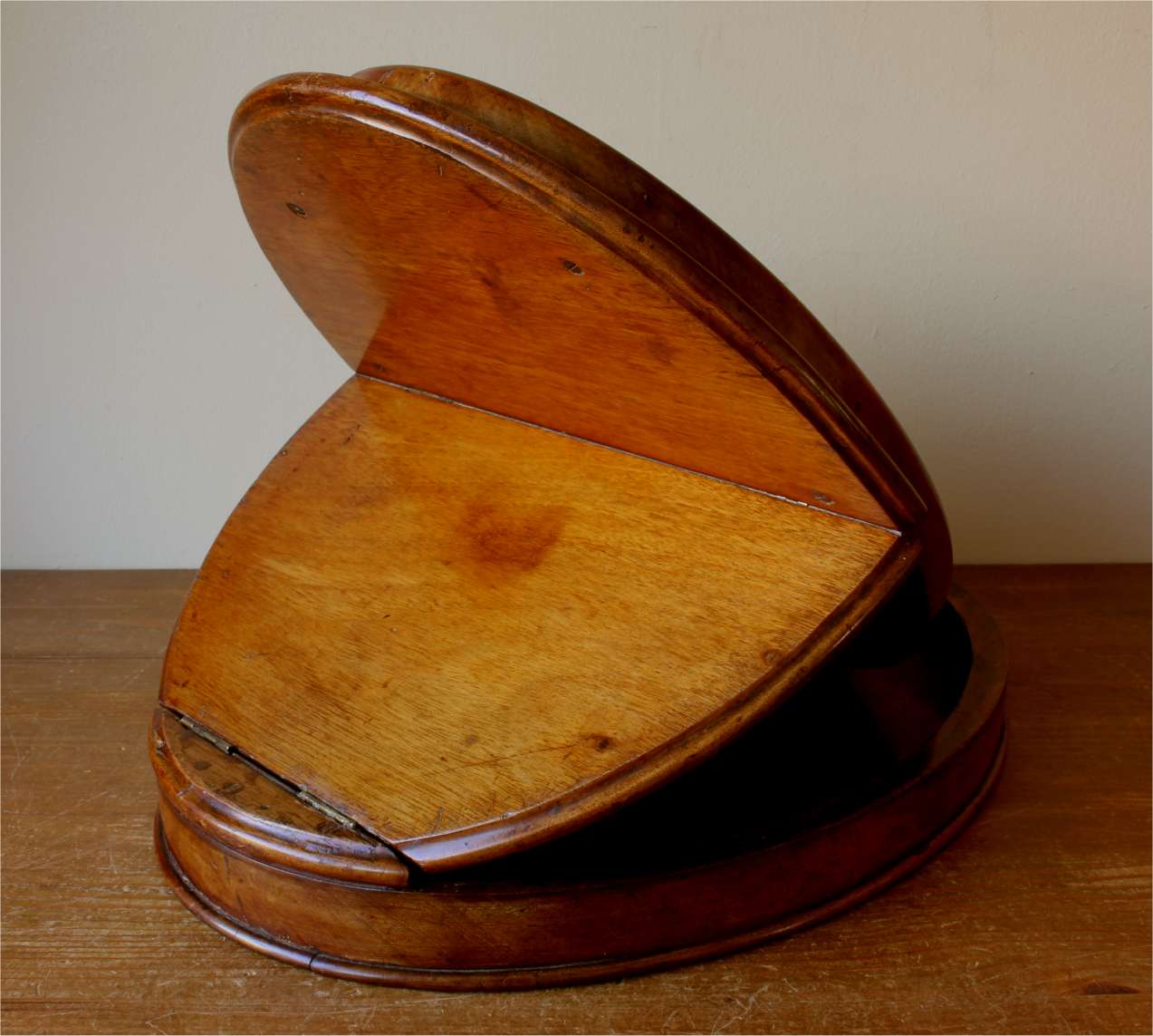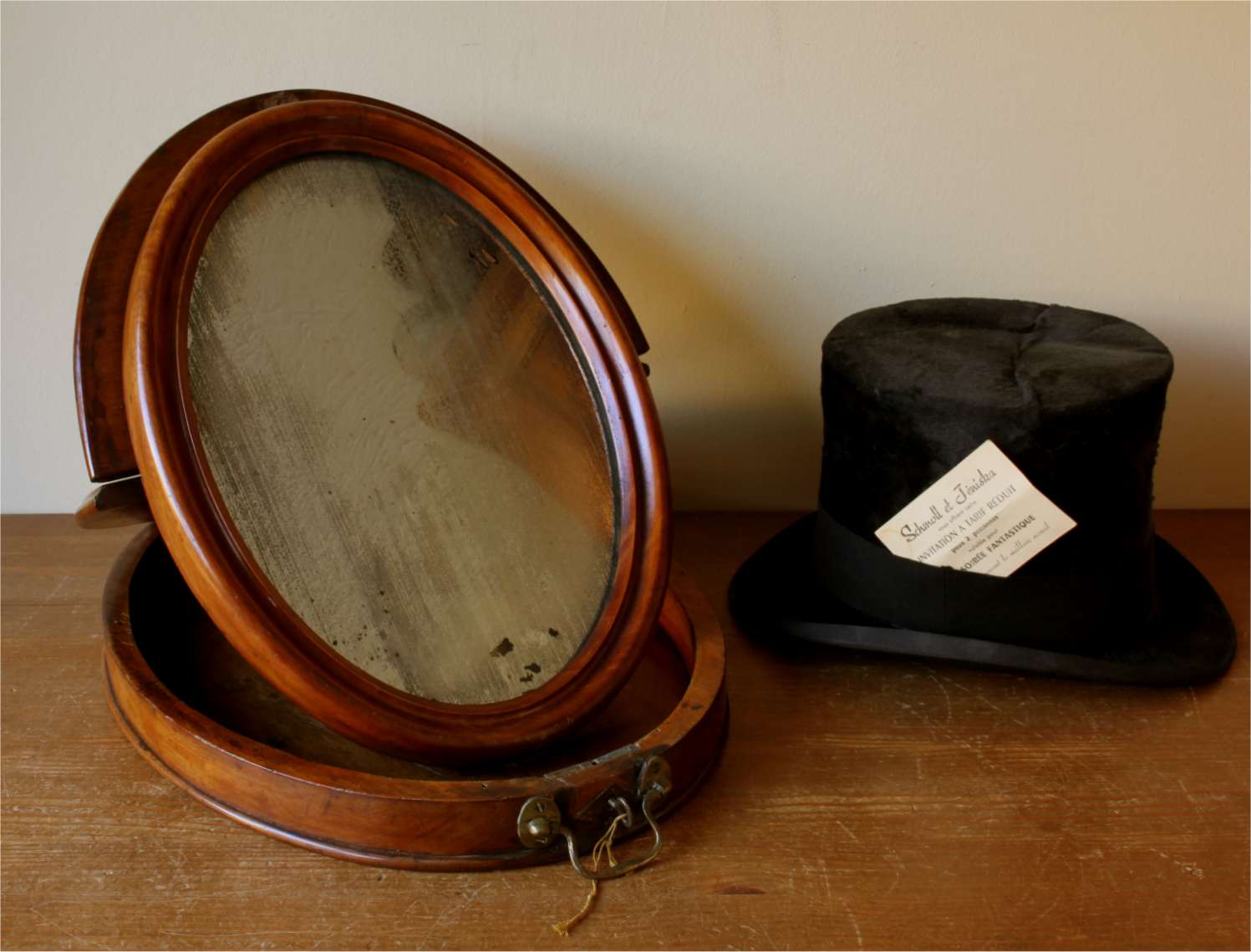 The wooden hinged case can be locked and unlocked by using the key and when opened folds back on to one of the three interior notches so the mirror can be used at different angles. The mirror has some wonderful distressing / foxing to the plate so has an attractive antique look.