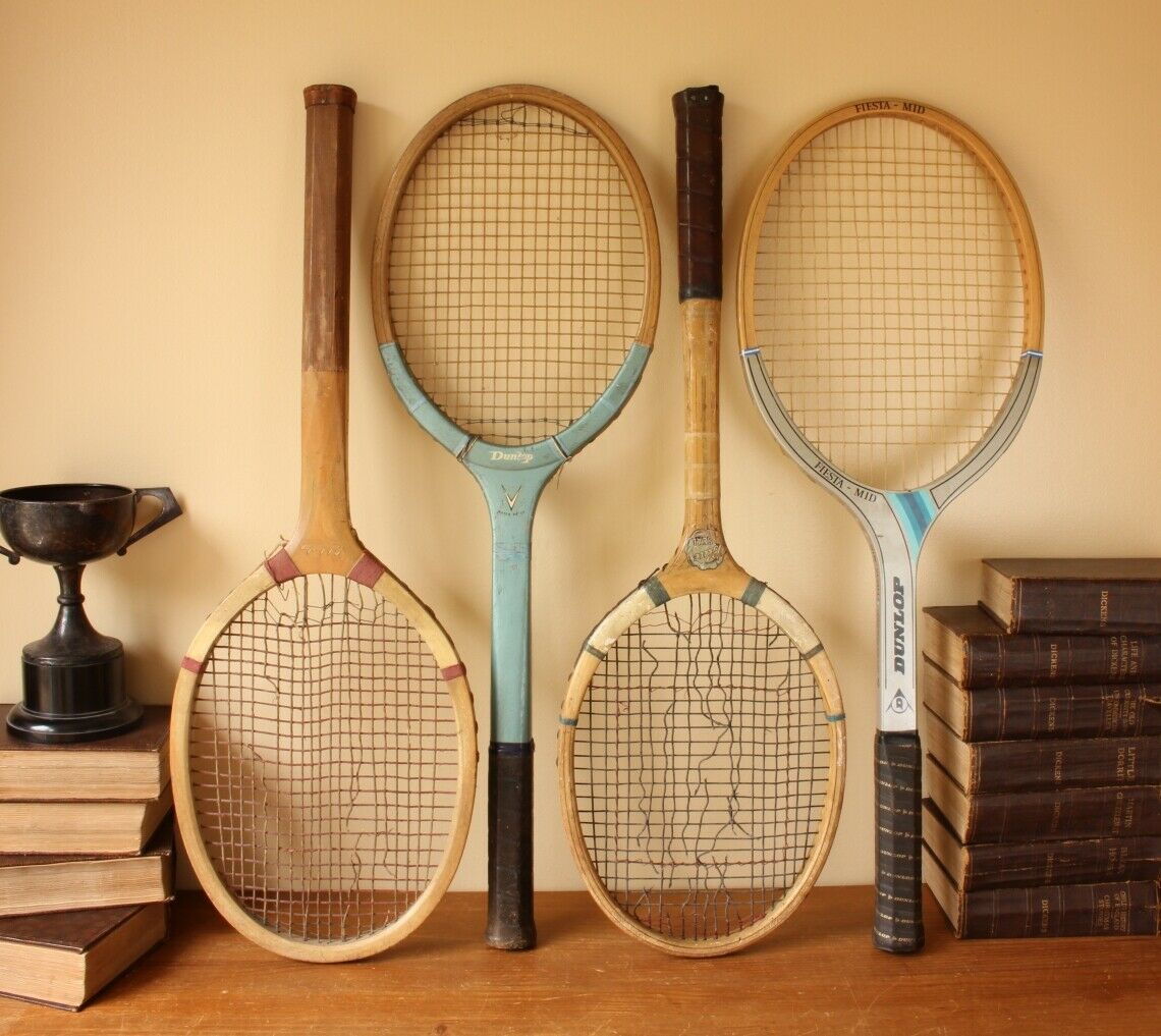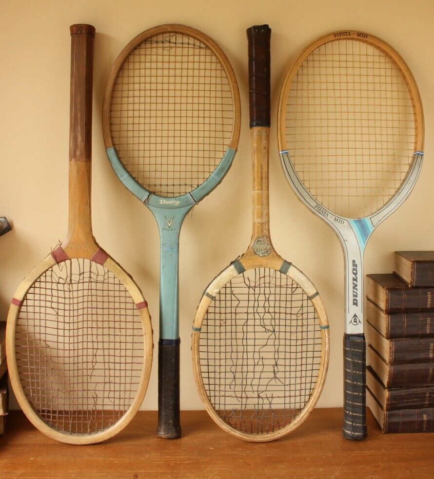 This nice set of 4 wooden lawn tennis rackets look excellent on display and would make a super item for a Tennis club, shop display or sports bar.