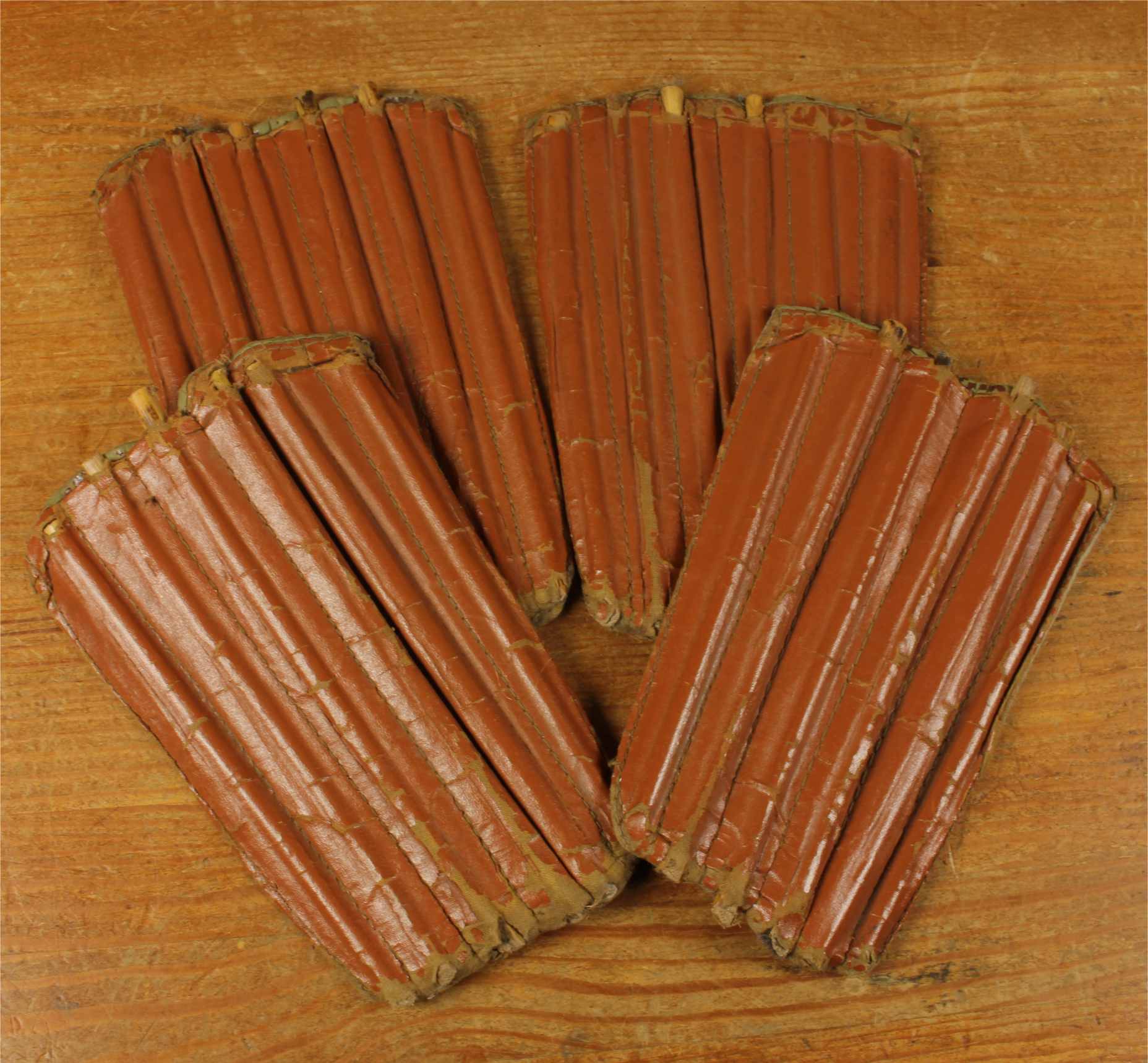 These four vintage / antique shinpads which date from the c1930 are made of a tan leatherette and canvas.