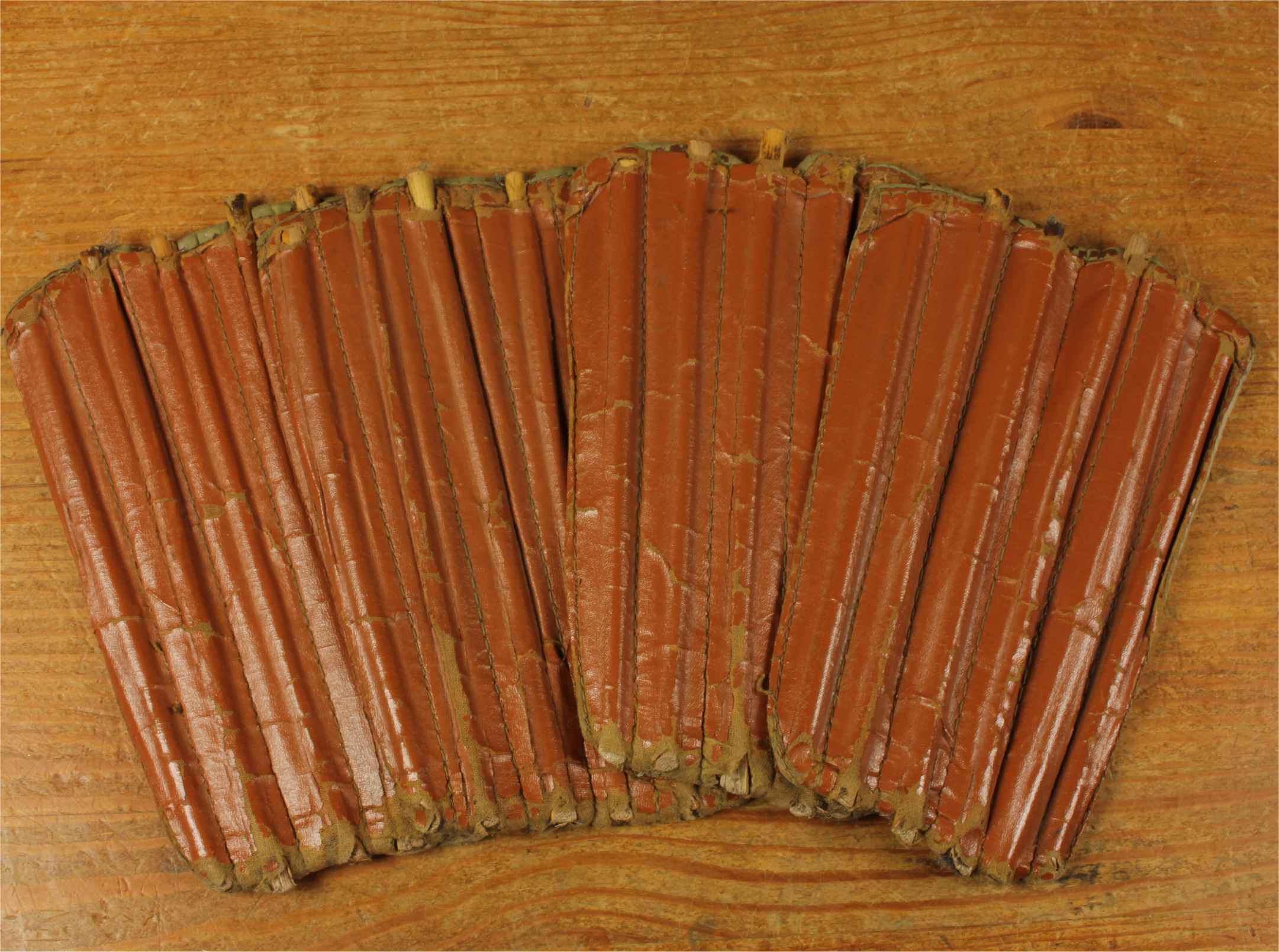These true vintage shin pads have bamboo tube stiffeners inside and are approx 22 cm (8 1/2") high.