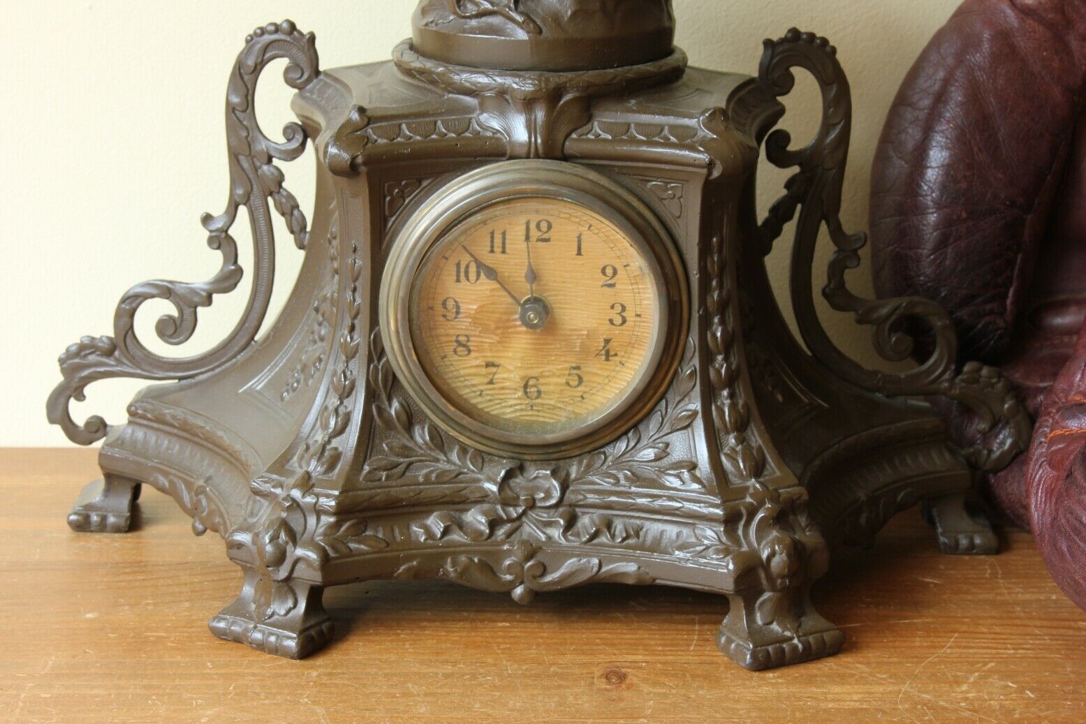 Condition: Good used decorative antique condition. Has been restored and repainted. Some light chips and scratches. The clock does not work and the clock face is aged. Please see all pictures.