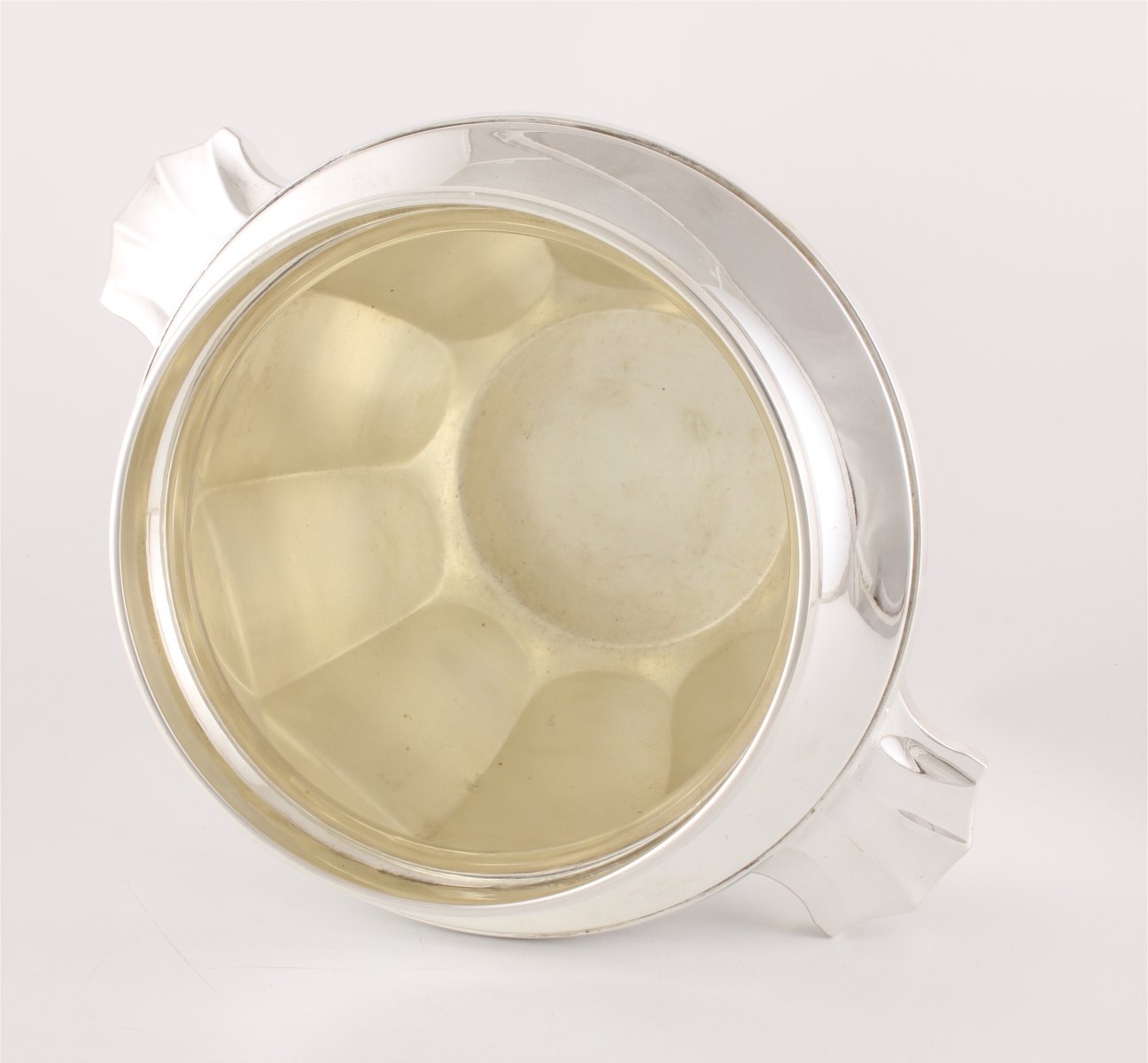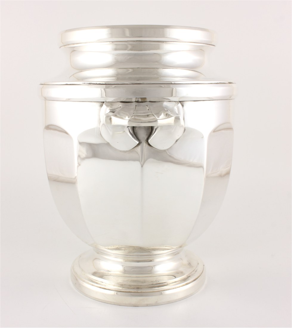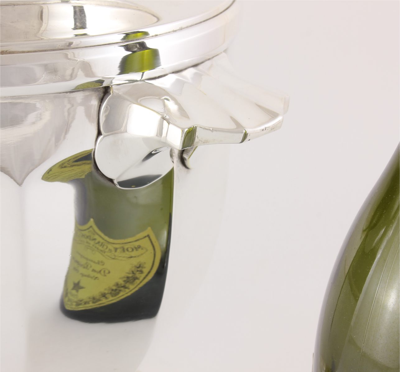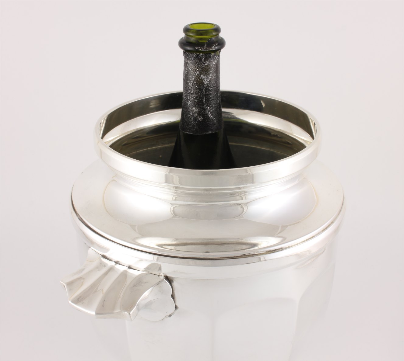 This wonderful antique French Champagne cooler which is made of silver plate has a beautifully shaped body, sits on a raised foot and has two side handles.
