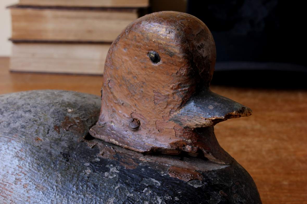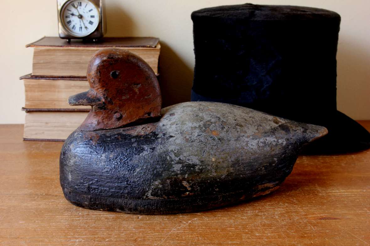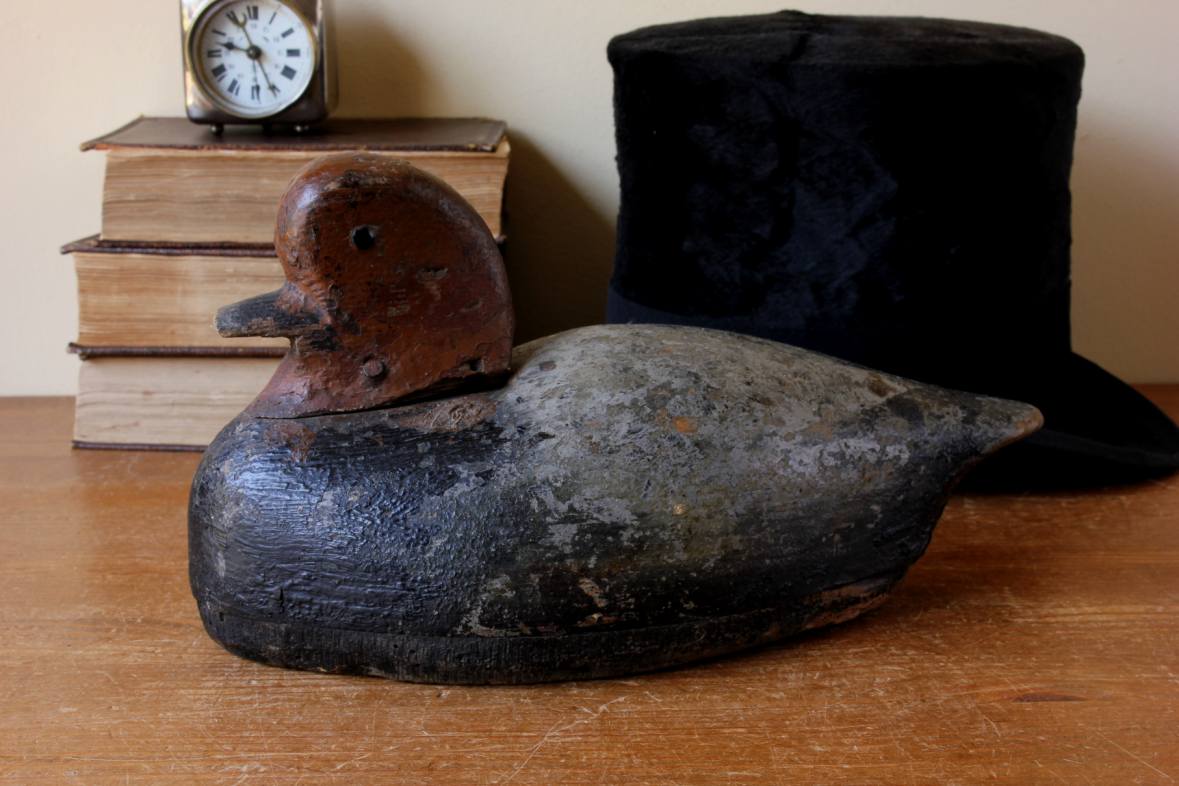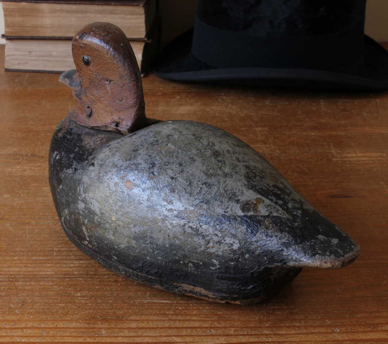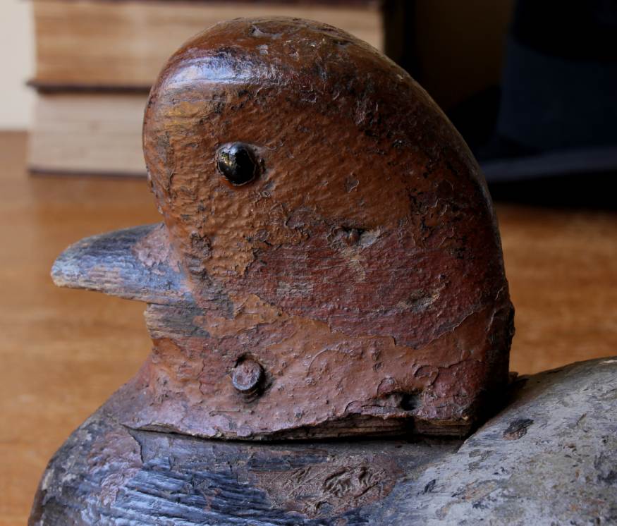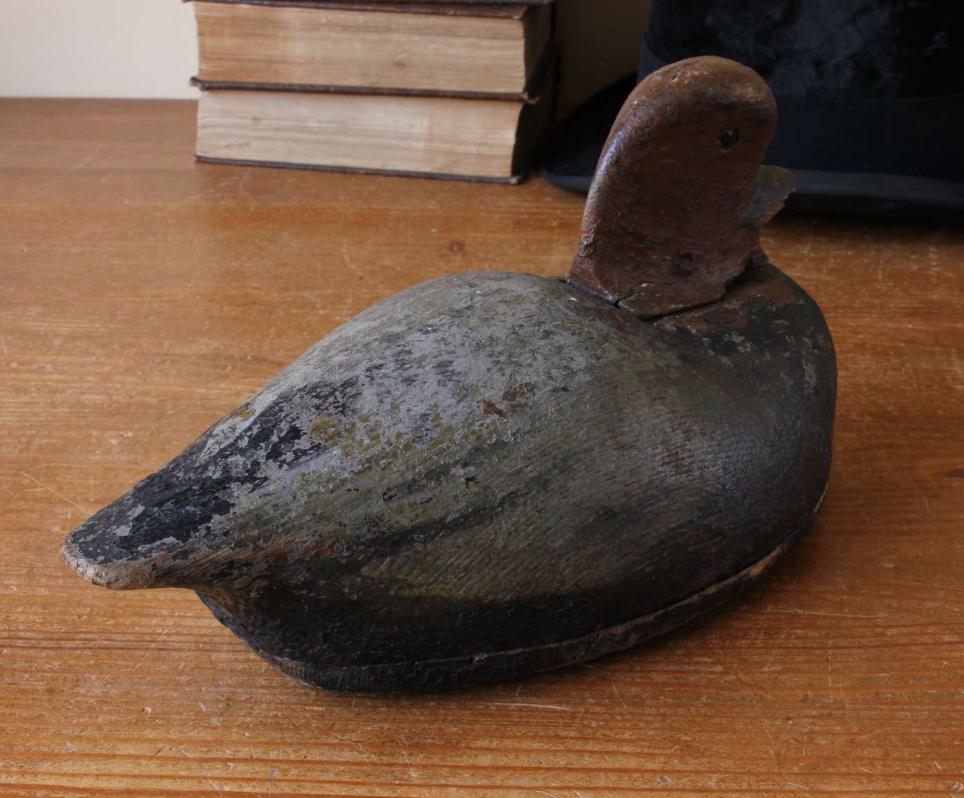 This original antique decoy duck which has lots of rustic charm has glass eyes and is a nice early piece.