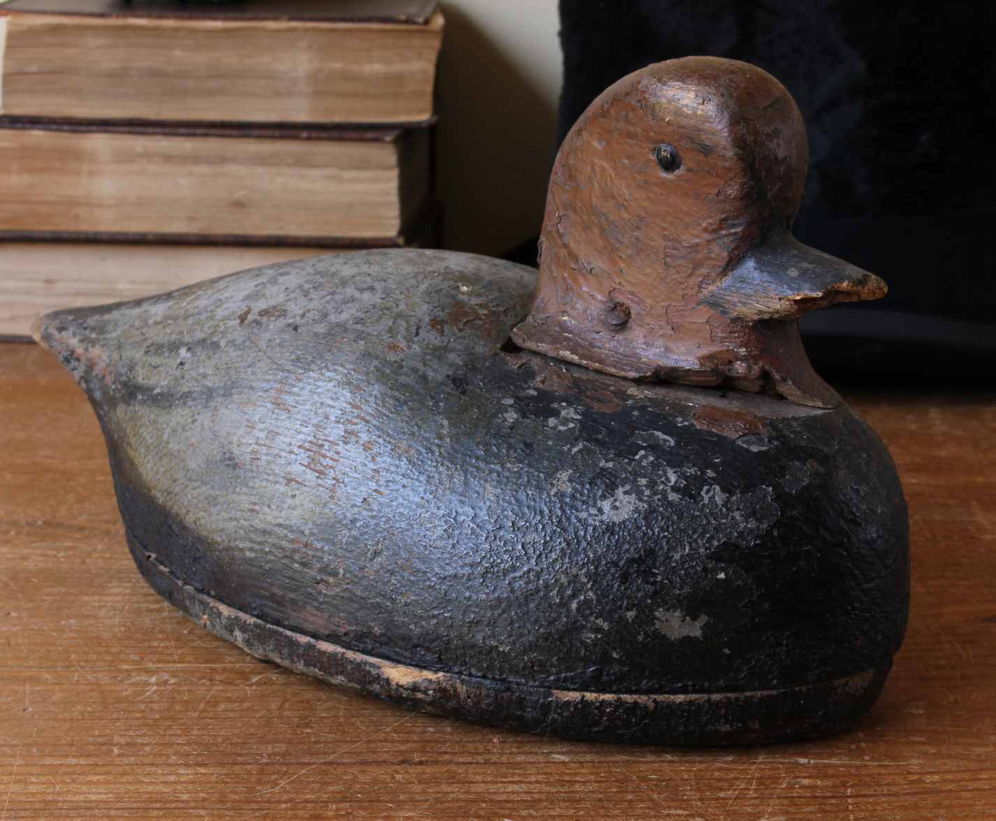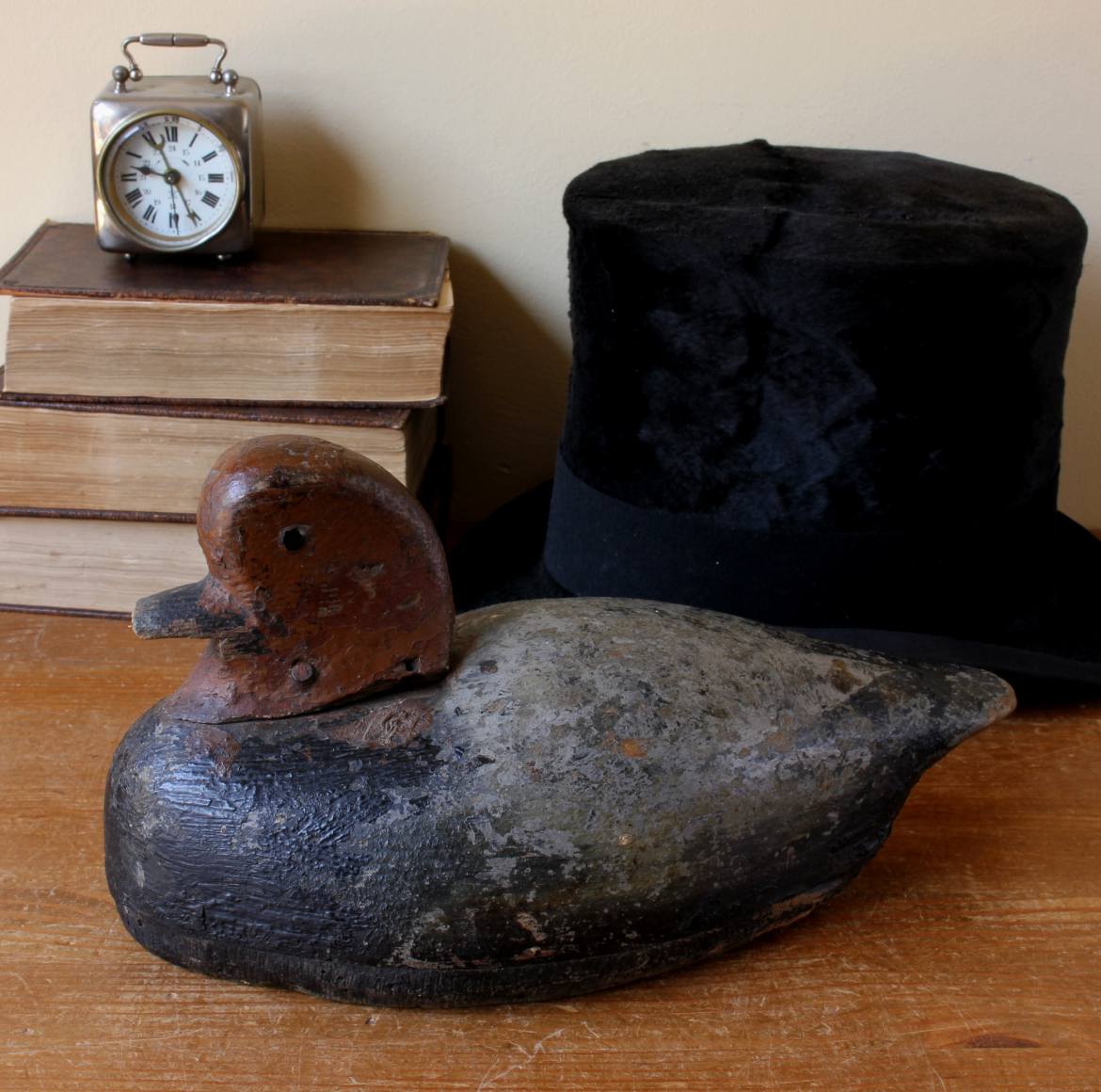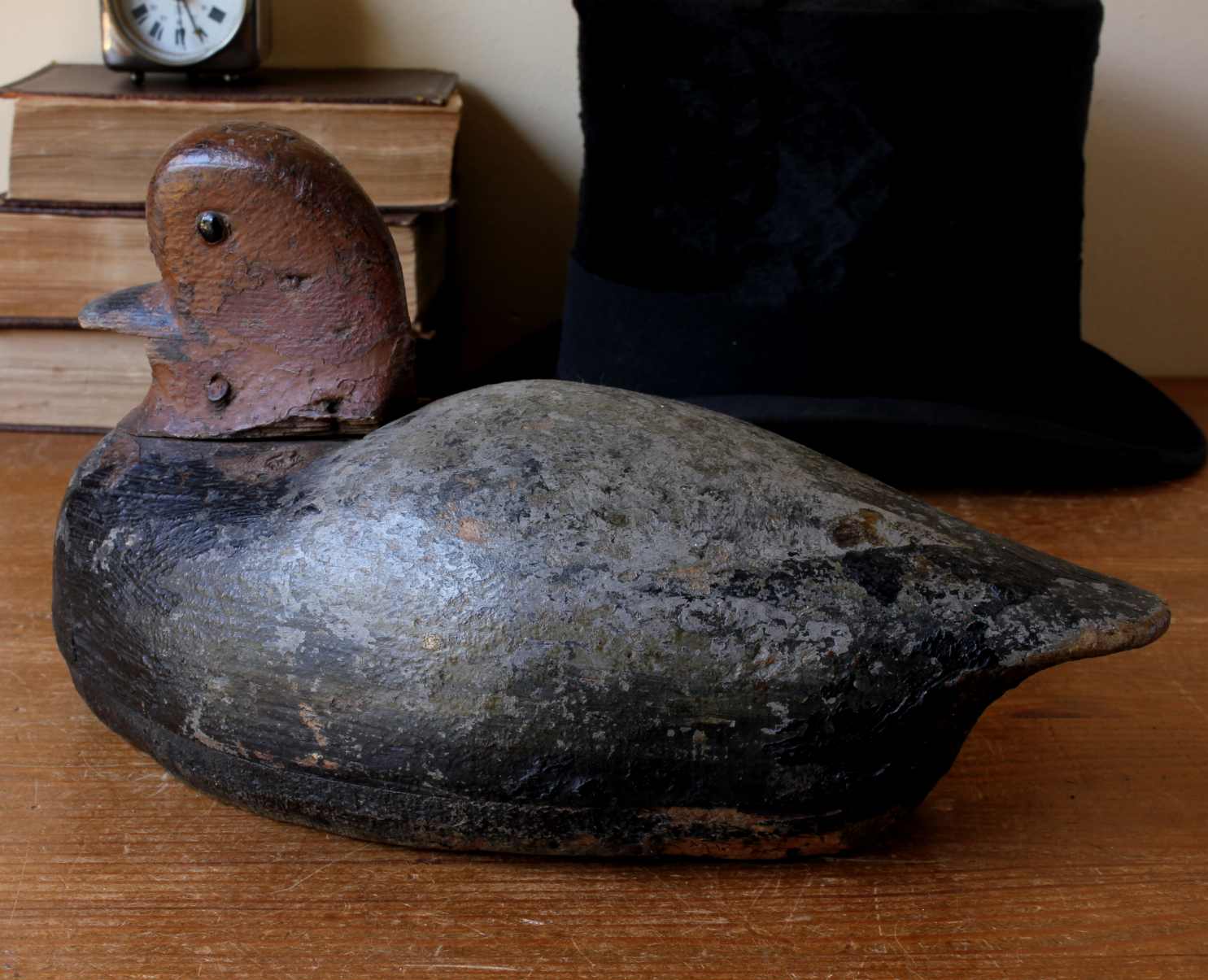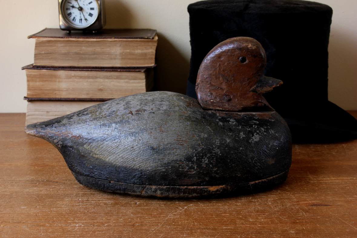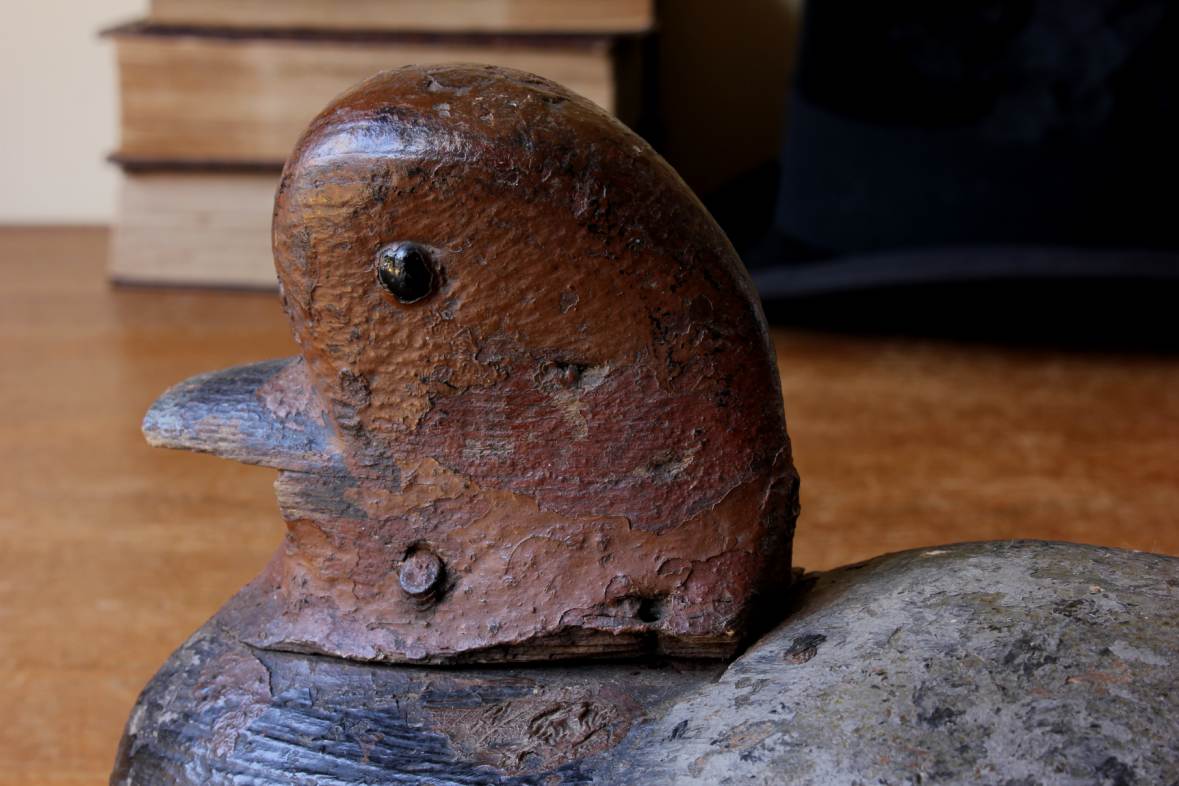 This original antique decoy duck which has lots of rustic charm has glass eyes and is a nice early piece.