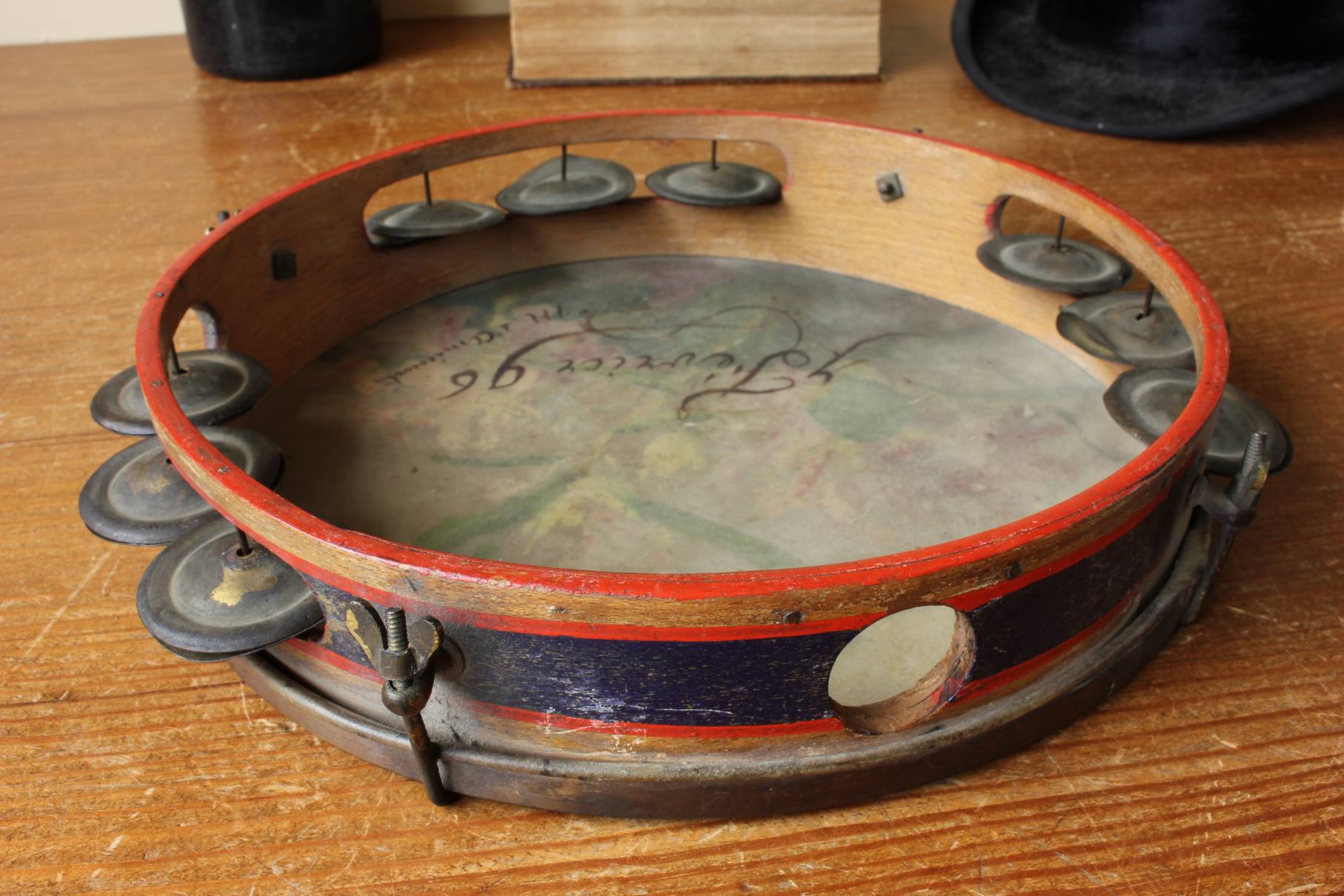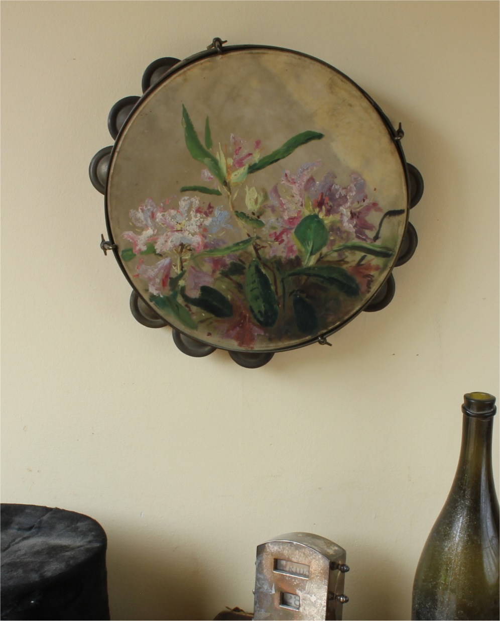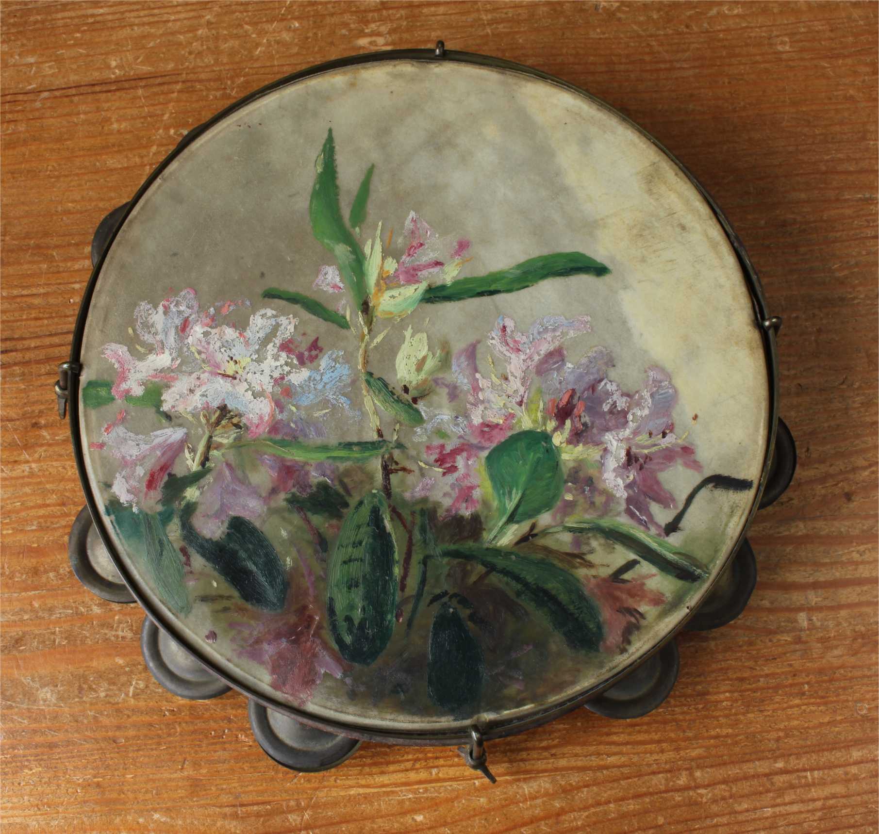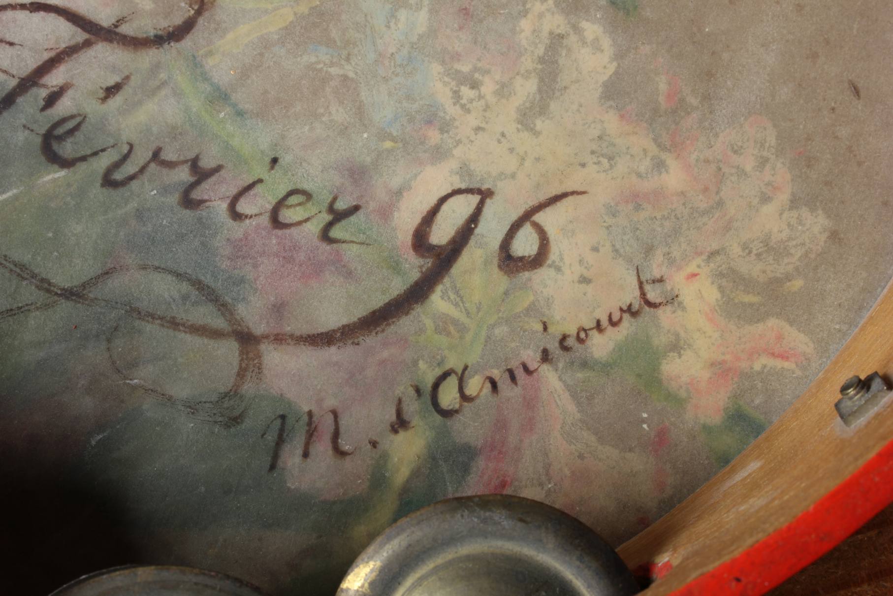 The rear of this 19th century tambourine is signed by the artist and dated 7 Fevrier 96 so for 7 February 1896.